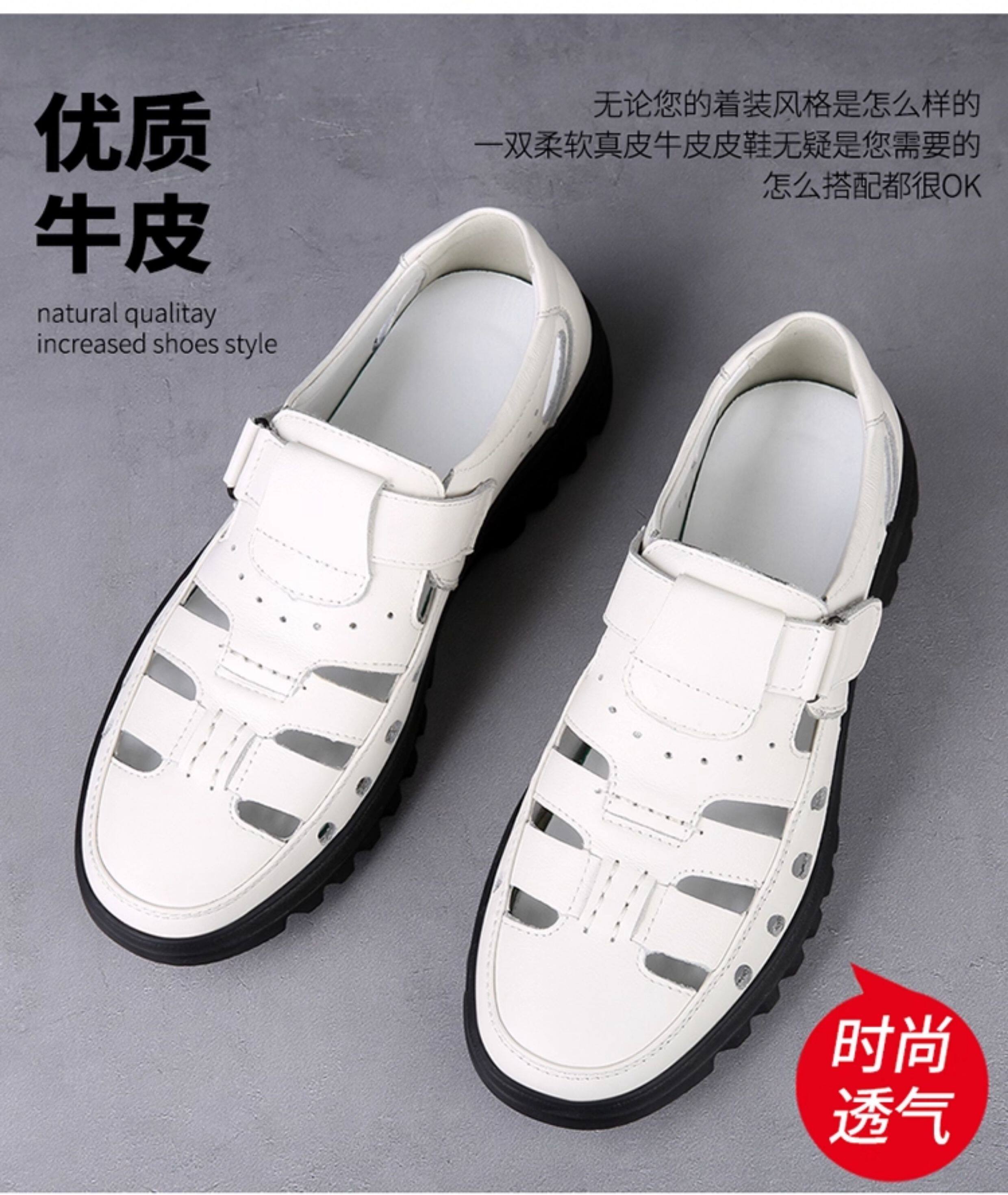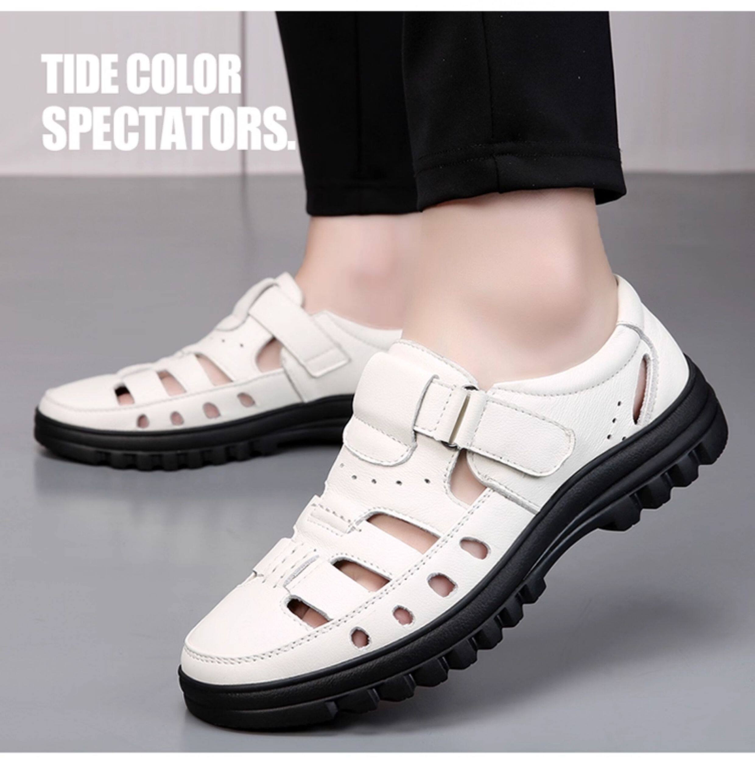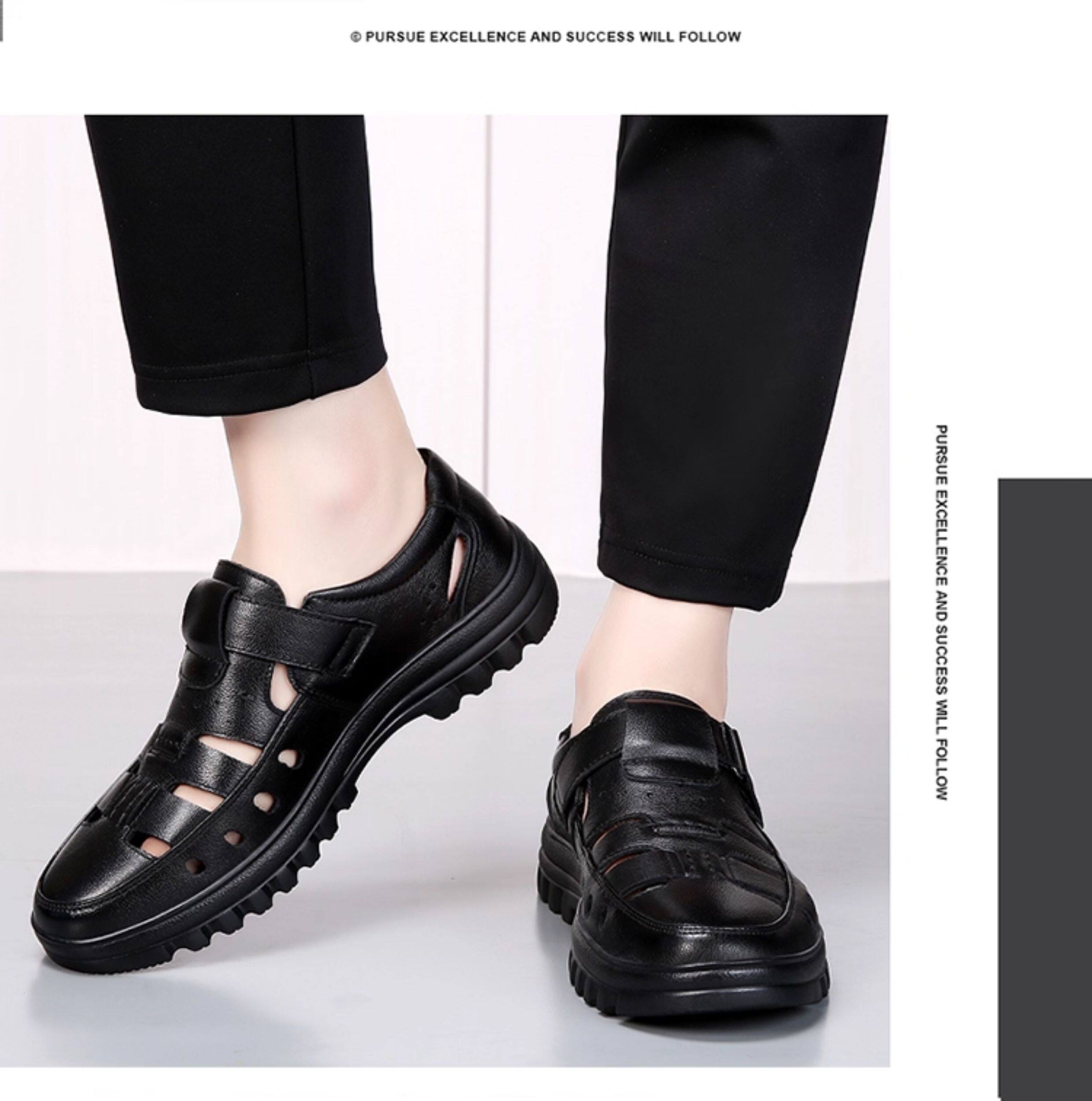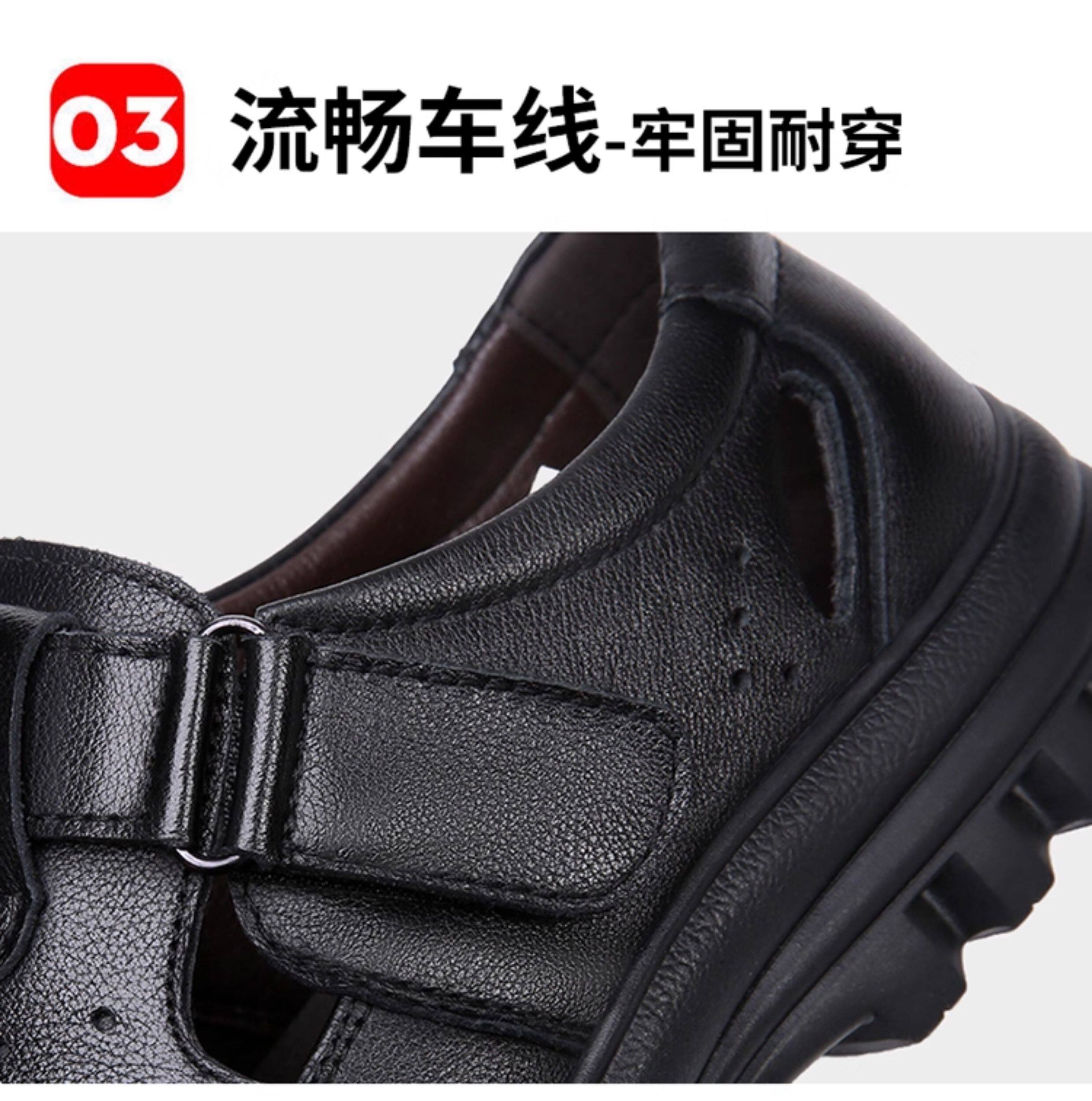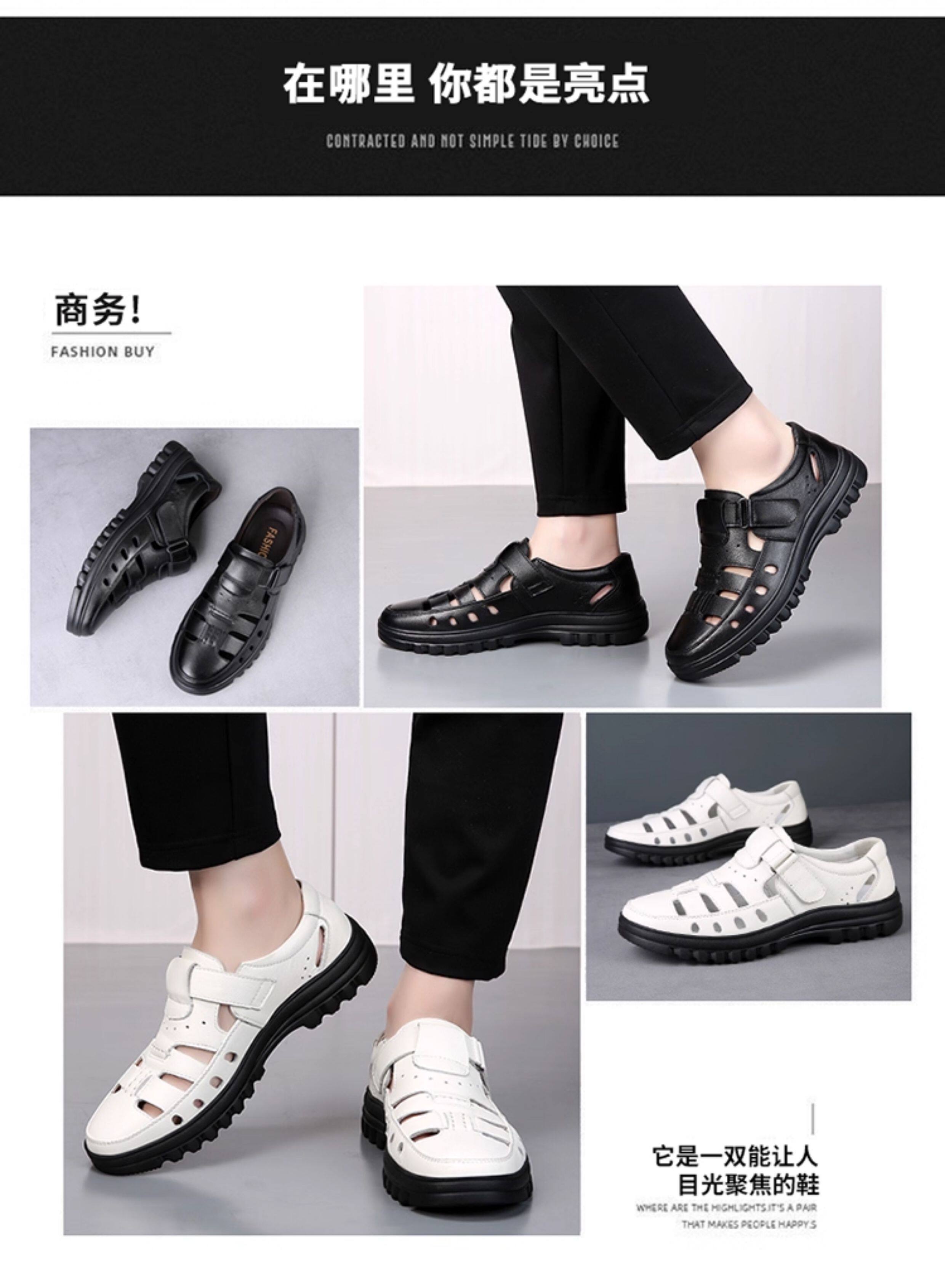 2025 Summer Genuine Leather Breathable Sandals Men's Casual Shoes Hollow Hole Shoes Non-Slip Dad Shoes Sandals
