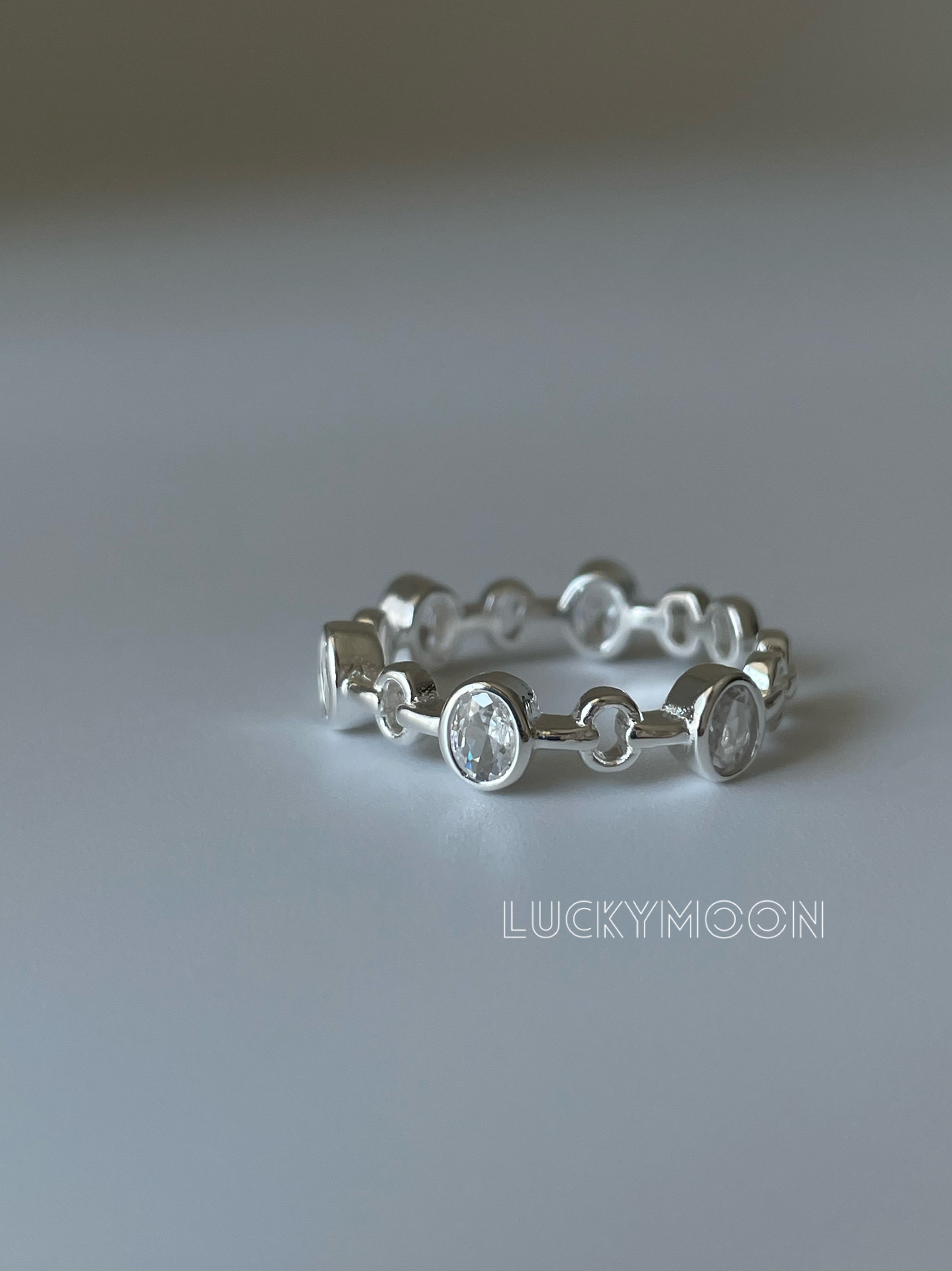 Luckymoon Cool Chain Zircon Ring with Adjustable Opening S925 All-Over Sterling Silver R275