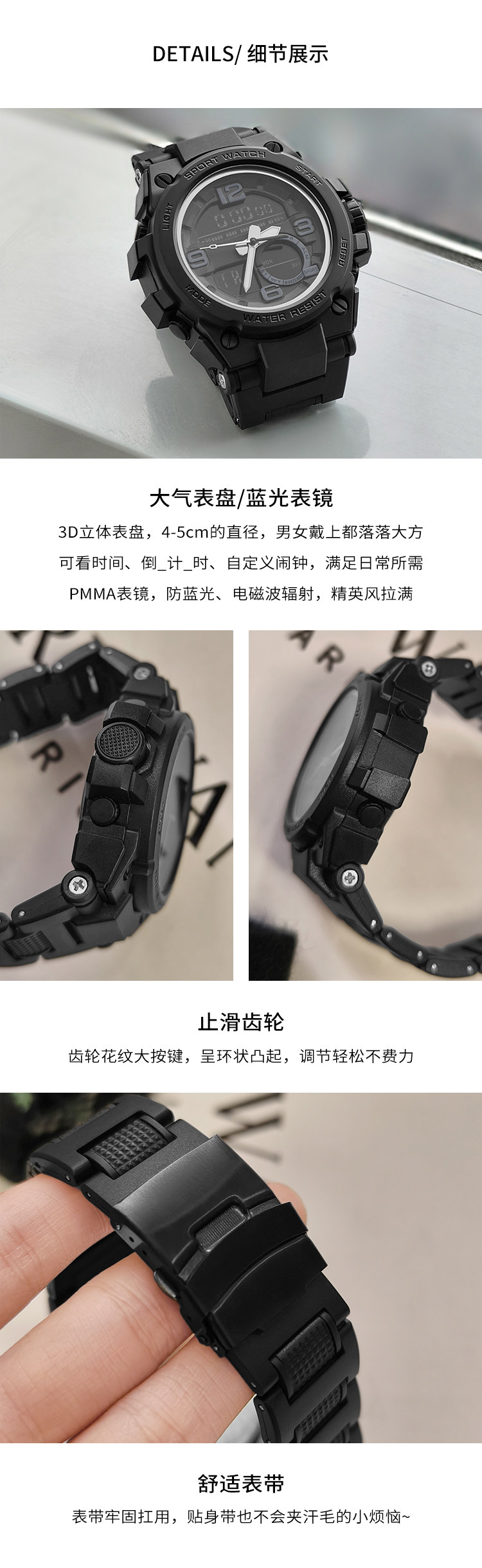 Meiyang【In Stock】Zero Gravity Watch Waterproof Three-Dimensional Dial Quartz Dual Display Unisex Black Watch Es