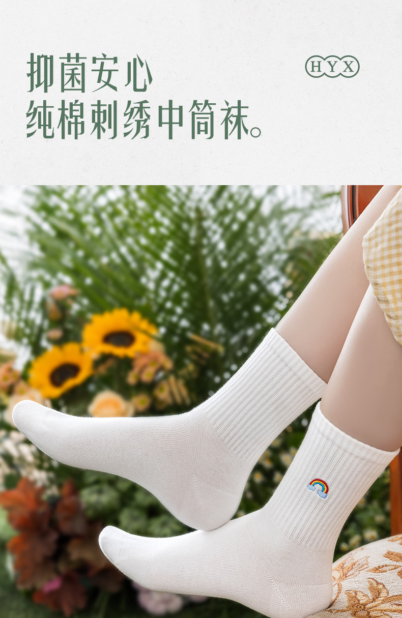 Hengyuanxiang Socks Women's Pure Cotton Antibacterial Mid-Calf Socks Deodorant Breathable Cotton Socks White All-Cotton Spring and Autumn Women's Long Socks