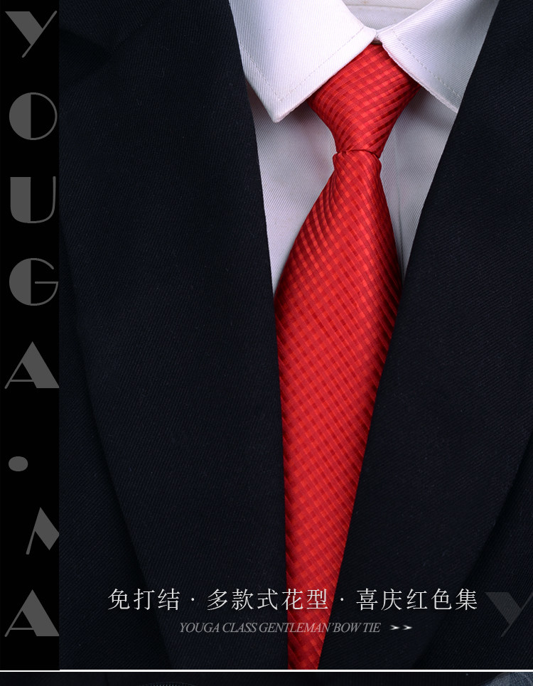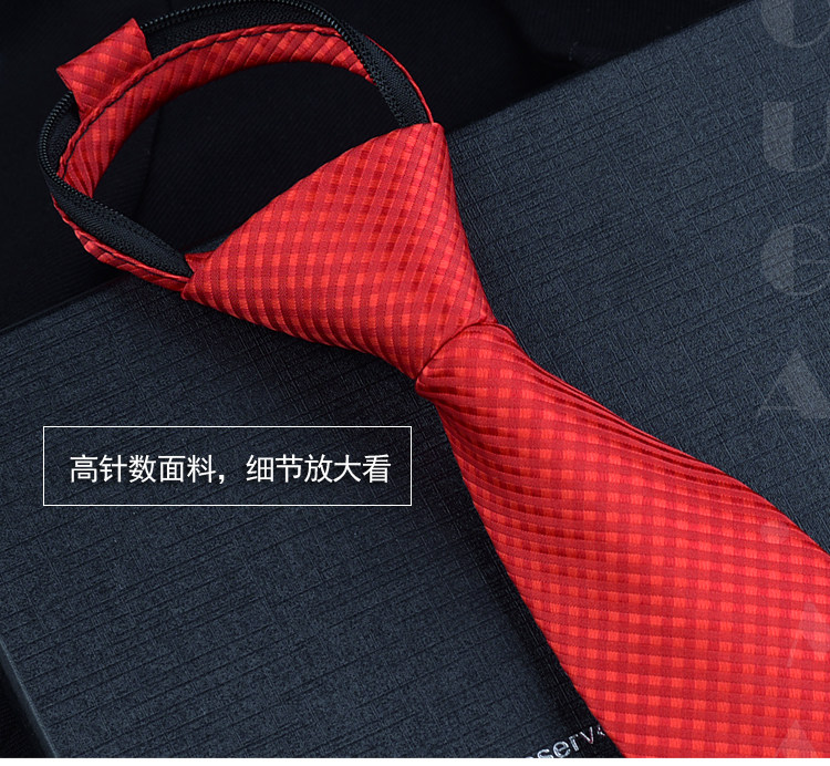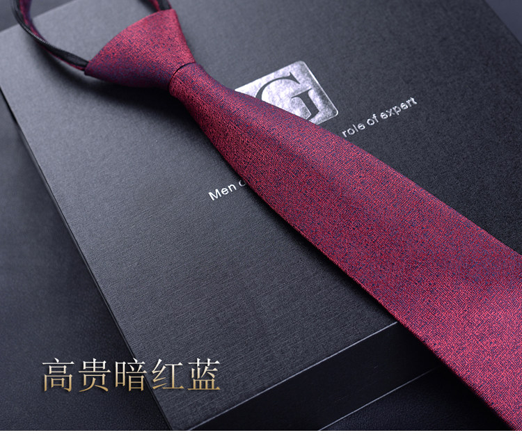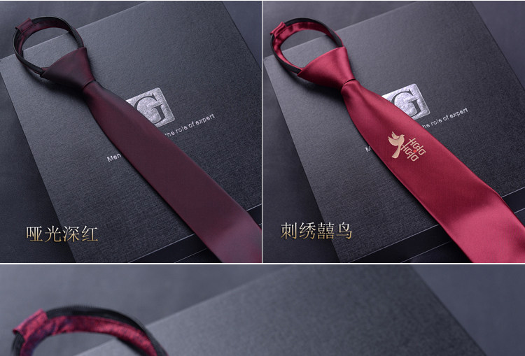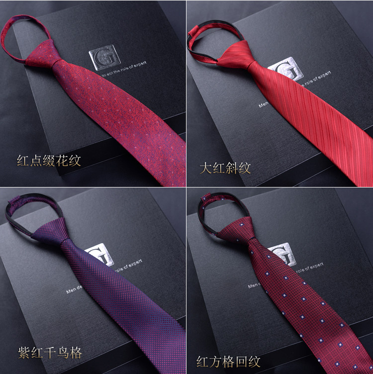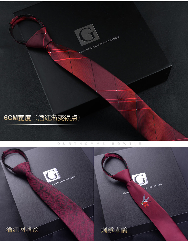 Red No-Tie Tie for Men, Easy-To-Tie Festive Wedding Tie, Lazy Zipper Burgundy Tie for Men