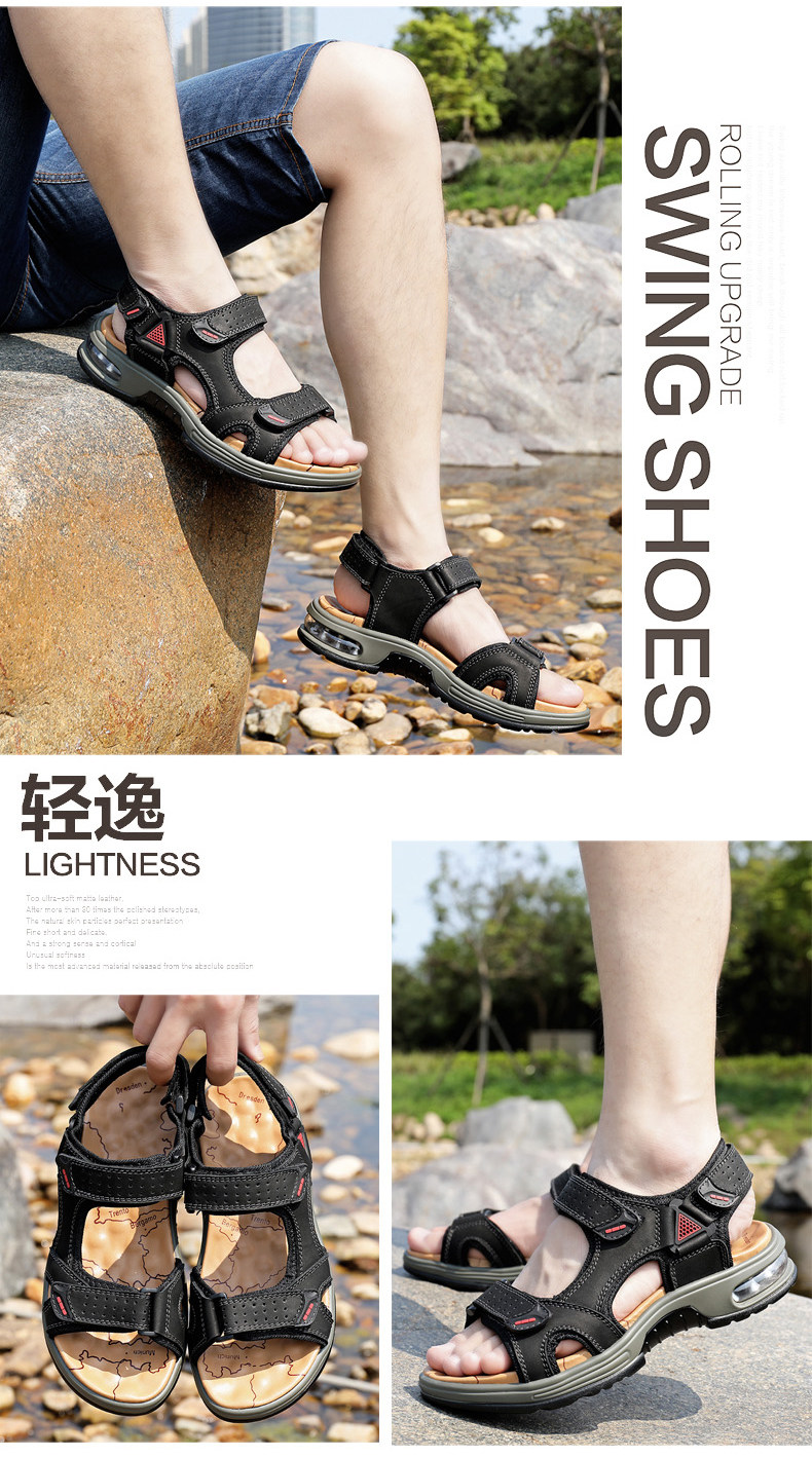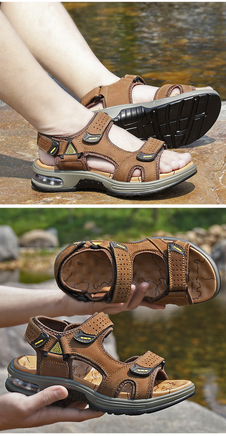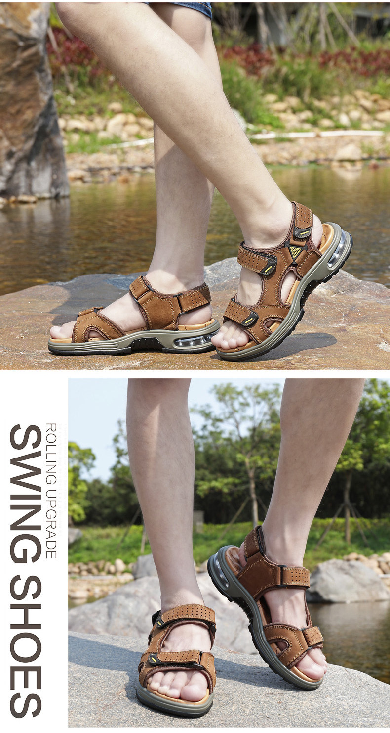 Clearance Sale Summer Genuine Leather Sandals for Men, Trendy Air-Cushion Slippers, Casual Sports Beach Shoes, Non-Slip, Wear-Resistant, Soft Sole