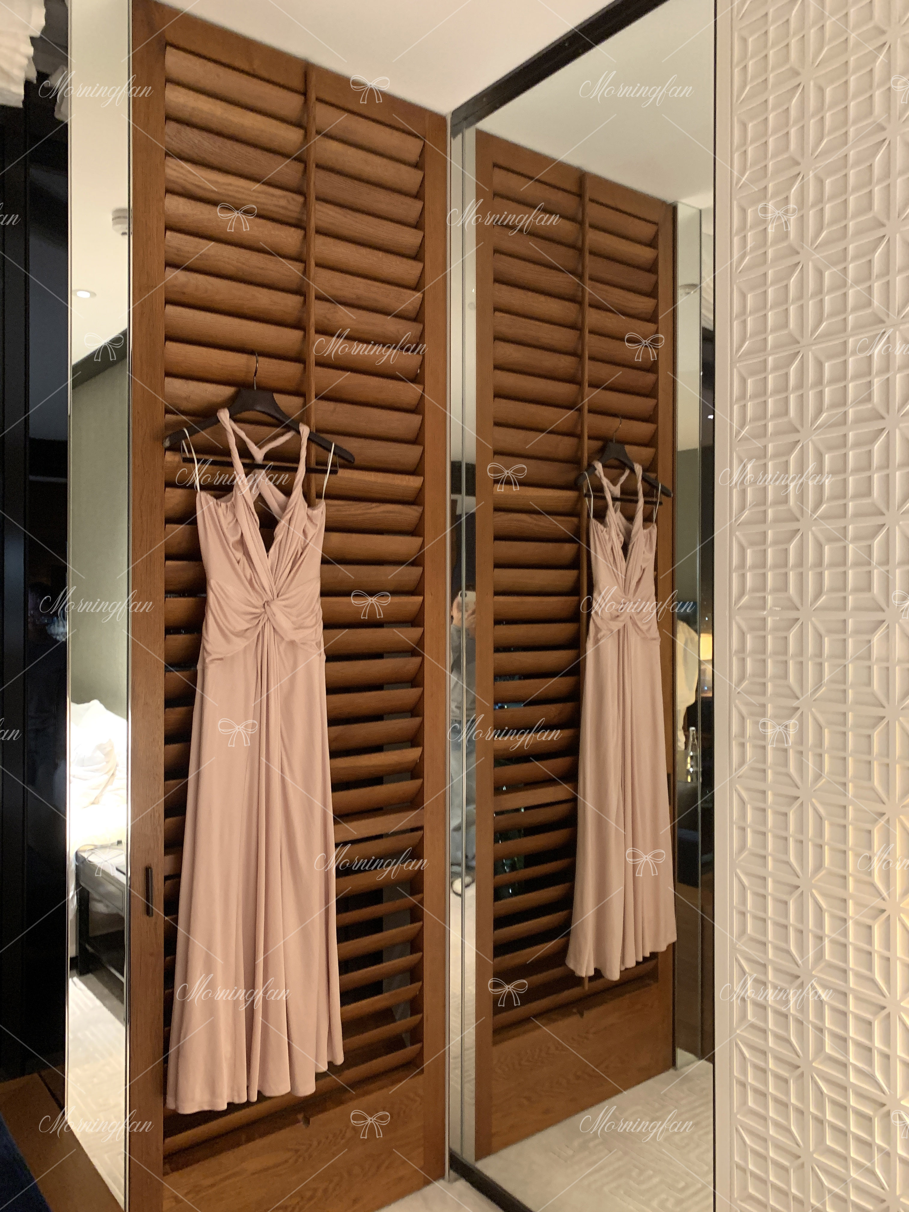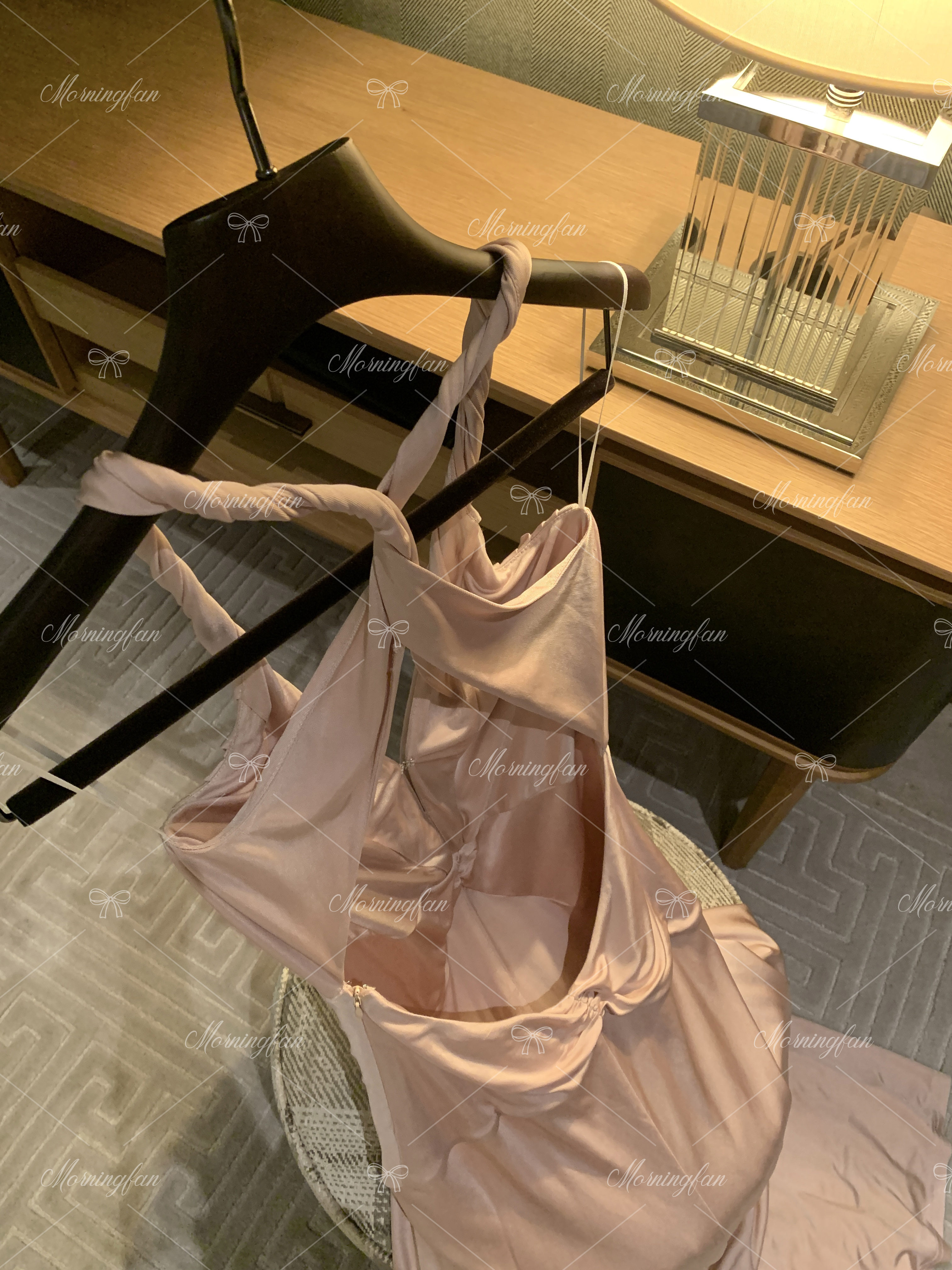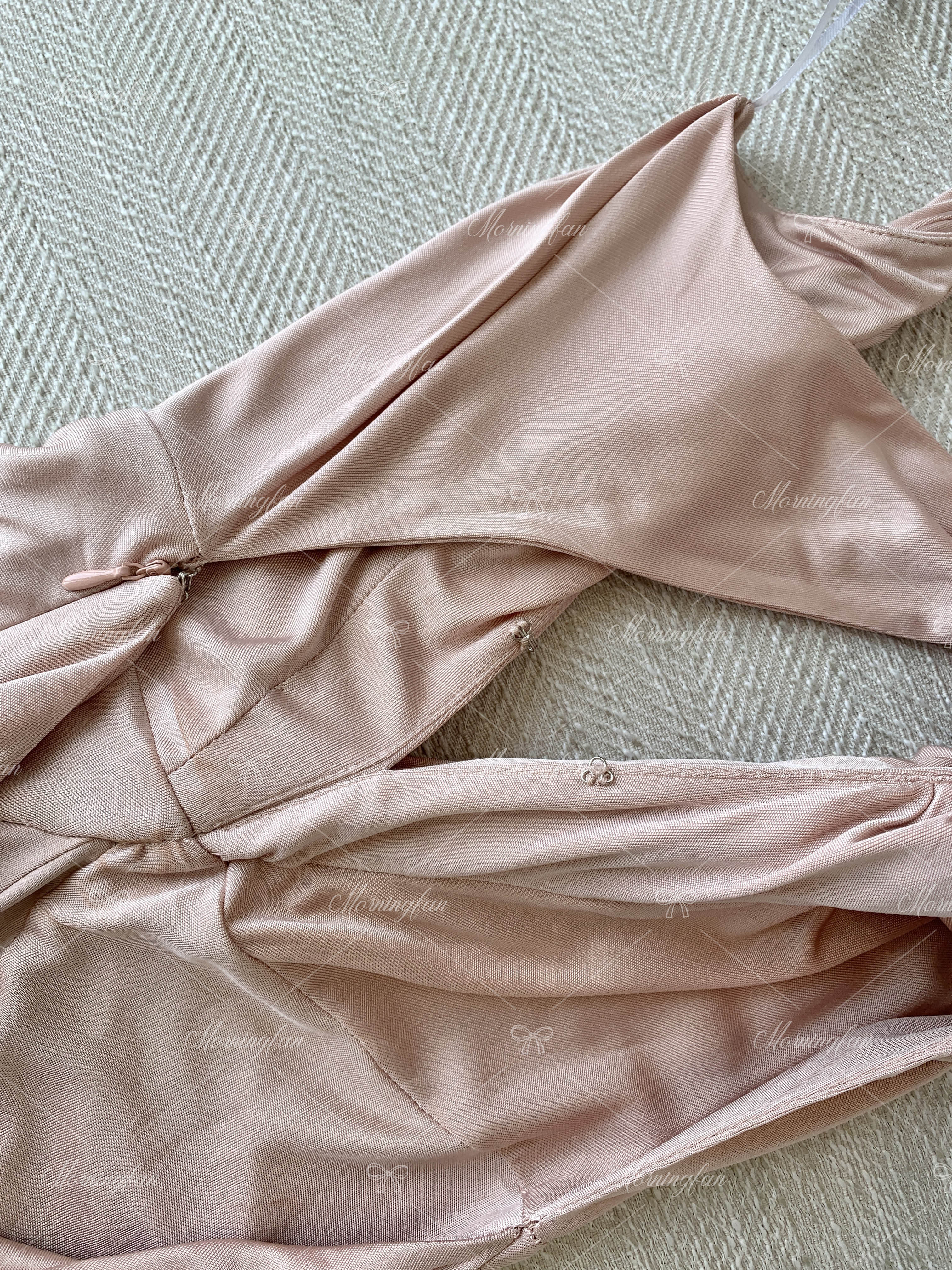 这条香槟粉的礼服裙是我当时挑了很久才决定的