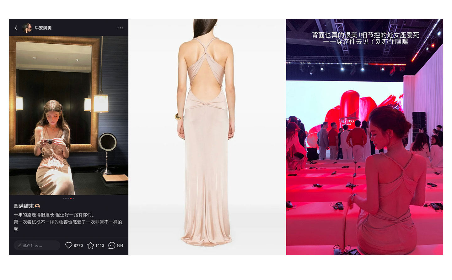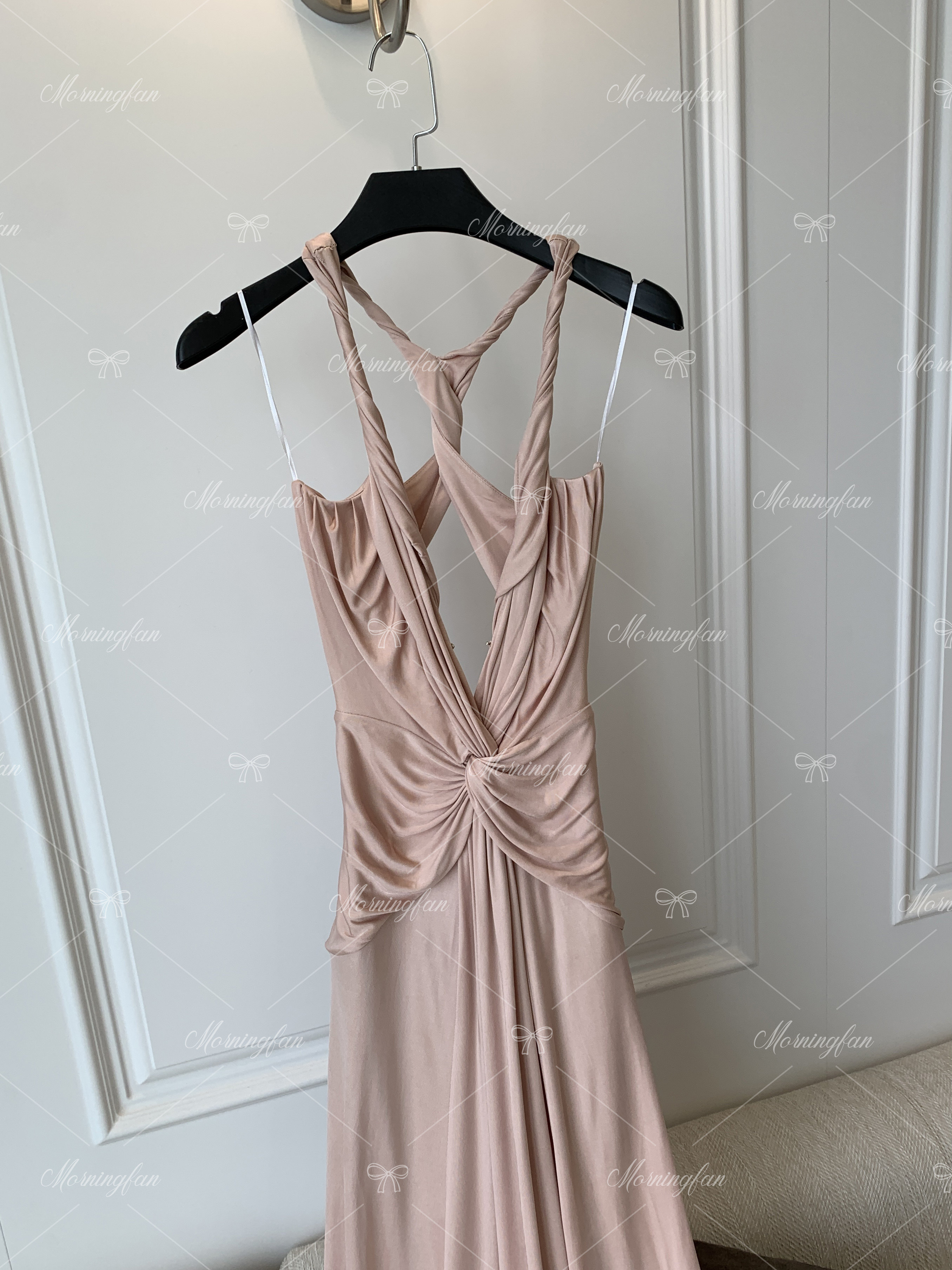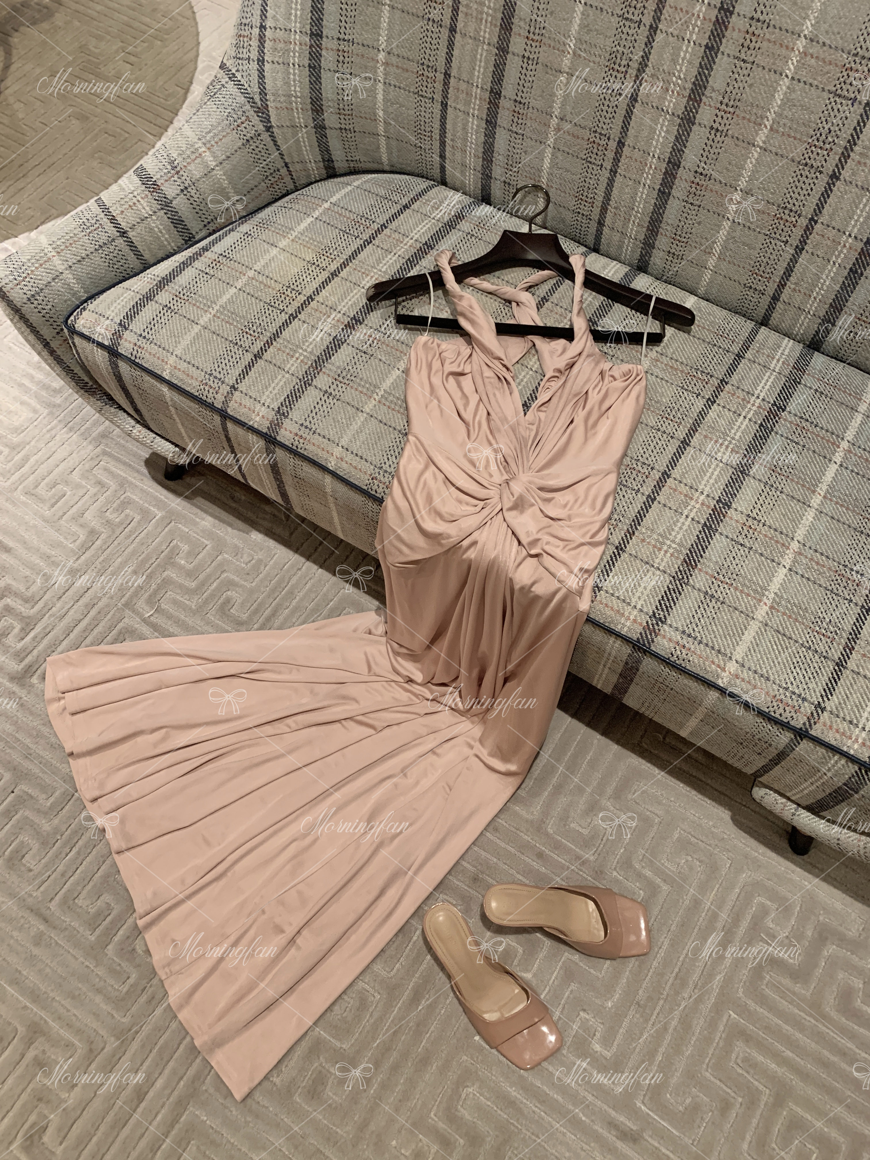 这条香槟粉的礼服裙是我当时挑了很久才决定的