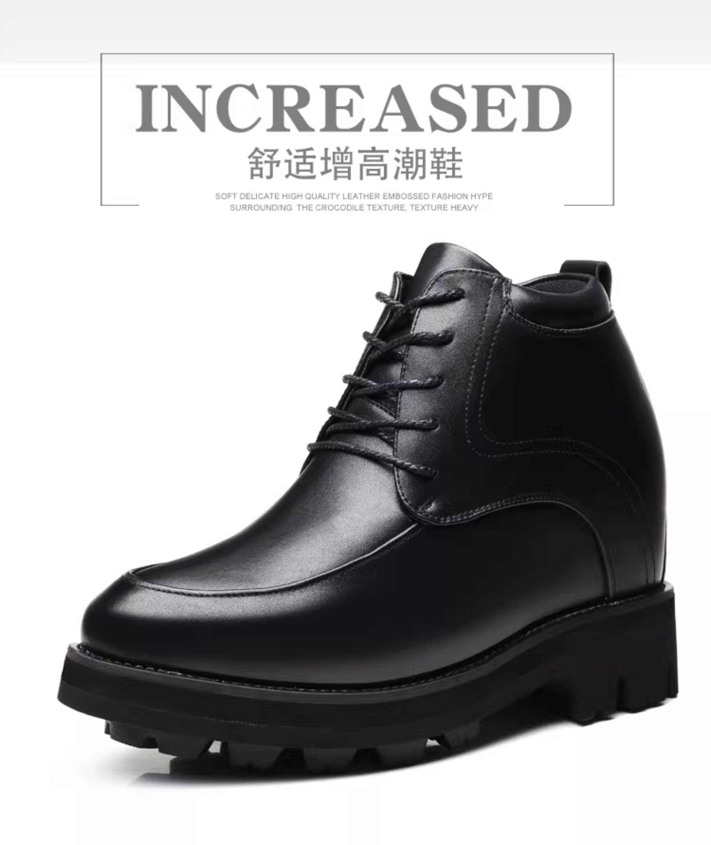 Stealth Height-Increasing Shoes for Men, 16cm Height Increase, Business Formal Leather Shoes, Black Derby Shoes, Thick Sole