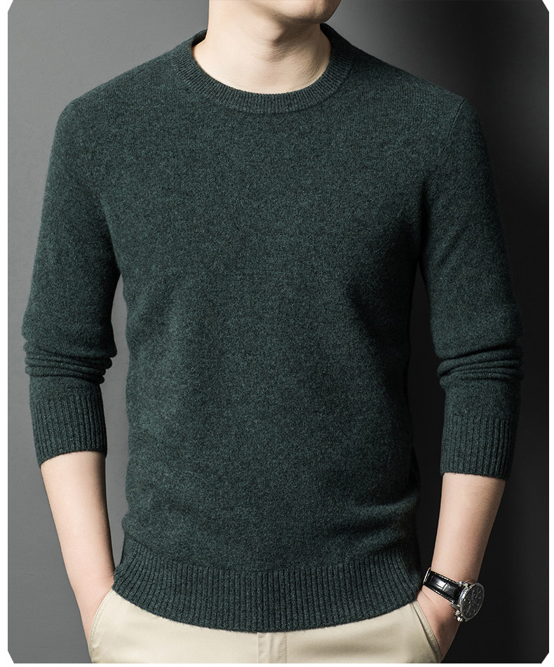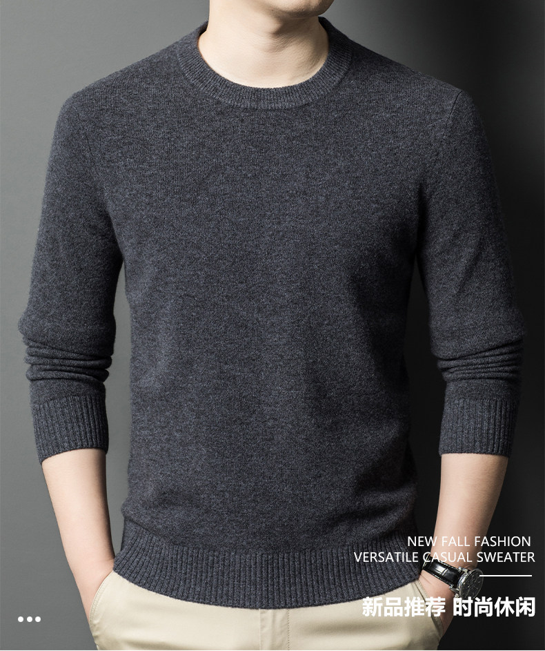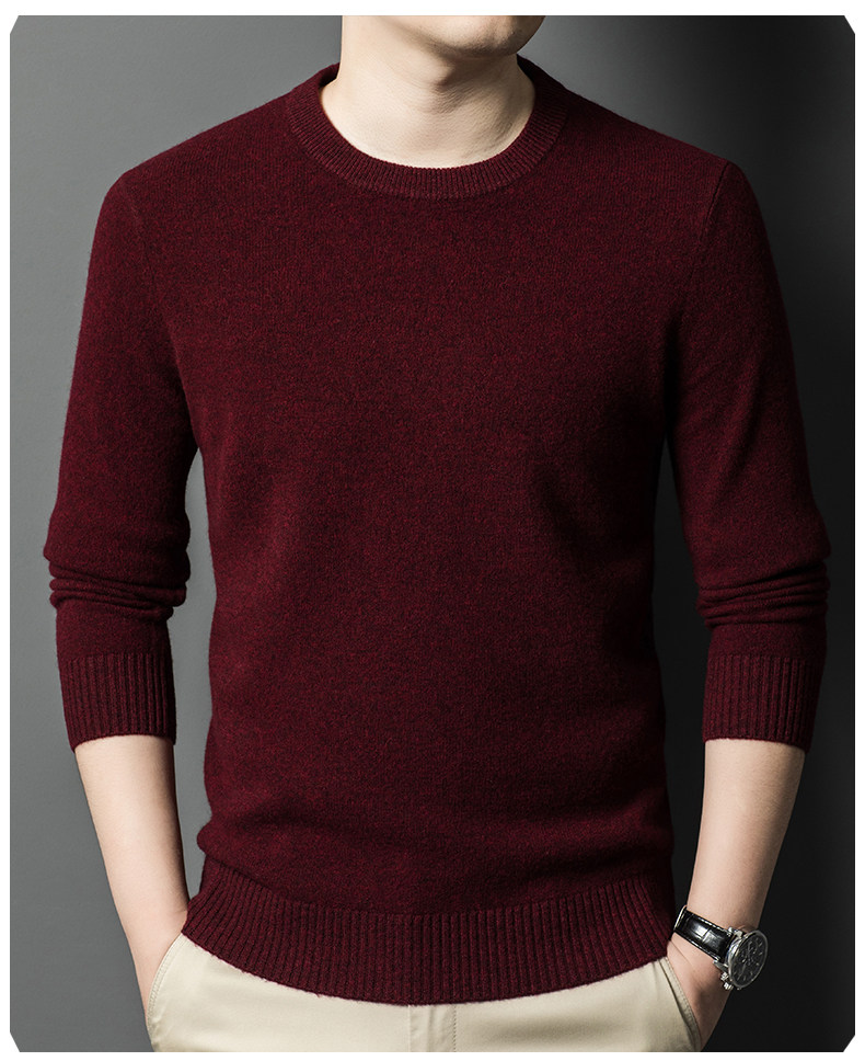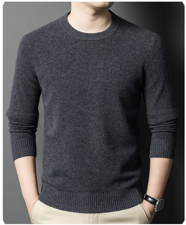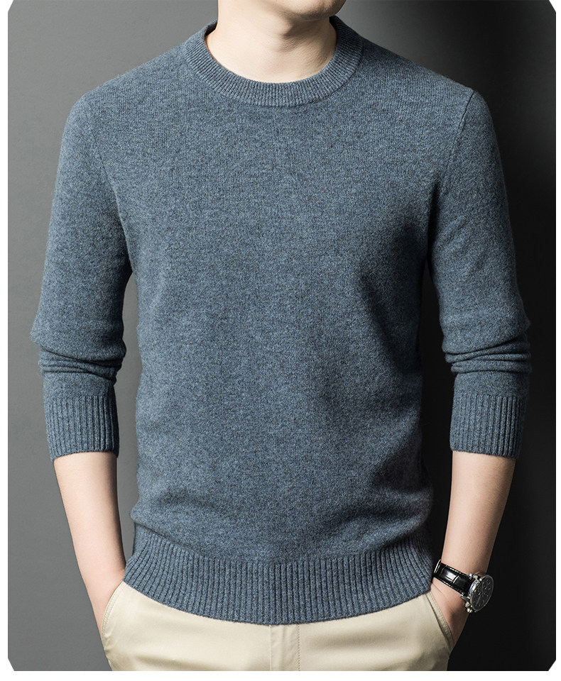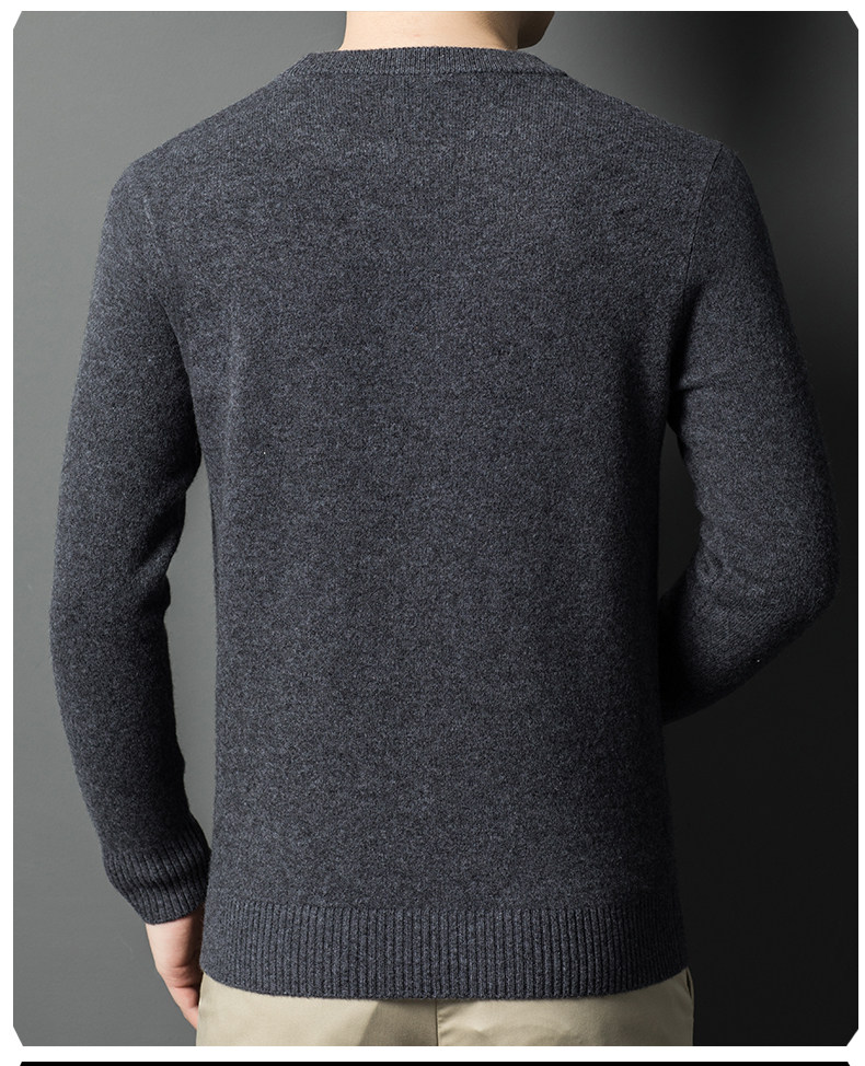 Hengyuanxiang Round Neck 100% Wool Sweater for Men, Warm Inner Layer Sweater for Middle-Aged Dads, Solid Color Casual Base Shirt