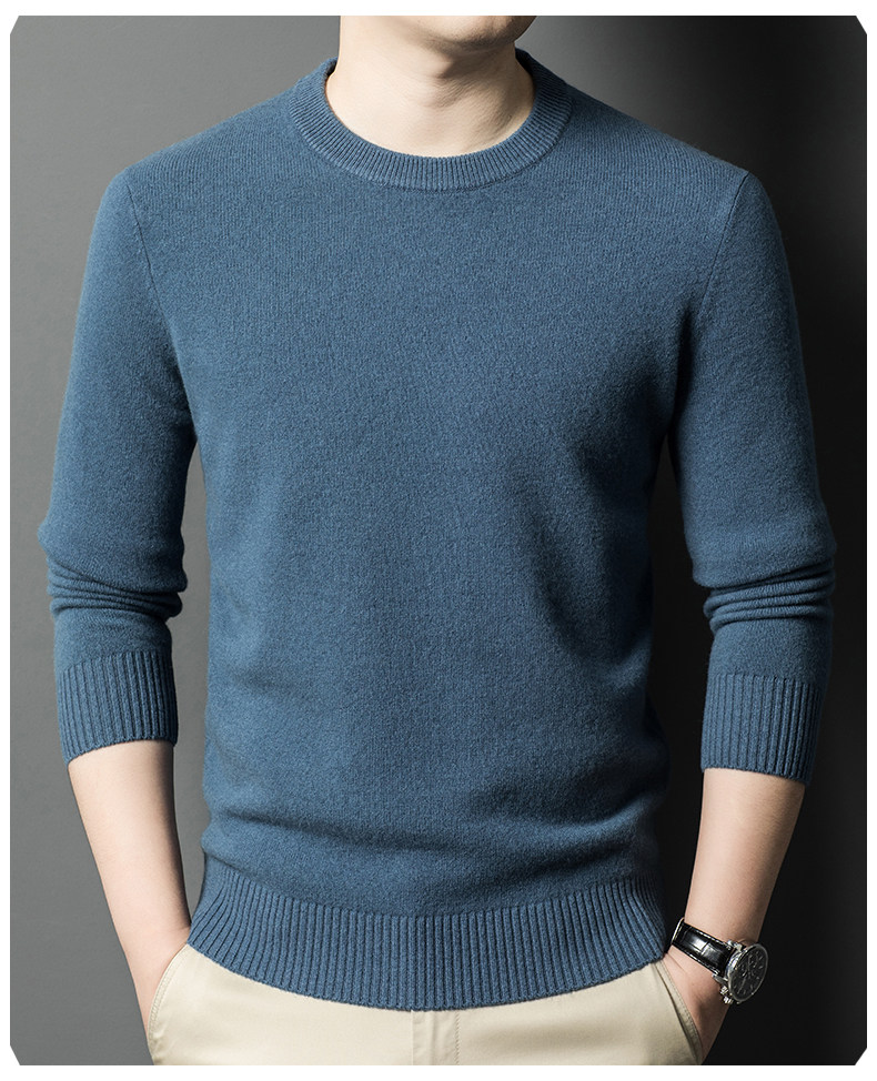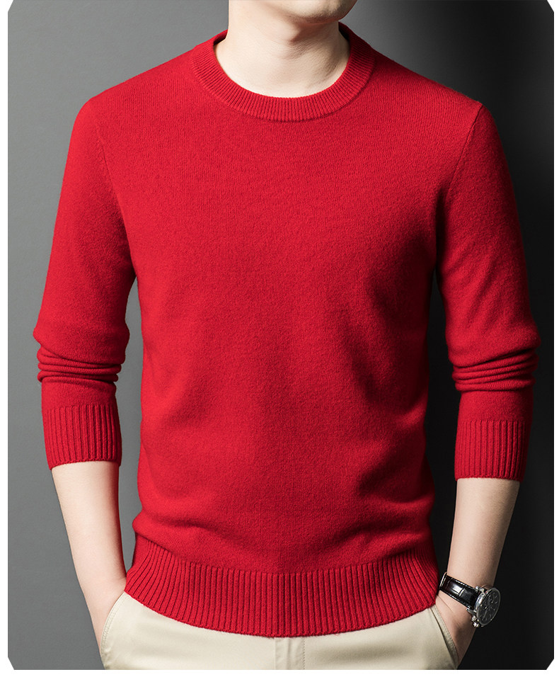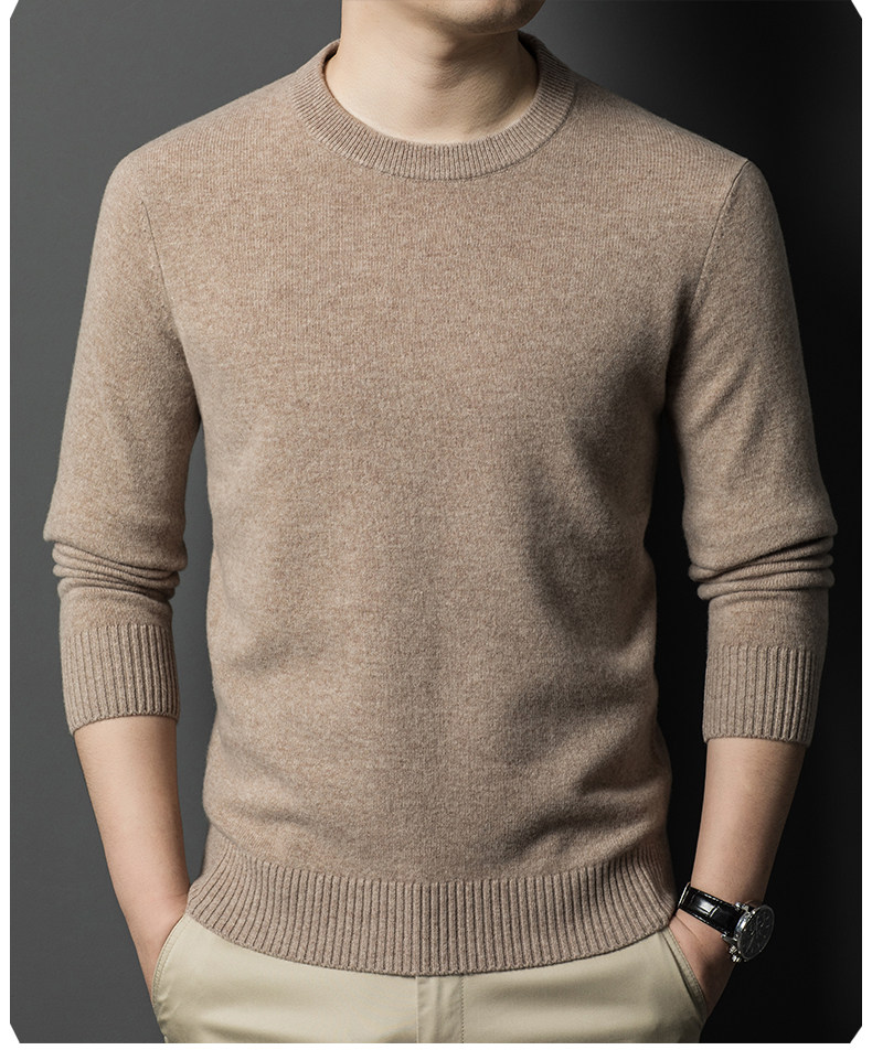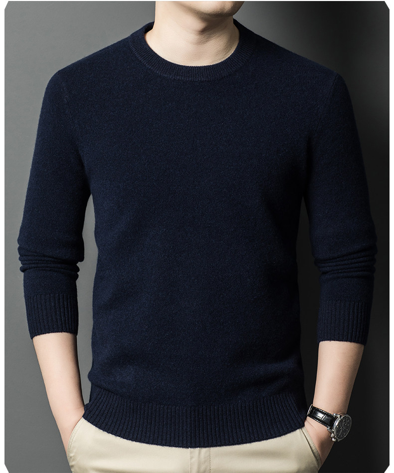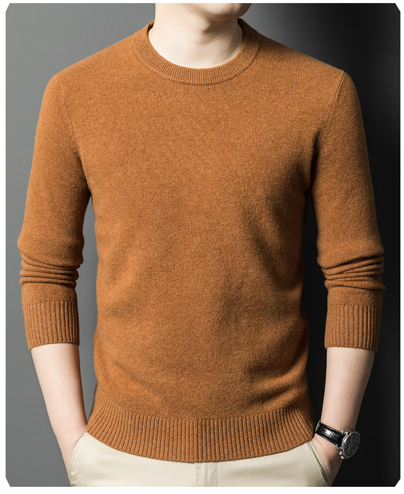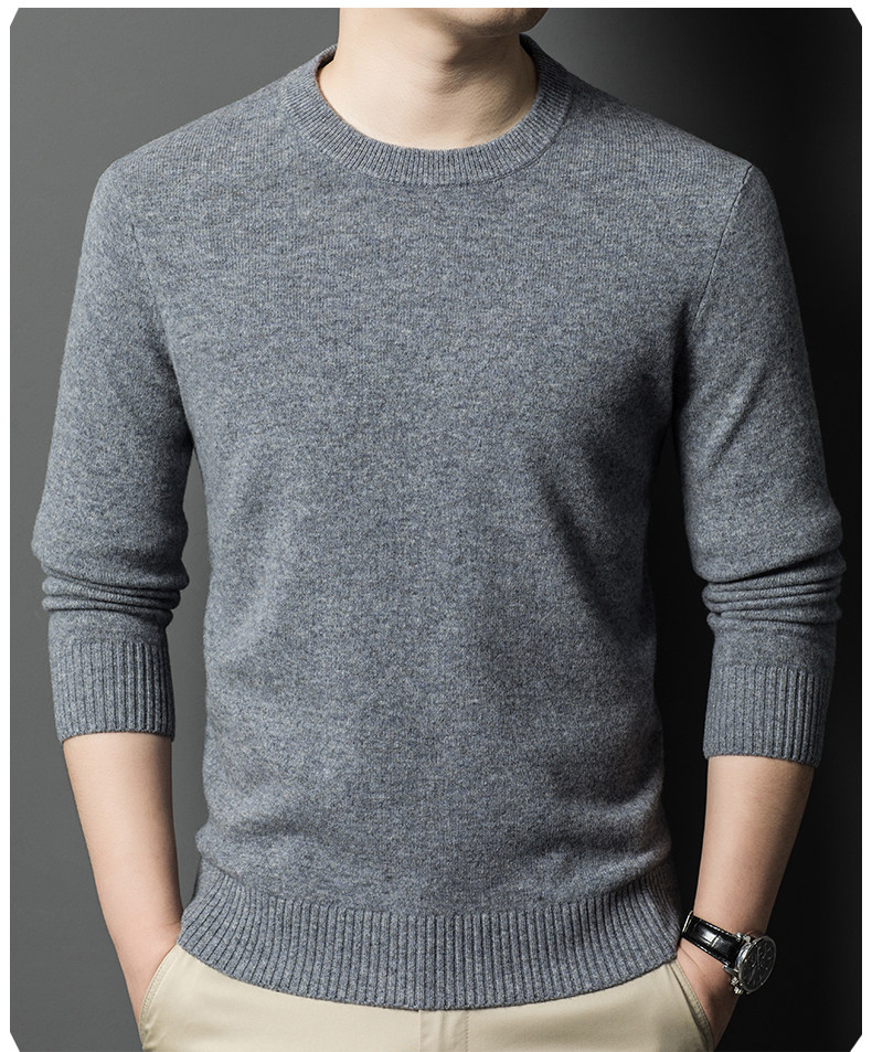Hengyuanxiang Round Neck 100% Wool Sweater for Men, Warm Inner Layer Sweater for Middle-Aged Dads, Solid Color Casual Base Shirt