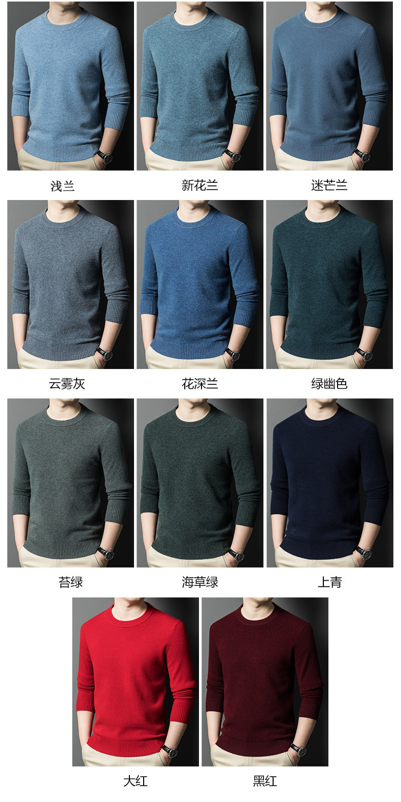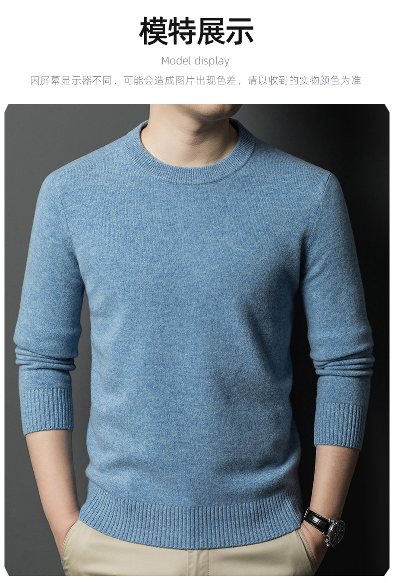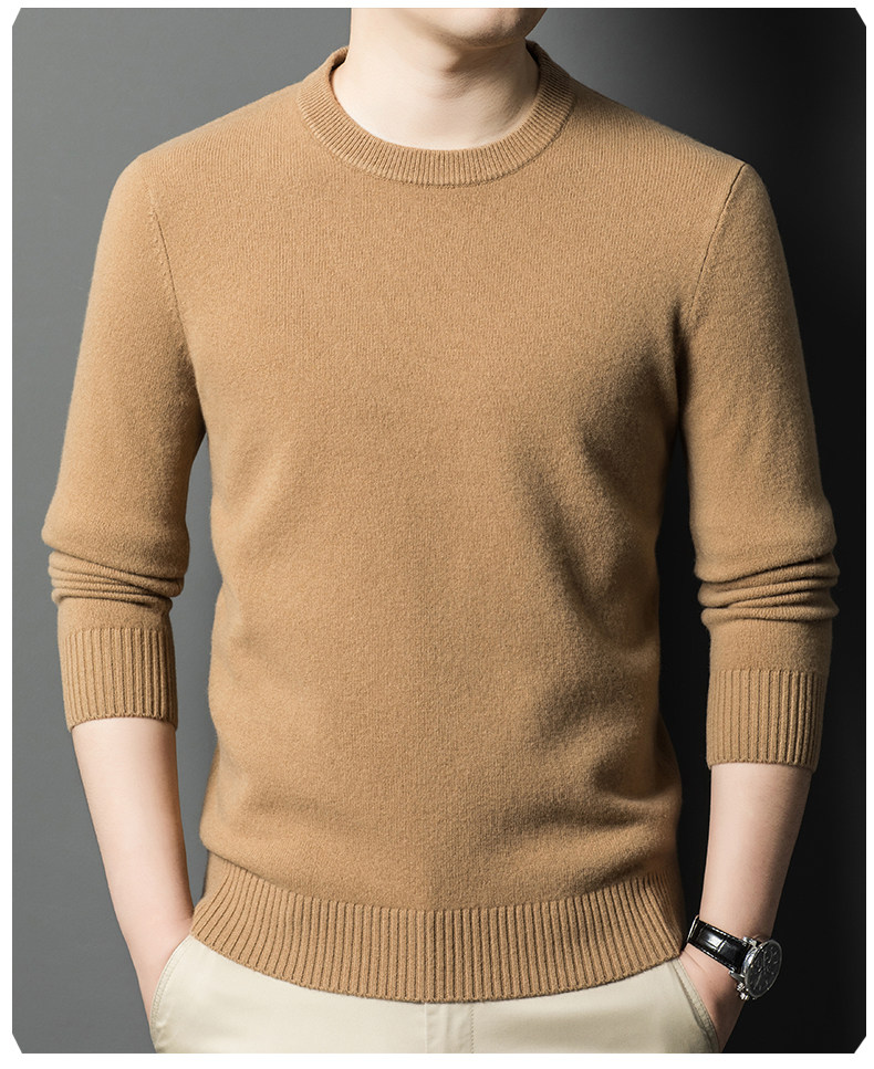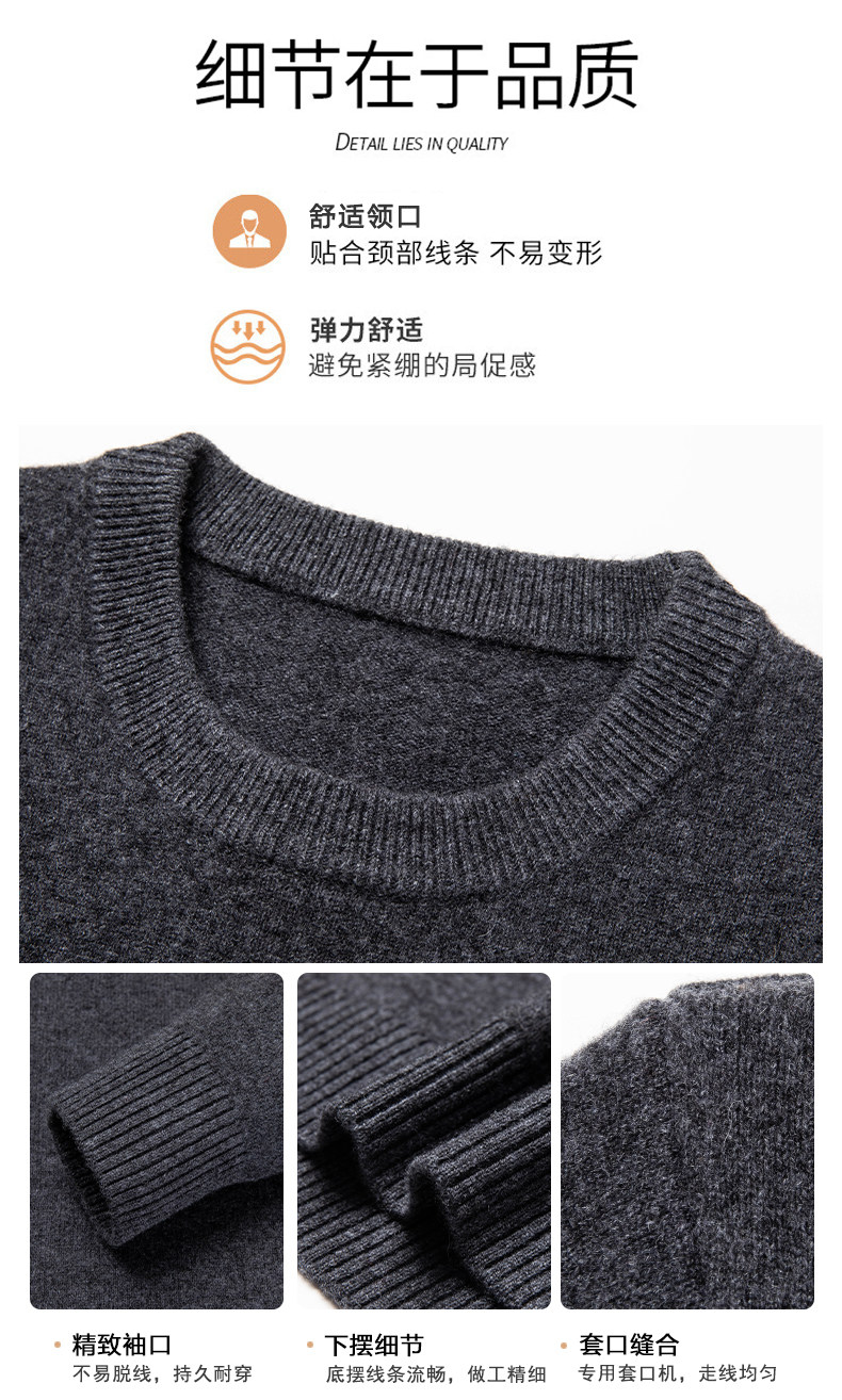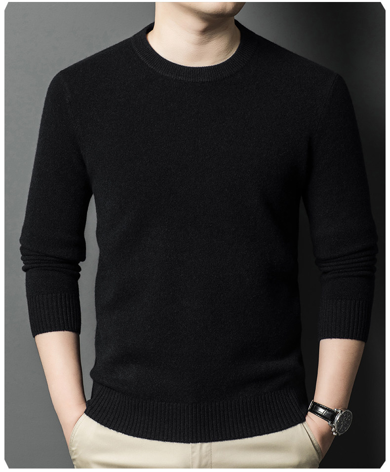 Hengyuanxiang Round Neck 100% Wool Sweater for Men, Warm Inner Layer Sweater for Middle-Aged Dads, Solid Color Casual Base Shirt