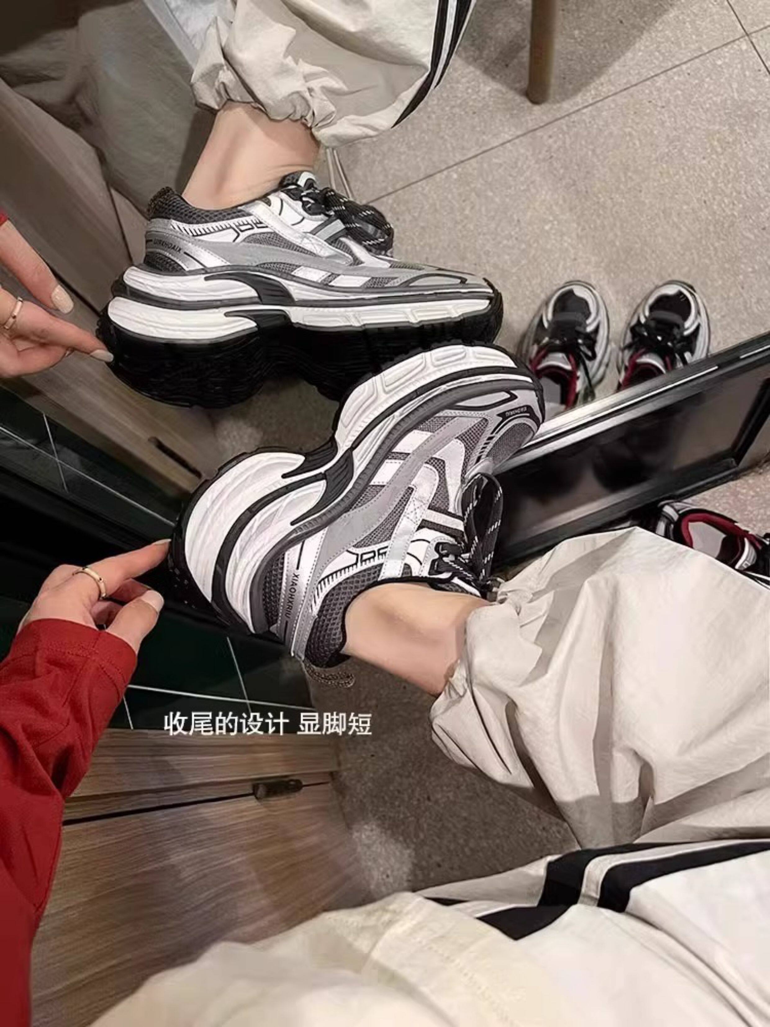 Hong Kong Thick-Soled Height-Increasing Dad Shoes for Women 2026 Spring and Autumn Shock-Absorbing Non-Slip Distressed Mesh Breathable Casual Shoes Sneakers