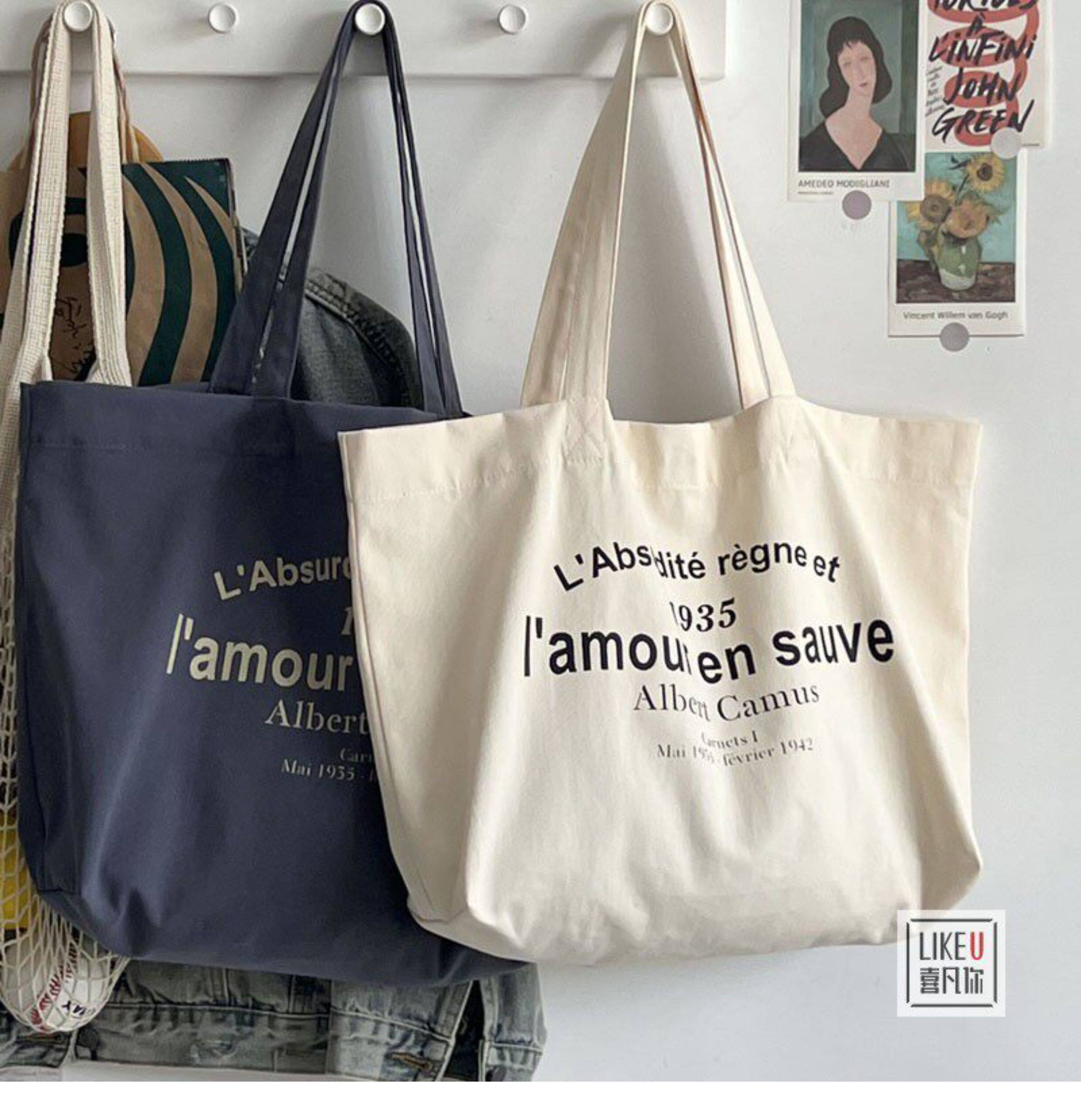 LAOSHU Large-Capacity Japanese-Style Commuter Casual Single-Shoulder Canvas Student School Bag Shopping Bag Simple Literary Tote Bag