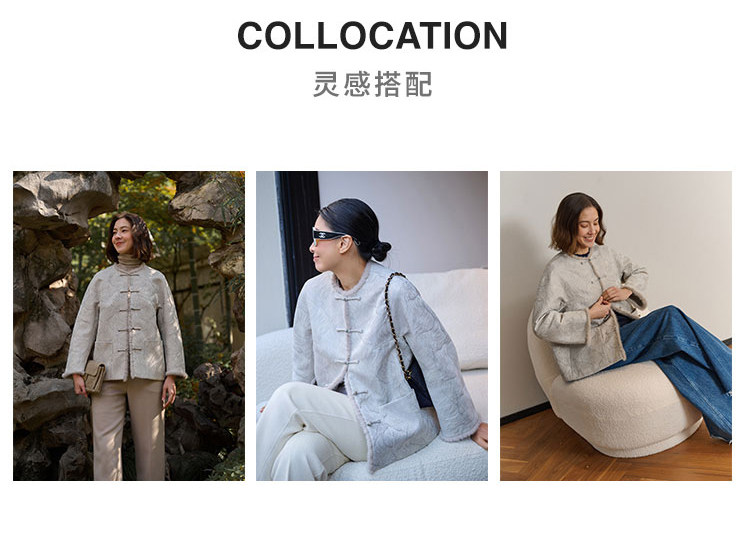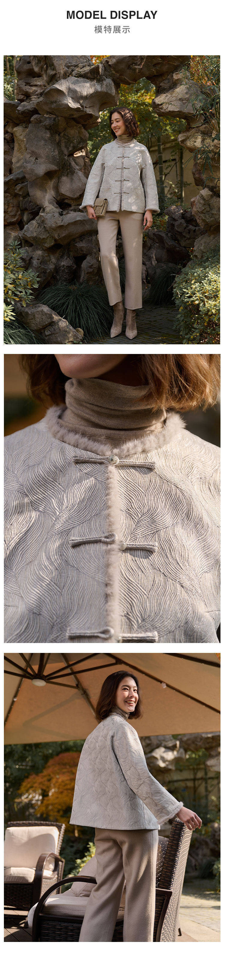Amandax "Oriental Artistic Atmosphere" Series Cloud Wave Brocade with Mink Trim Chinese Style Jacket/New Year Dress
