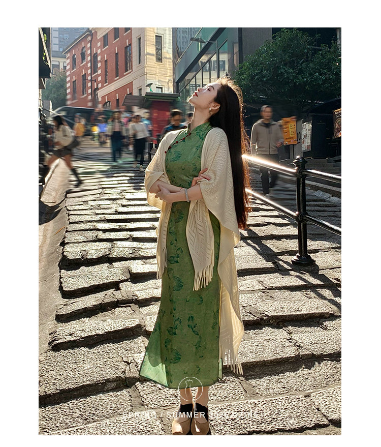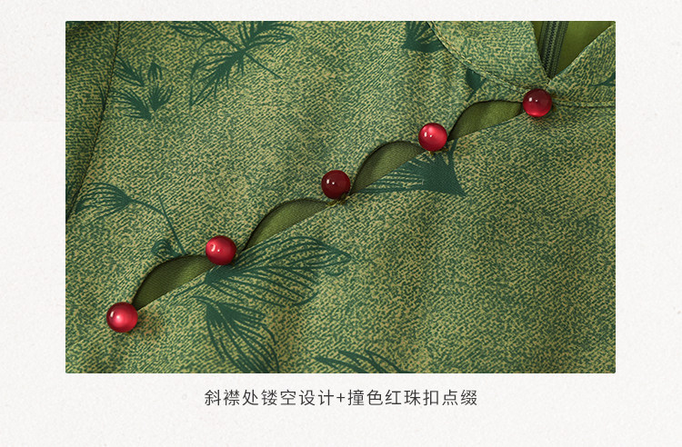 Lingqian Zihedan Green New Chinese-Style Floral Improved Cheongsam Women's Spring and Summer Work Dress Waist-Cinching Slimming Dress
