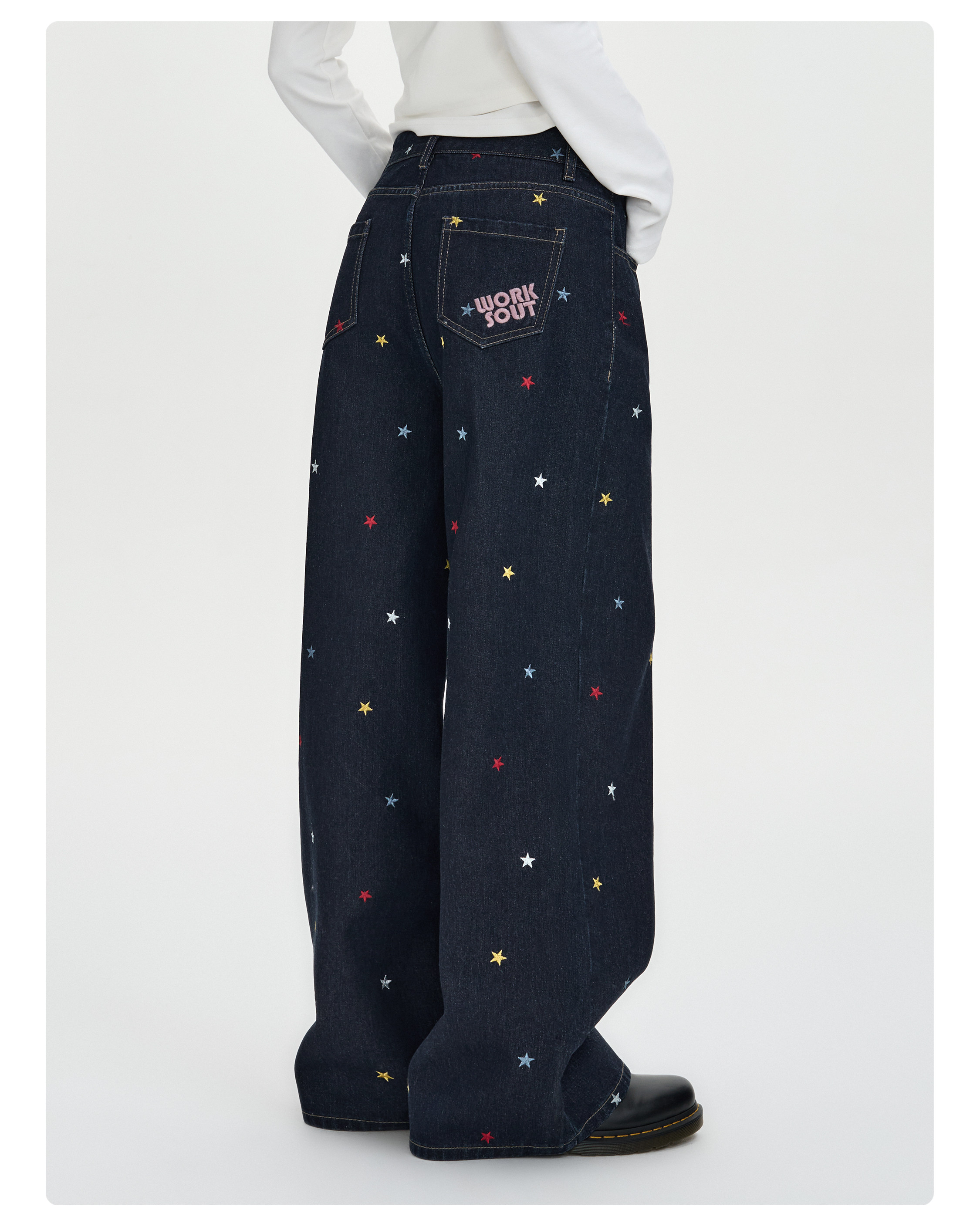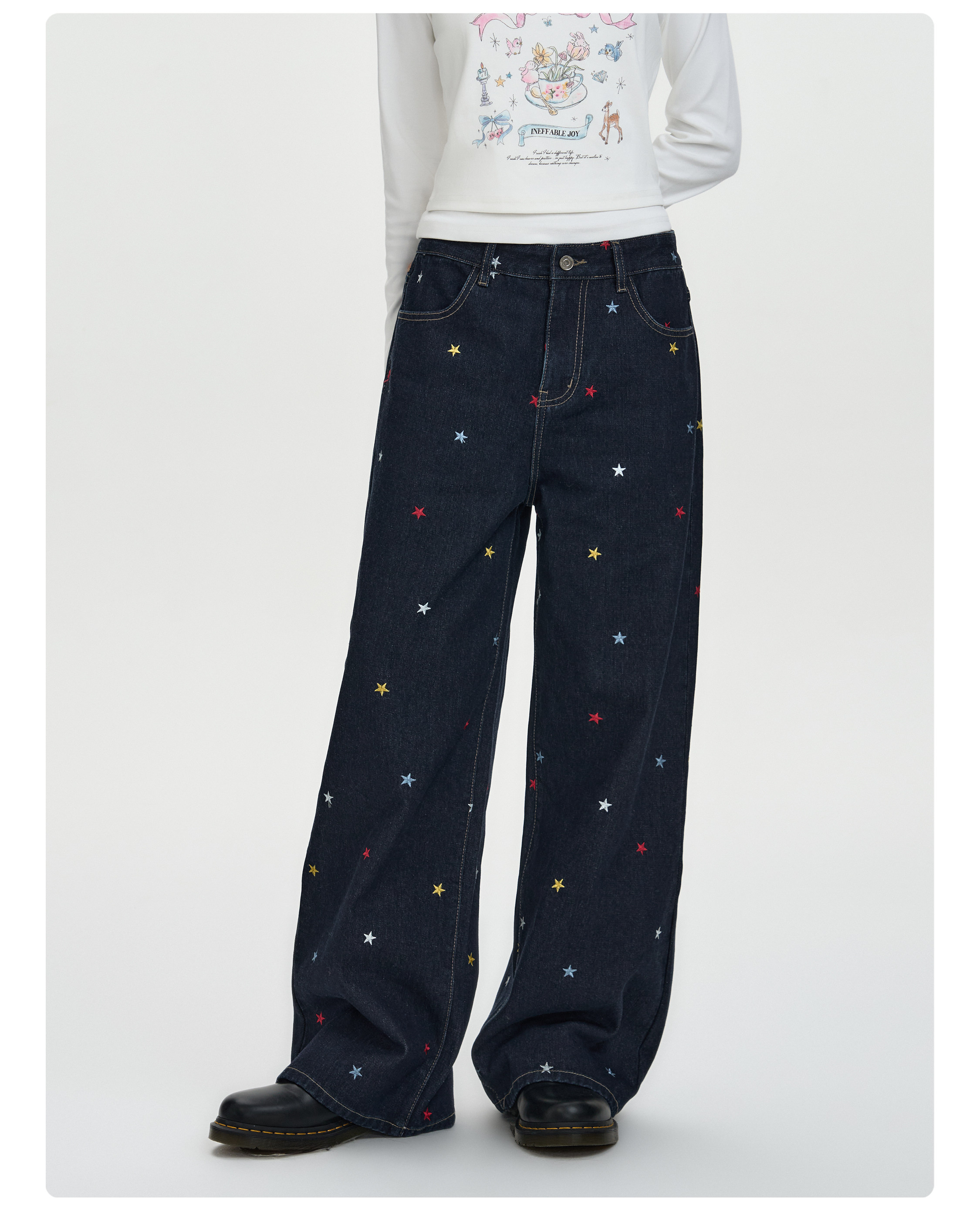 Nicebad Washed Star Embroidered Pants Loose Retro Color-Blocking Casual Unisex Denim