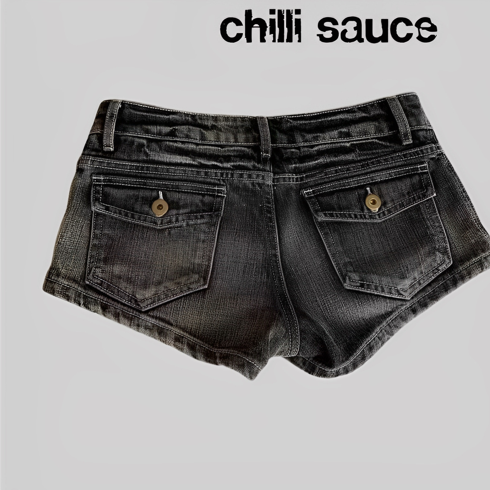 American-Style Hot Girl Black and Gray Denim Ultra-Short Shorts for Women, New Summer Sexy Low-Waist Slim-Fit Straight-Leg Hot Pants Trendy