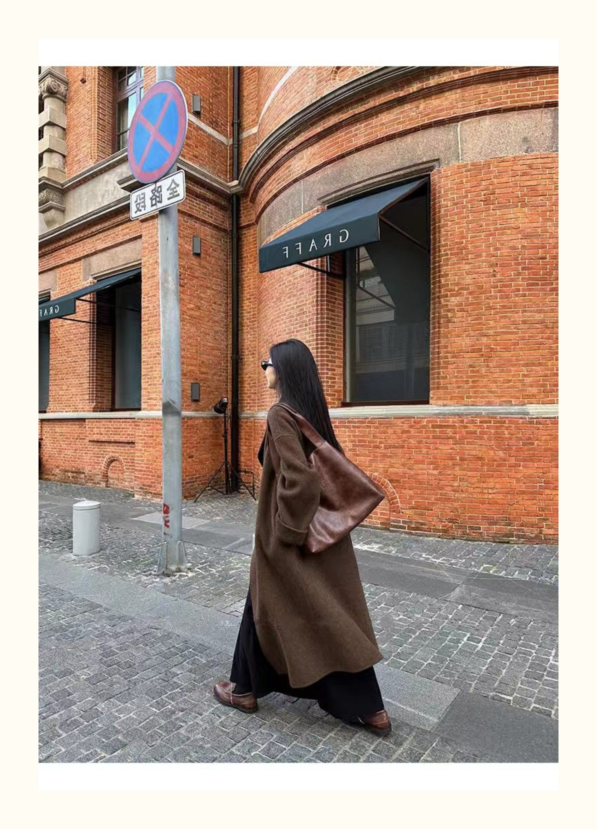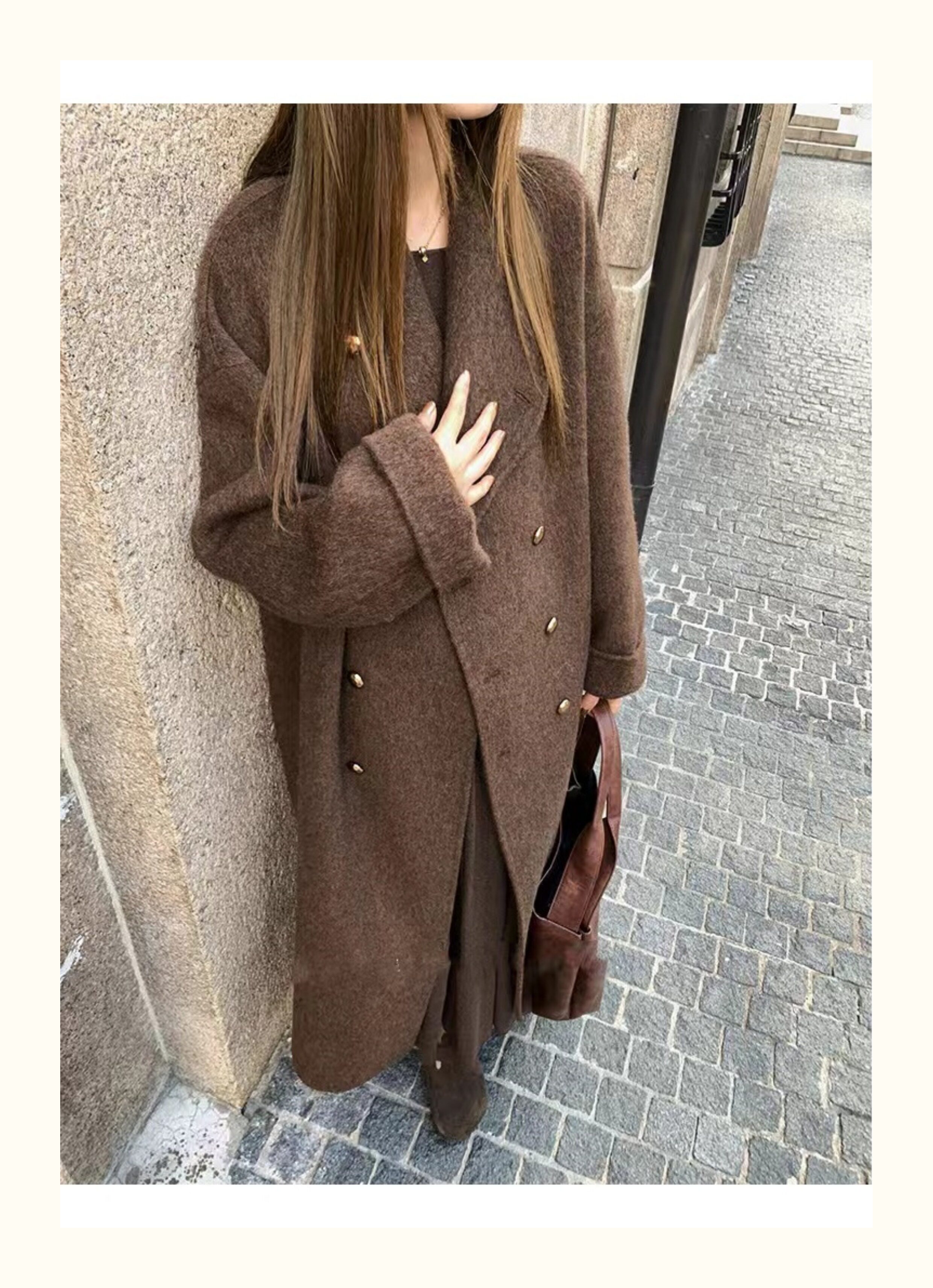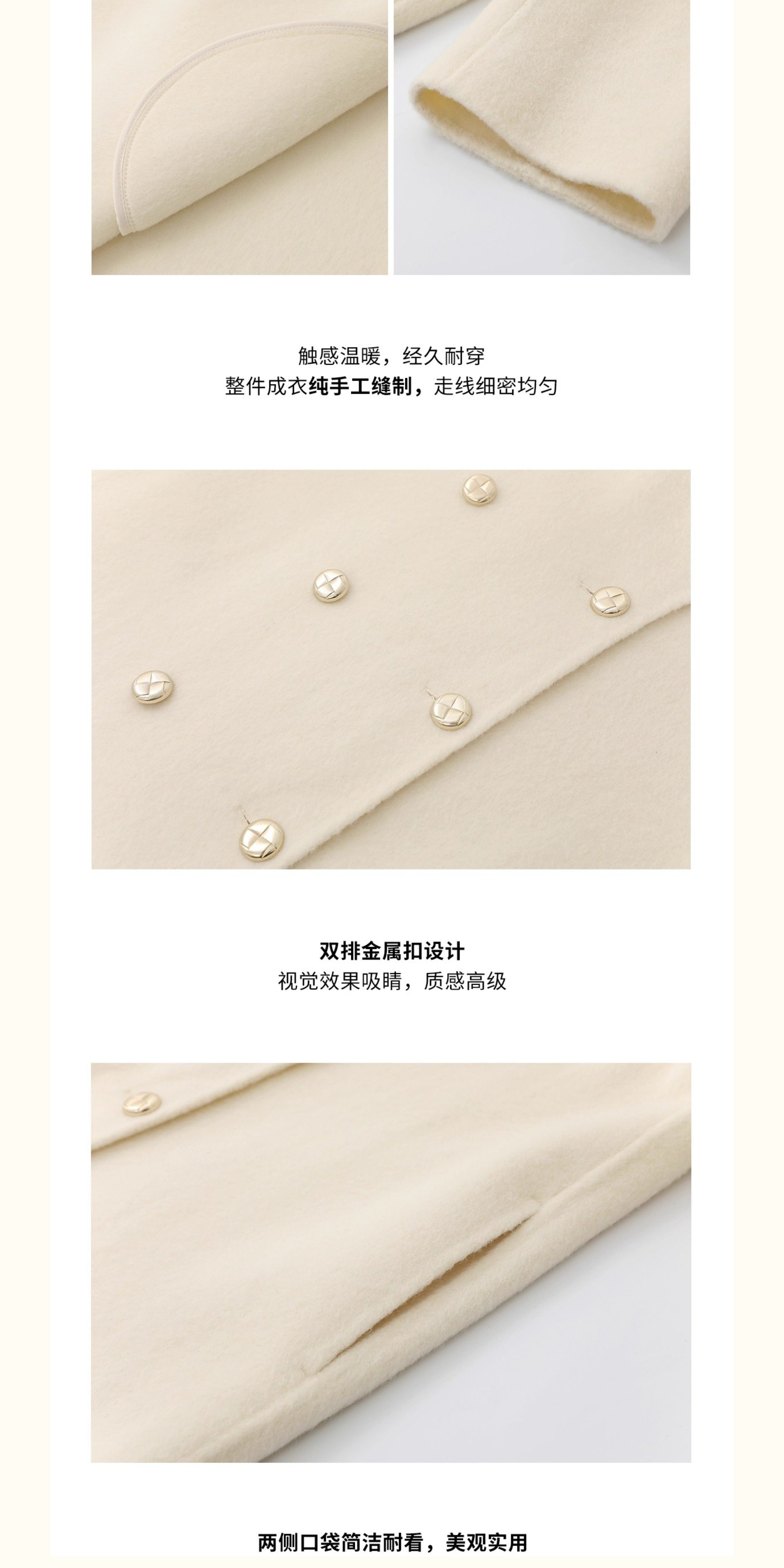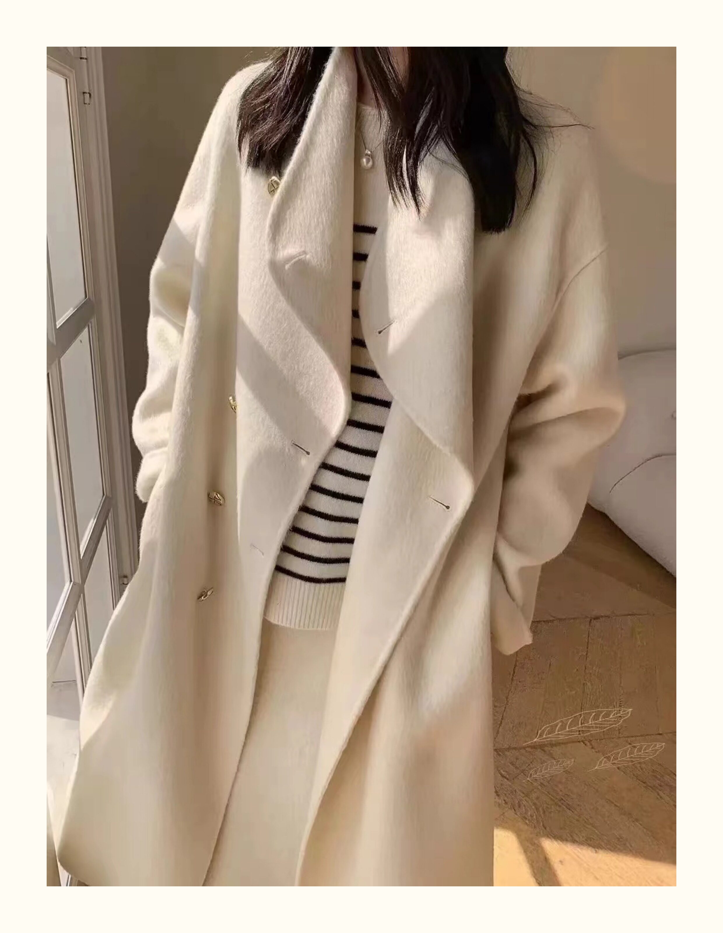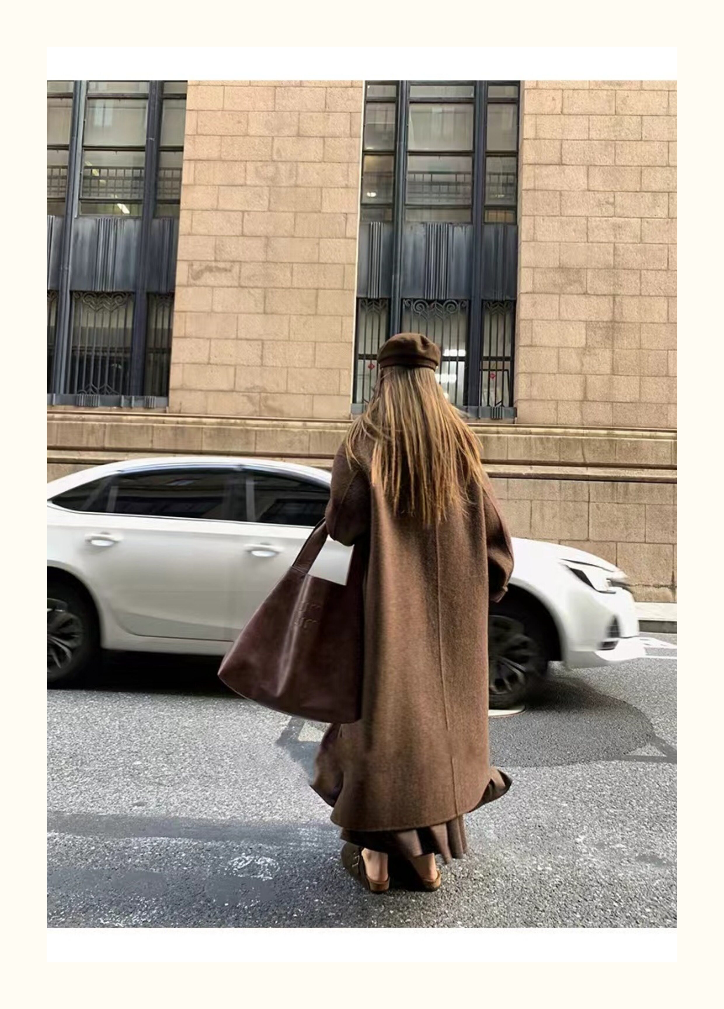 Gold-Buckle Mid-Length Double-Sided Cashmere Coat for Women, 2025 Autumn and Winter, High-End Korean Style, Stand-Up Collar, Loose Woolen Coat