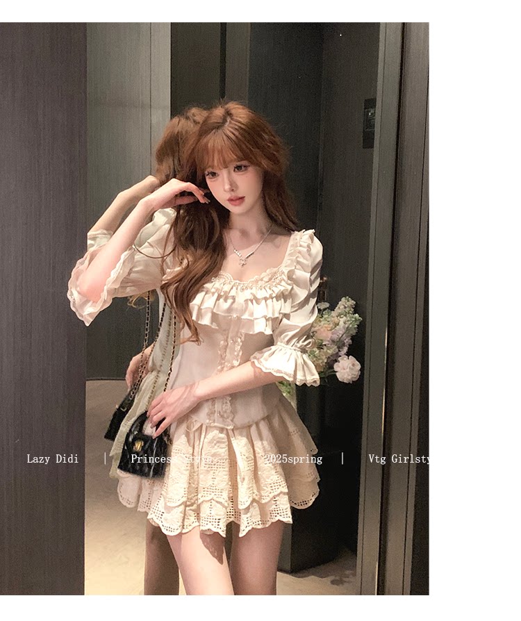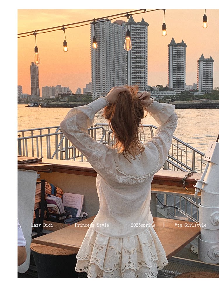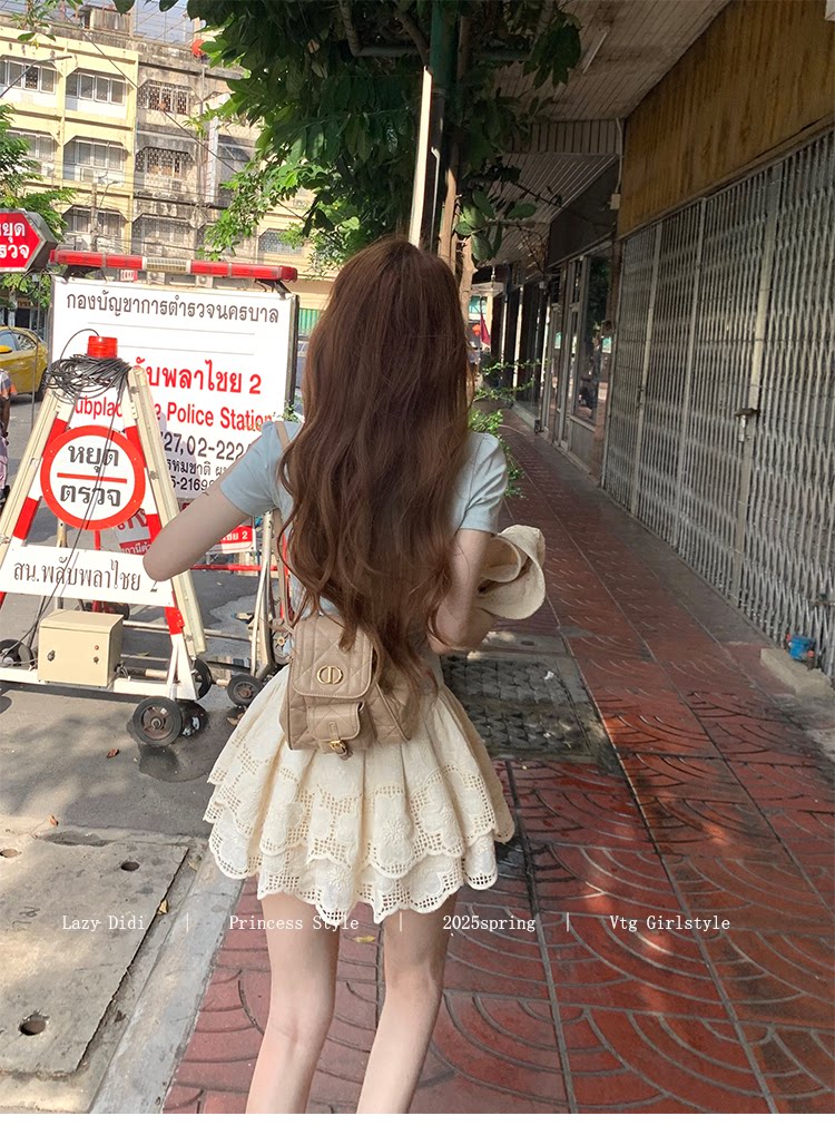 Lazy Didi Midsummer Sea Breeze Southern France 5m Embroidered Cotton Skirt Waist-Cinching Heavy Craft Cake Skirt Puffy Skirt