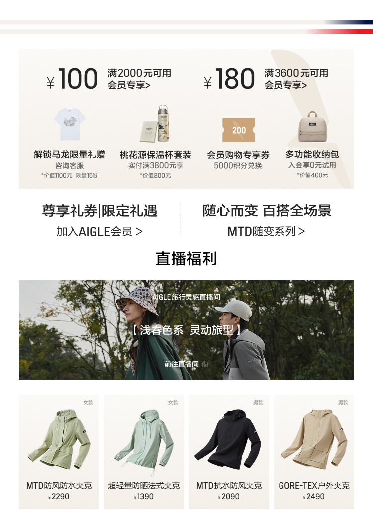 Aigle Men's Jacket Gore-Tex Functional Fabric Windproof Jacket Breathable Outdoor Jacket