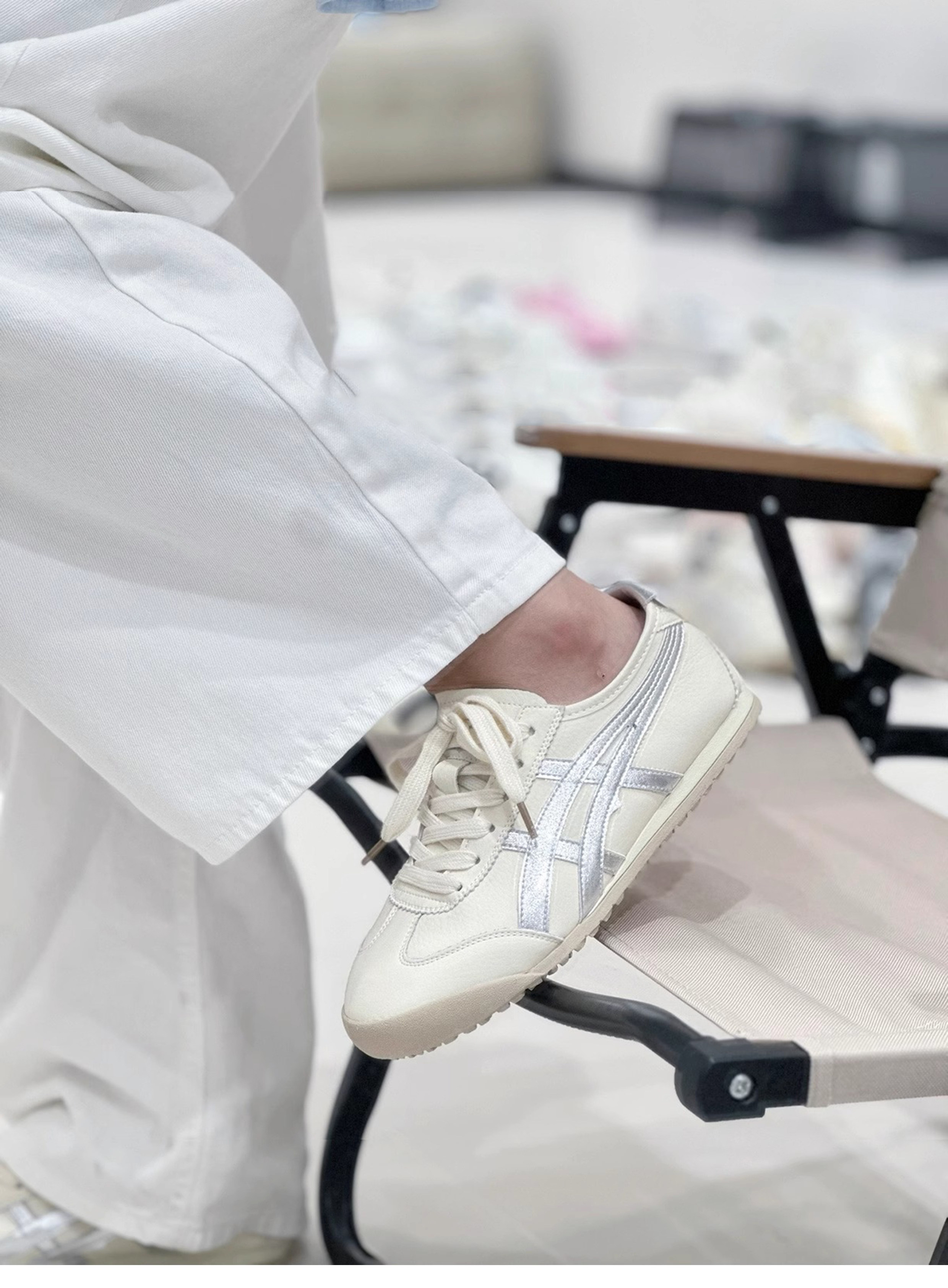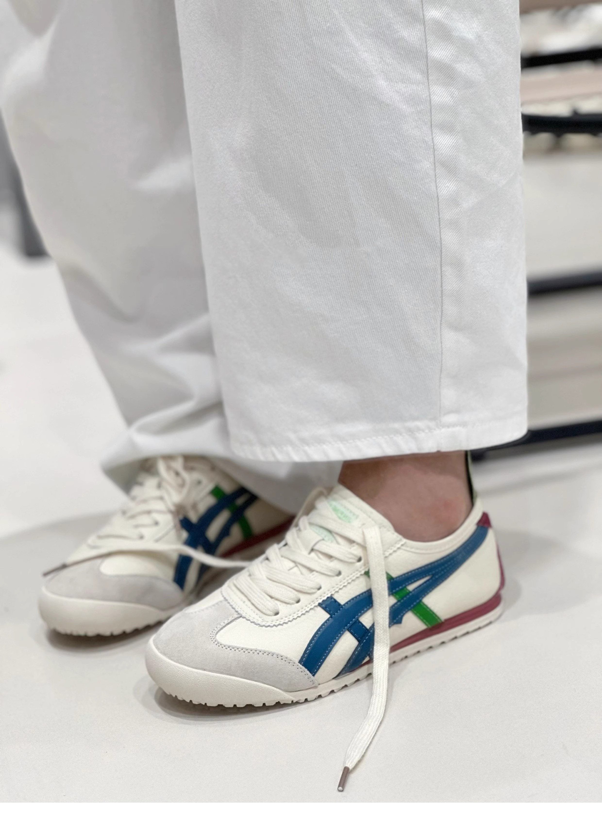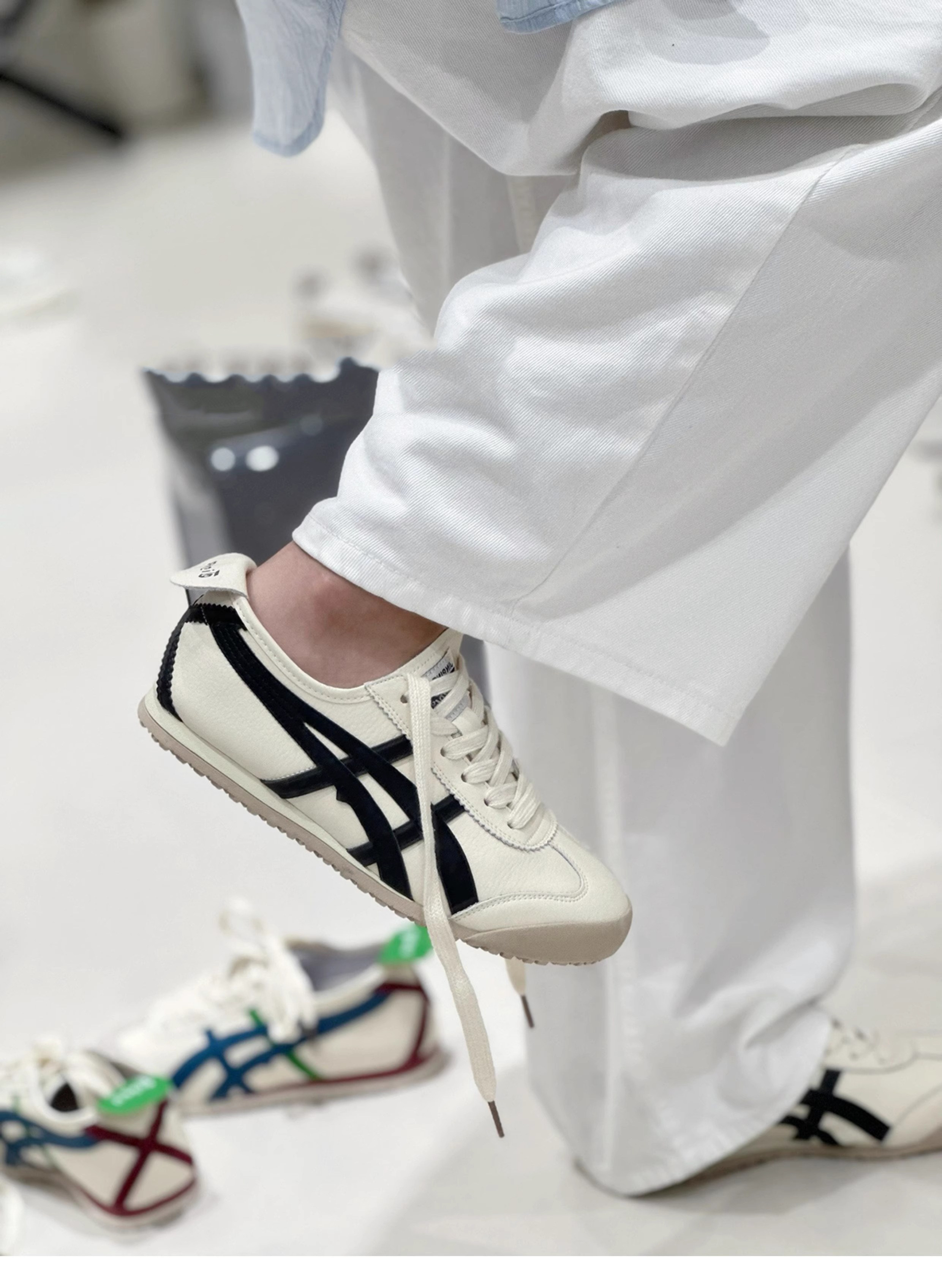Sanli Color-Blocked Flat Training Shoes for Women 2026 New Genuine Leather Thin-Soled Slip-On Sneakers Casual White Shoes Trendy
