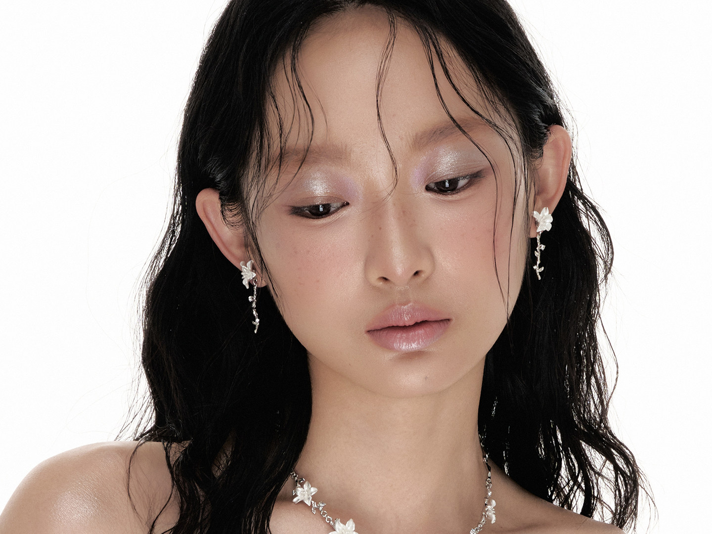 Sumiyaki Pale Whisper Series Pure White Cherry Blossom Necklace Niche Design Black and White Flower Dark Black Clavicle Chain