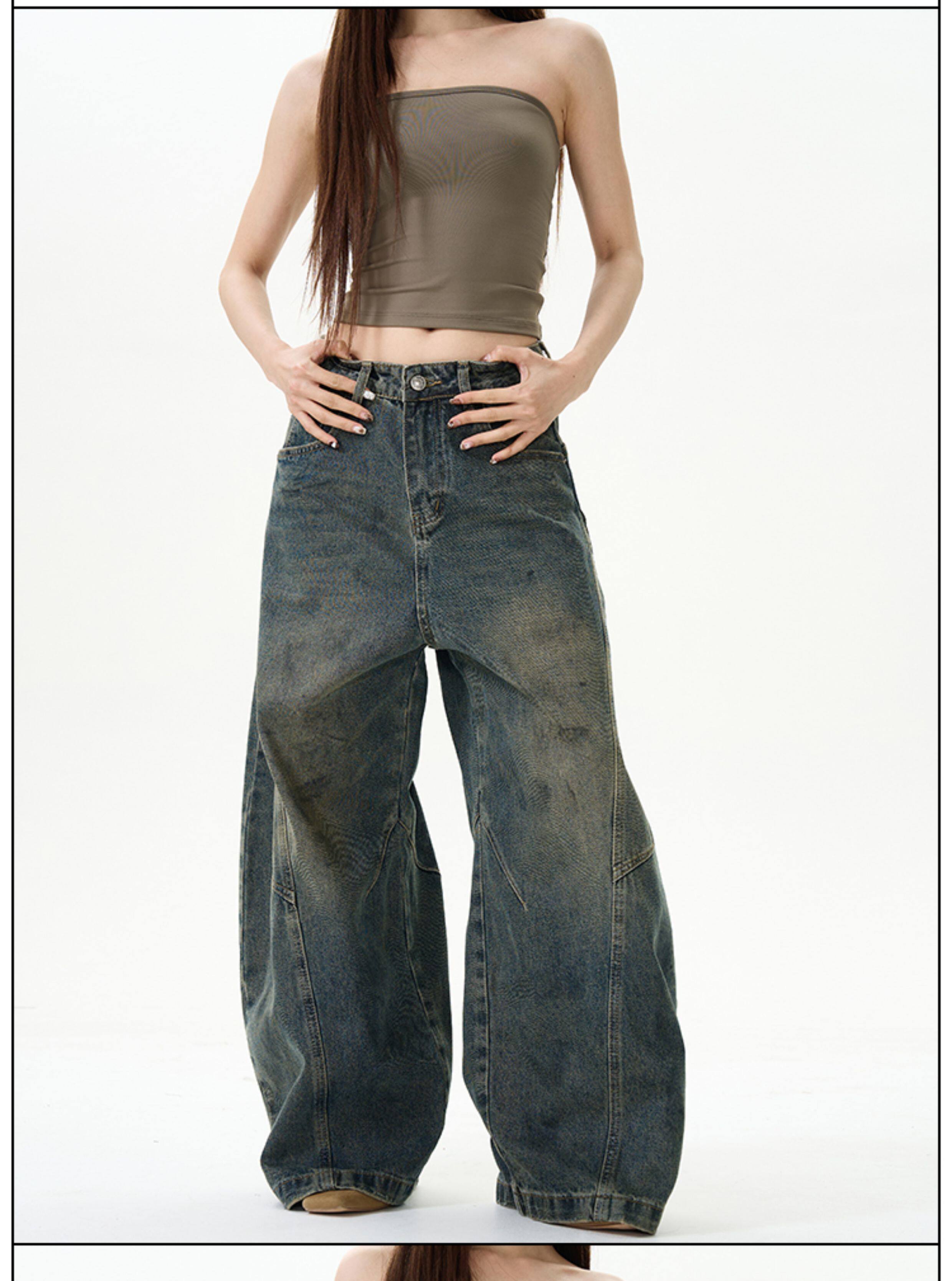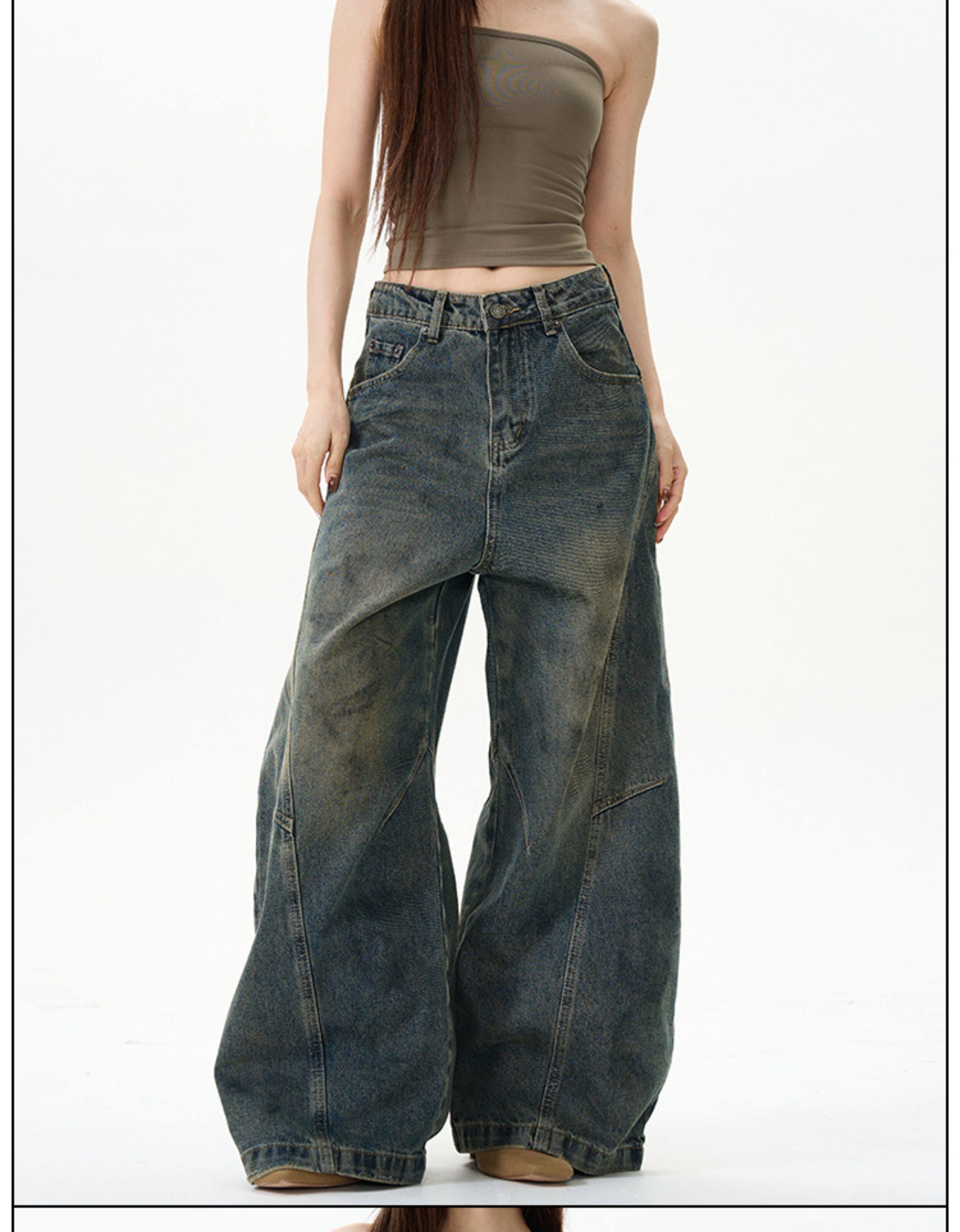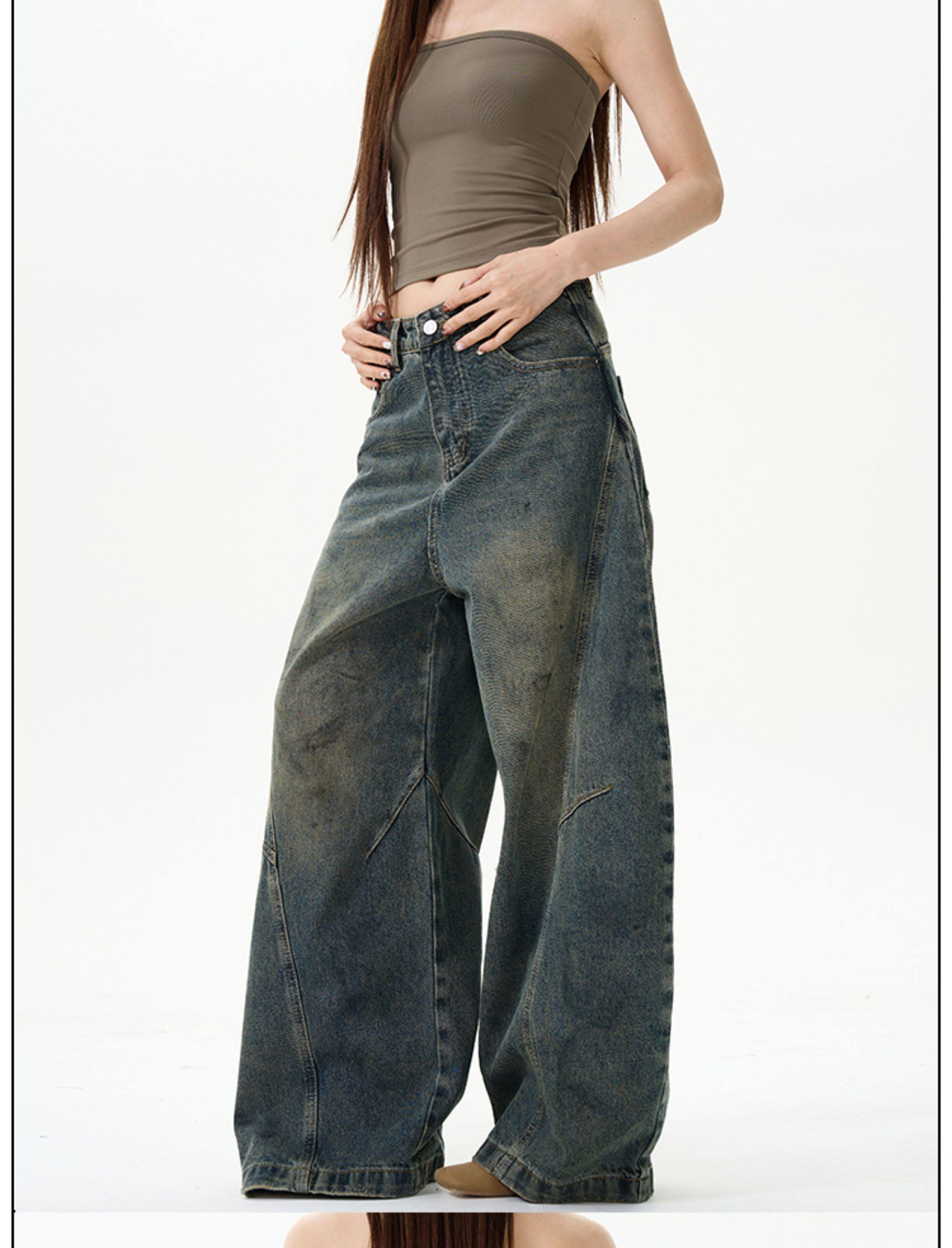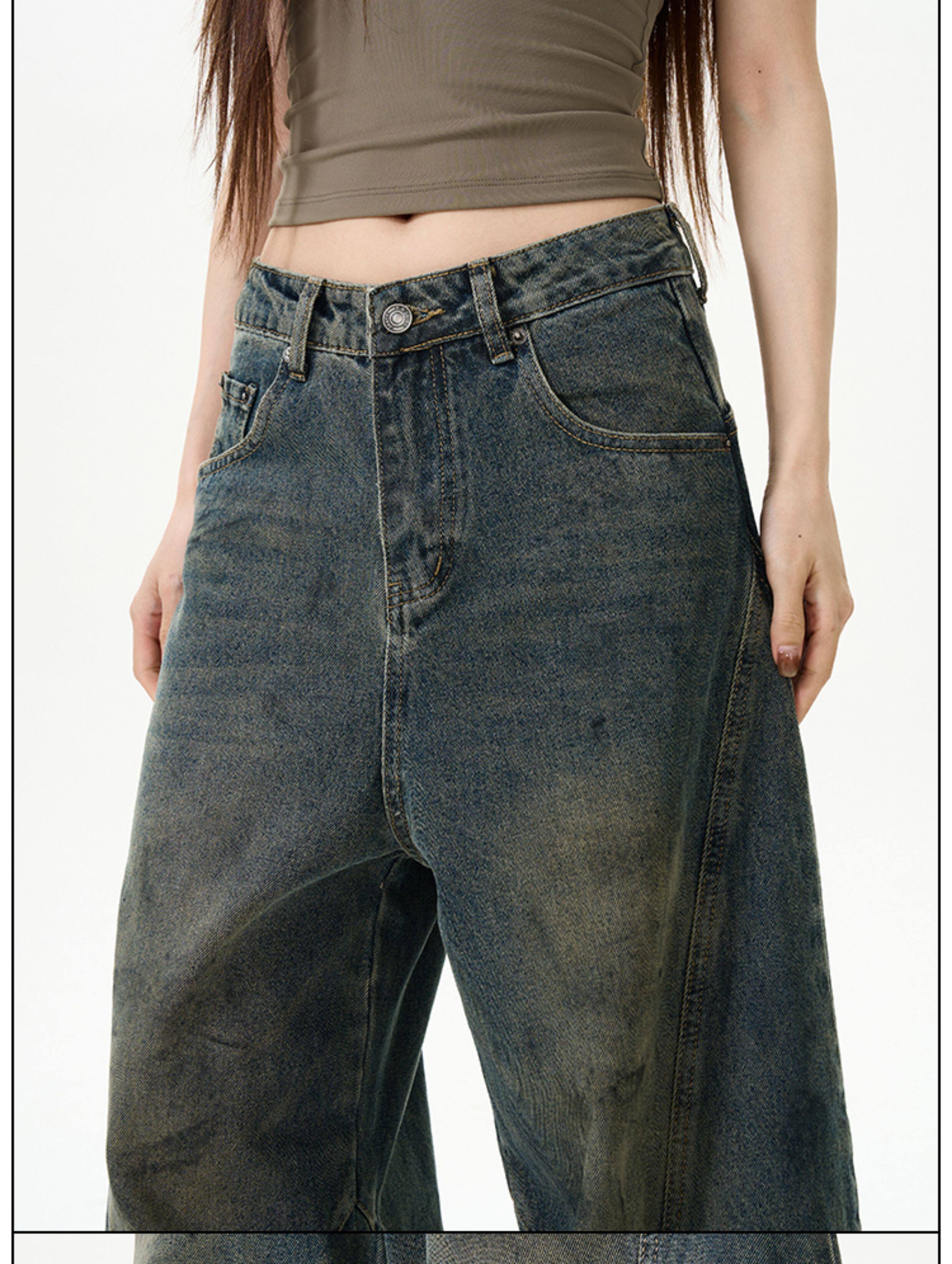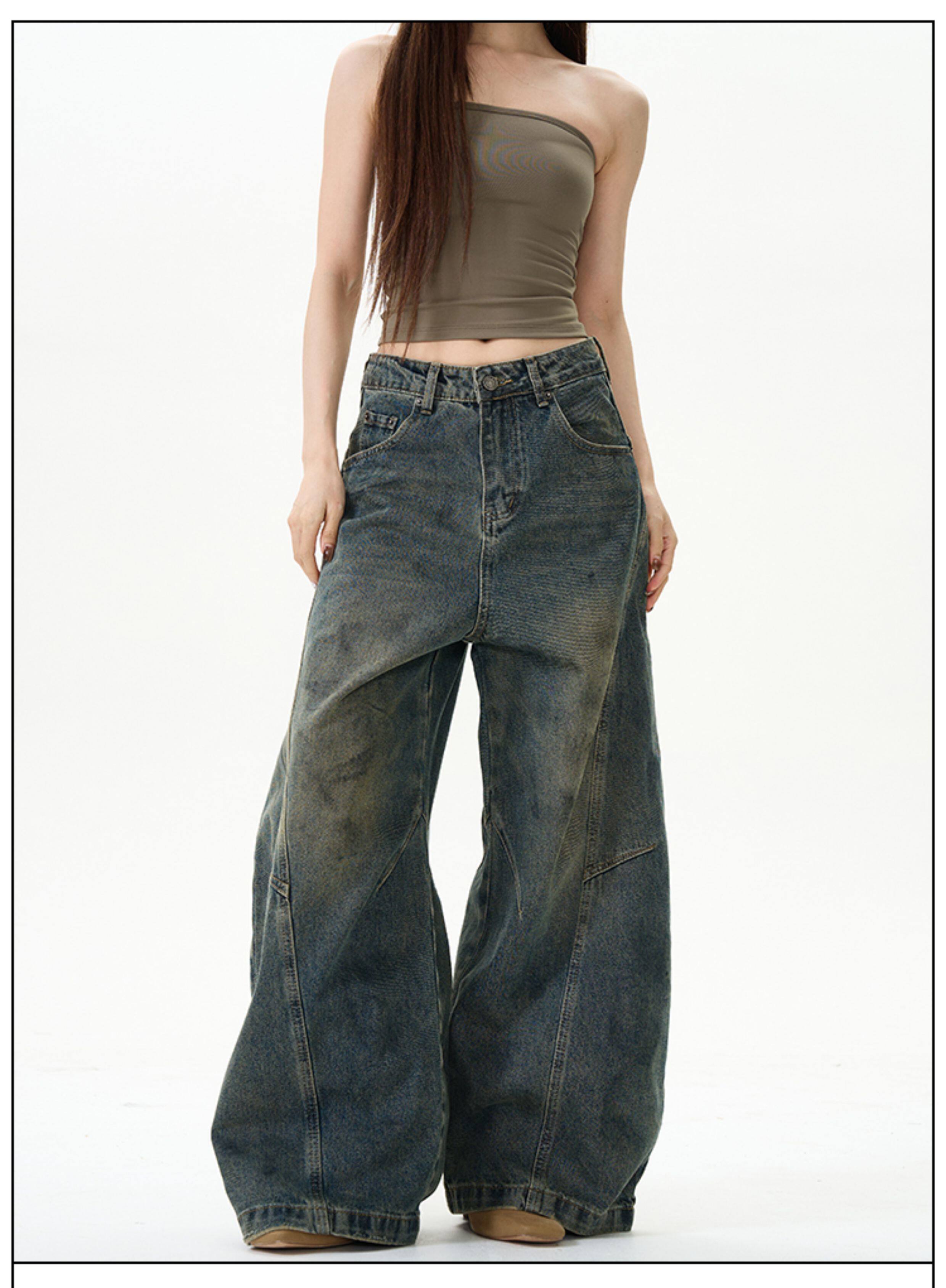 Tailang's Shop American-Style Splatter Ink Curved Knife Pants Men's Trendy Brand Loose High Street Cool Couple Jeans Trendy