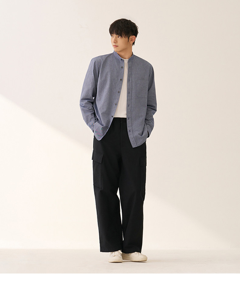 Muji Men's Washed Oxford Stand Collar Long Sleeve Shirt Men's Shirt Men's Winter Pure Cotton