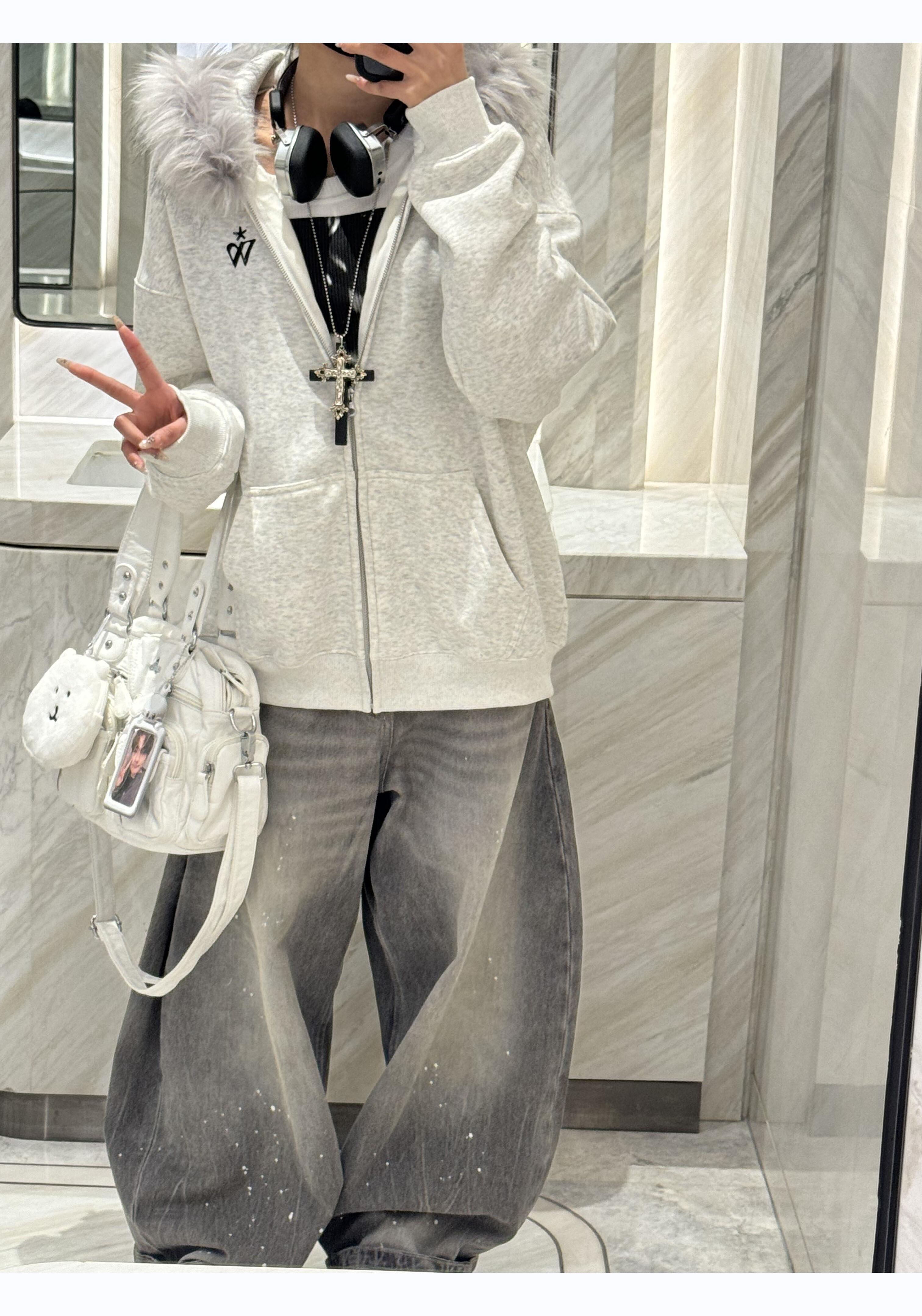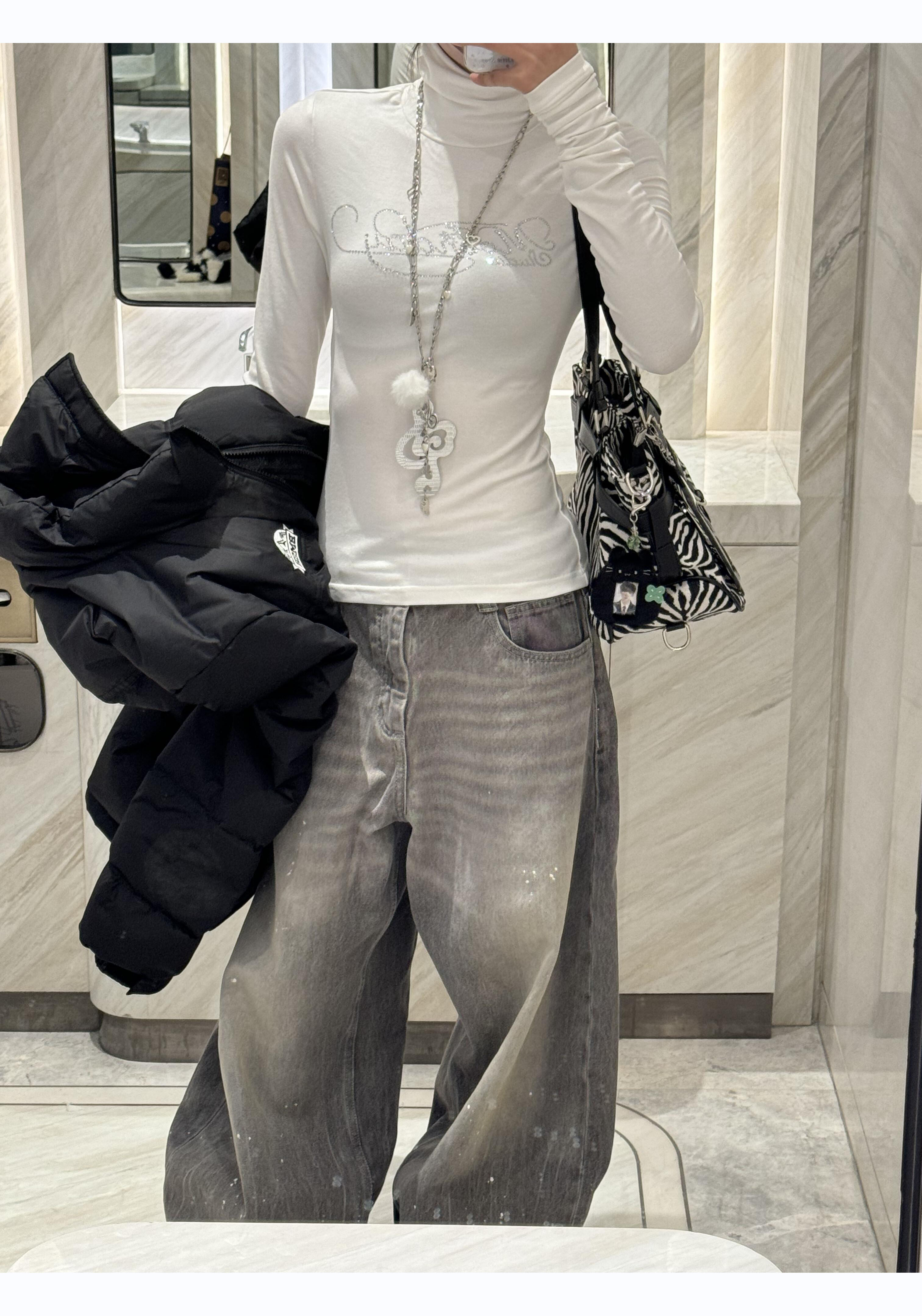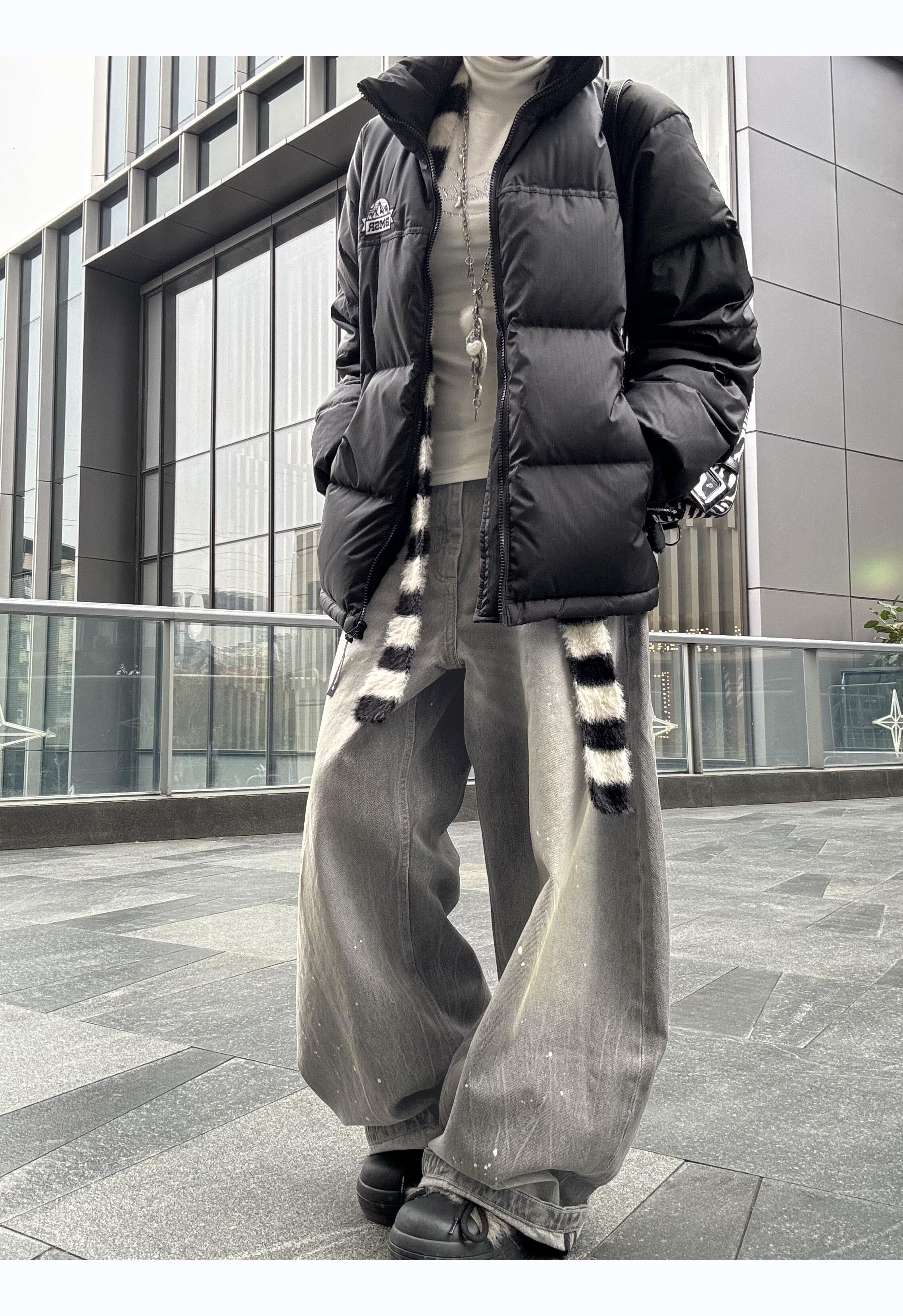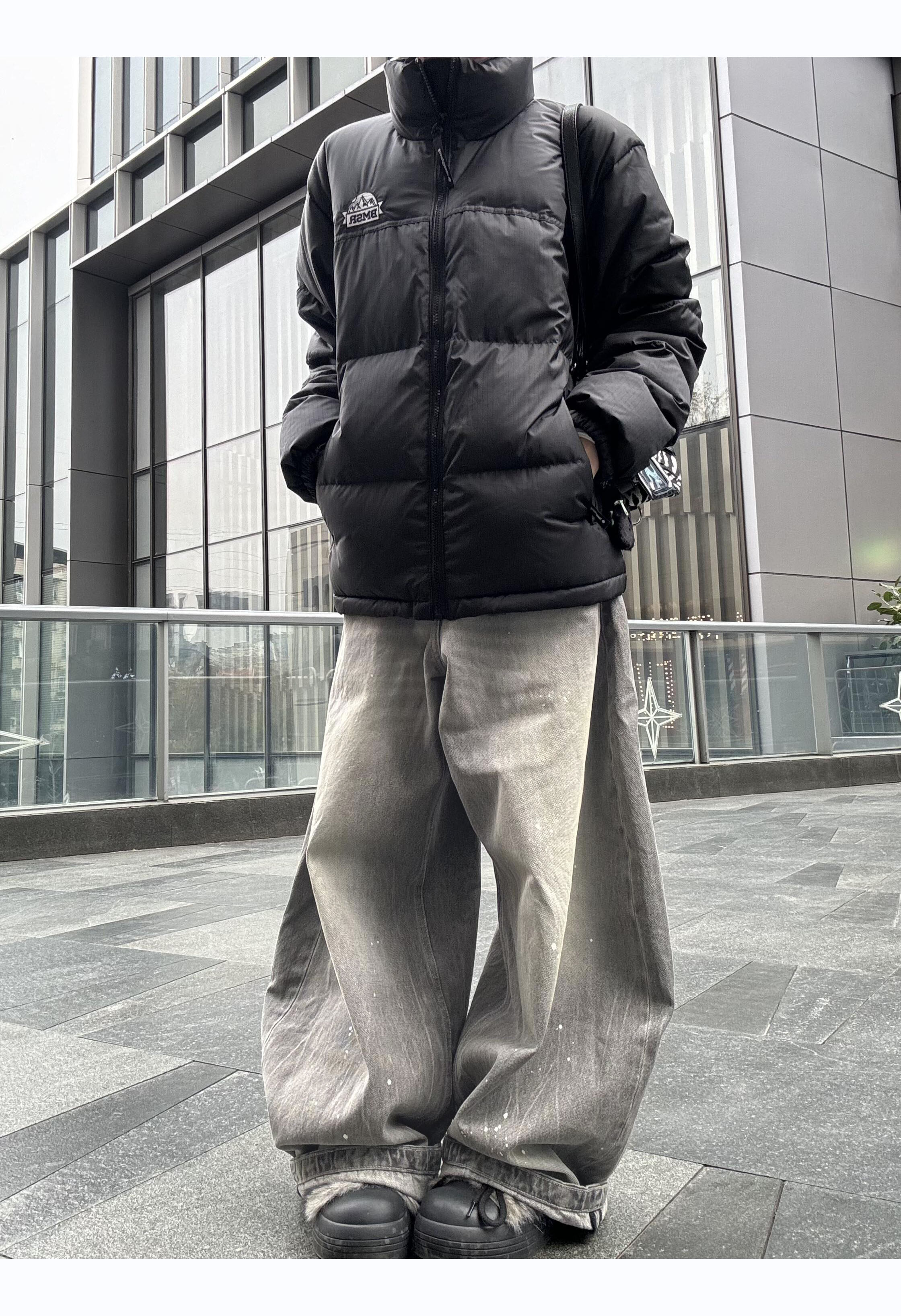 American Retro Washed Gray Distressed Splatter Denim Jeans for Men and Women, High Street Cool Casual Loose Wide-Leg Scimitar Pants