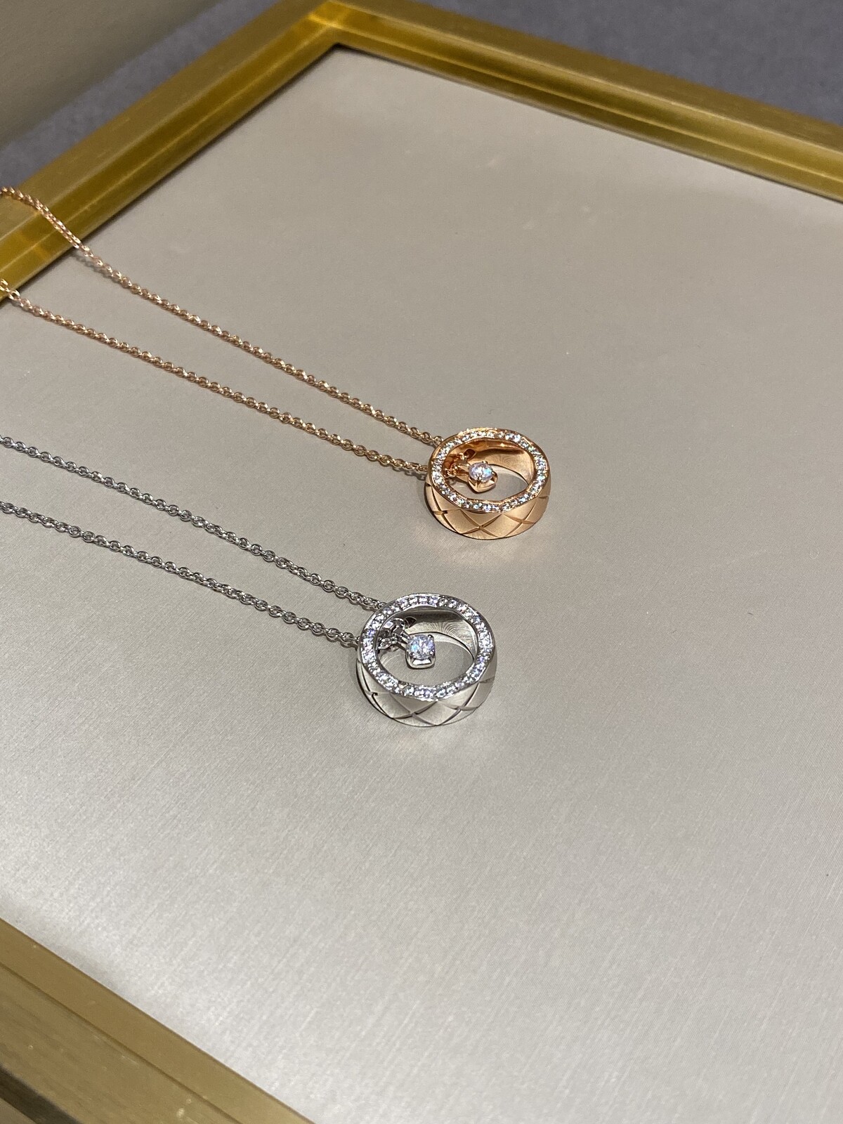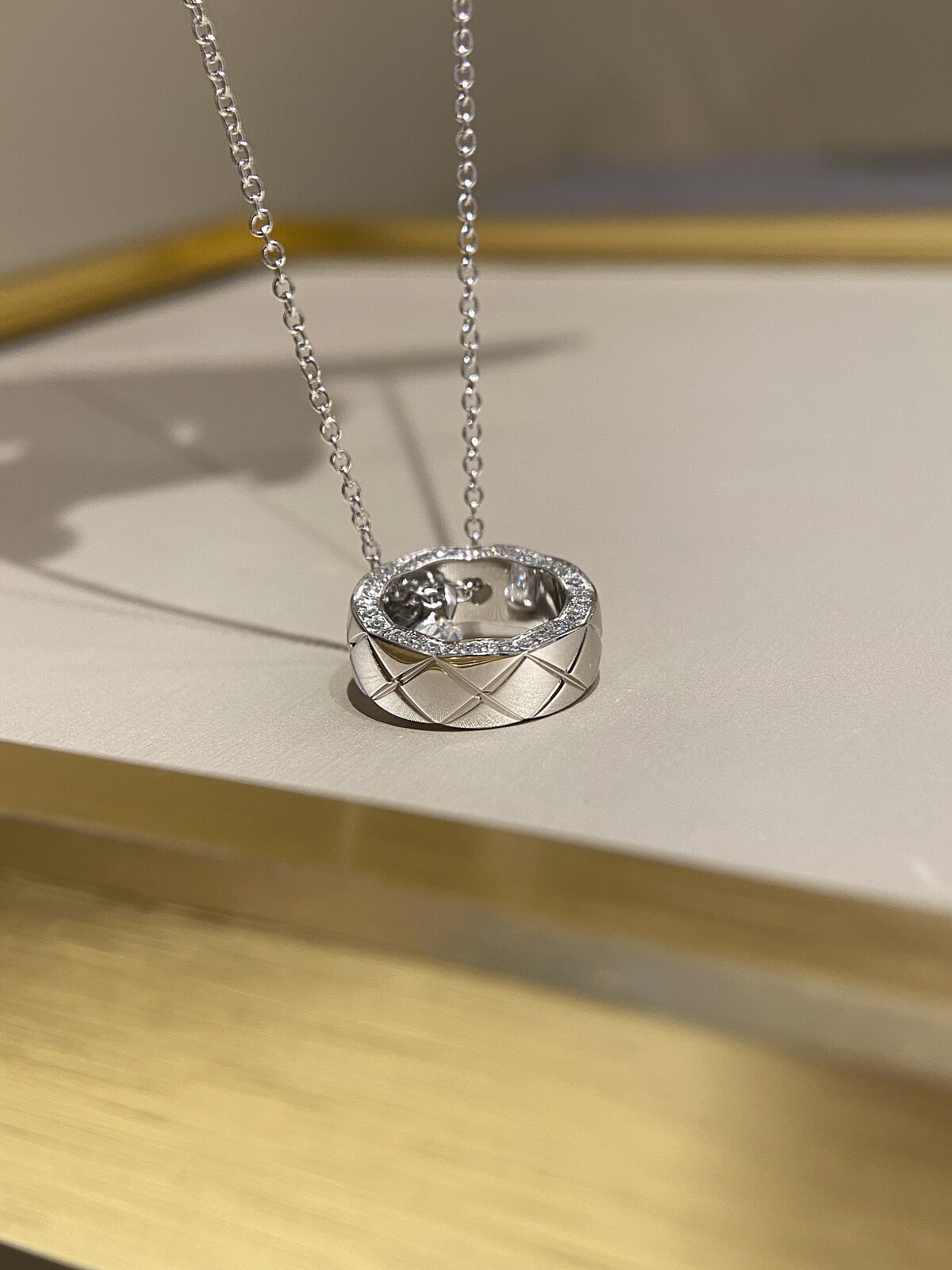 Diamond-Shaped Circle Ring Necklace 925 Sterling Silver Chain Cnc Version Light Luxury High-End Chanel Style Couple Model