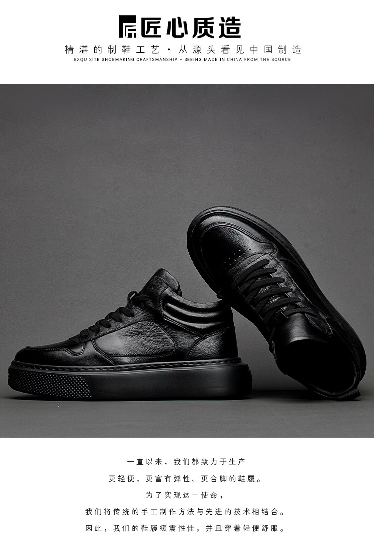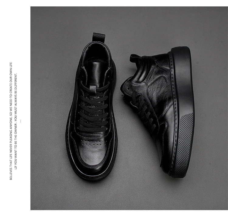 Autumn and Winter Genuine Leather Casual High-Top Leather Shoes for Men, Korean Style Trendy Short Boots, Thick-Soled Lightweight Mid-Top Boots, Pure Leather Work Boots