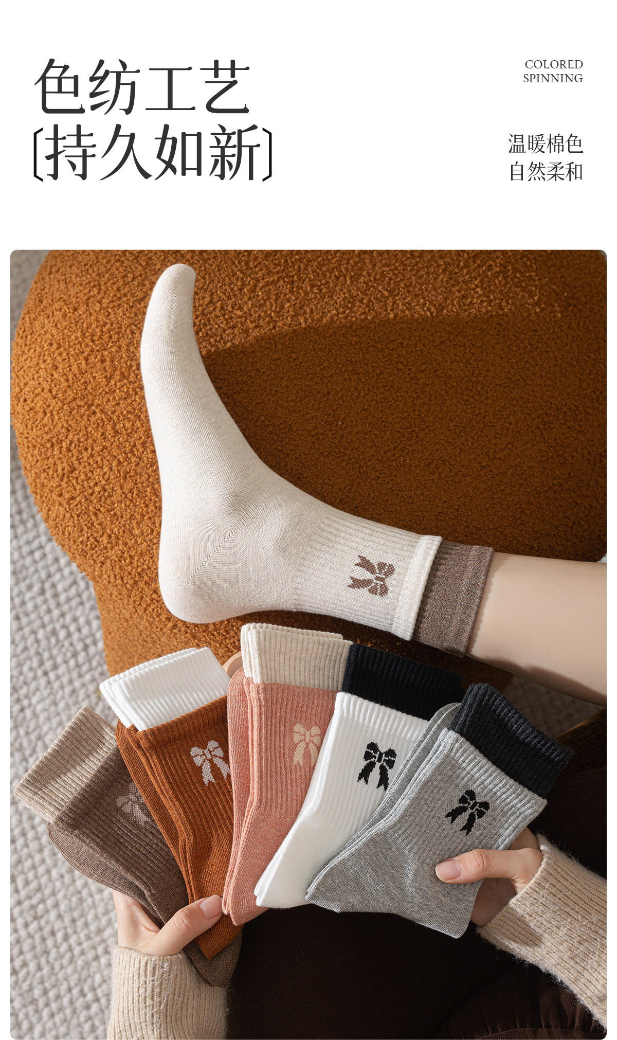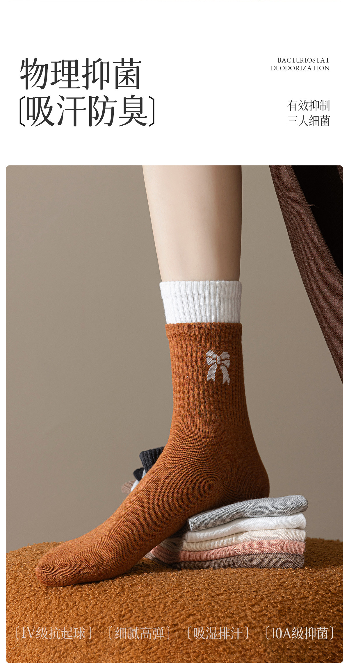 Women's Pure Cotton Socks, Spring and Autumn Style, 2026 New Popular Model, Anti-Odor, Antibacterial, Double Ribbed, Spring Mid-Calf Long Socks for Women