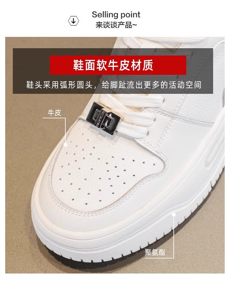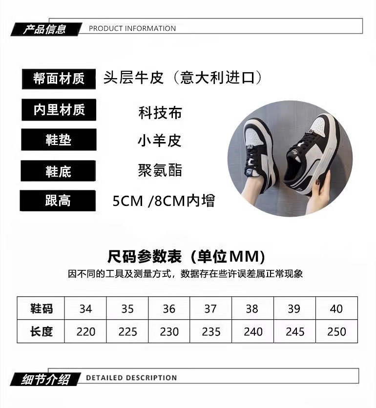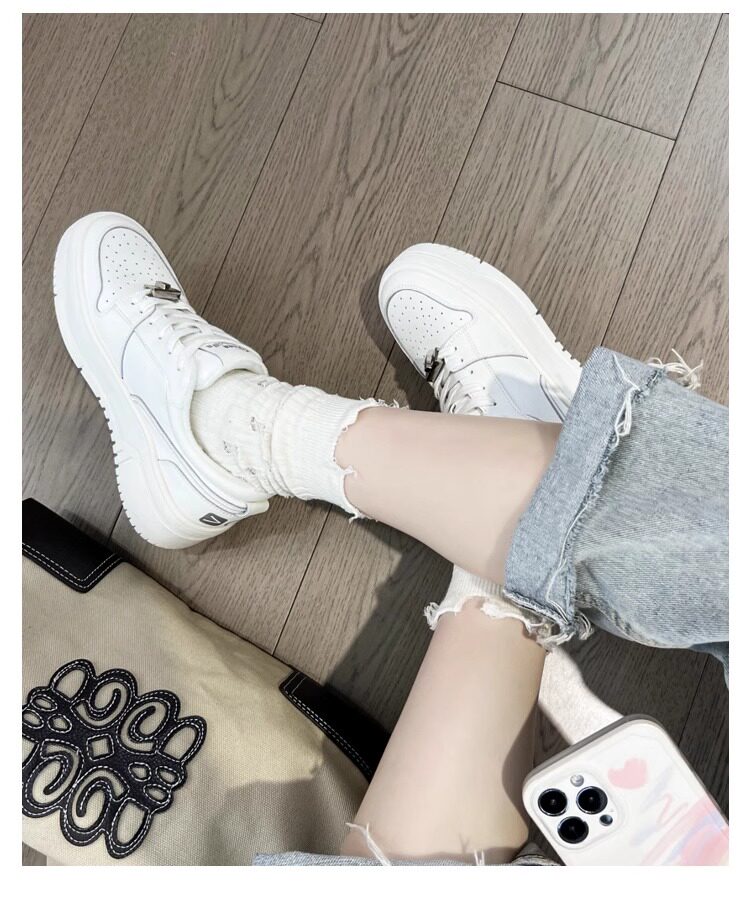 Hong Kong Genuine Leather Thick-Soled Height-Increasing White Sneakers for Women 2026 New Spring and Autumn Casual Sports Shoes Panda Shoes Skate Shoes