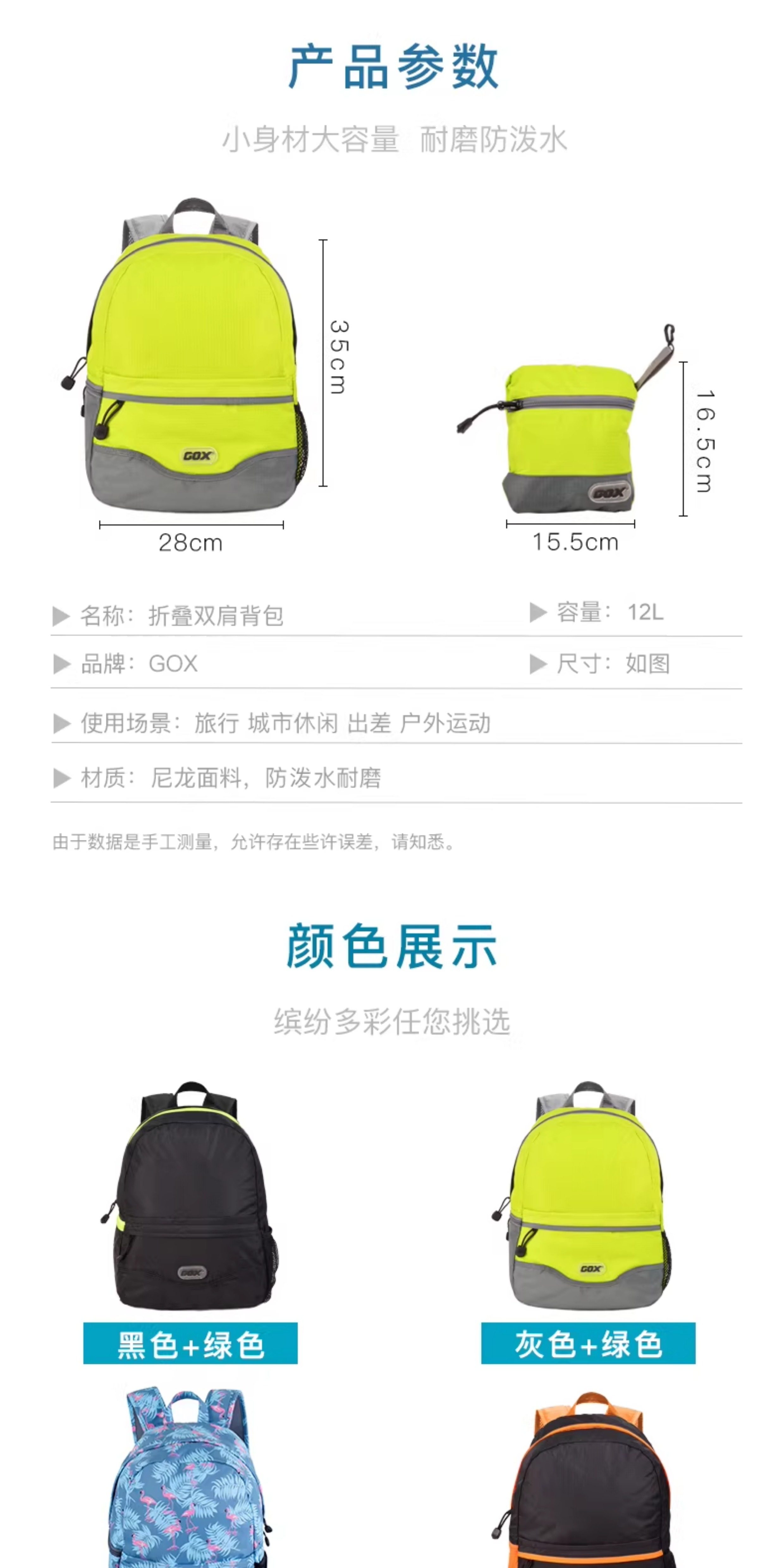 Gox Multifunctional Travel Backpack Women's Ultra-Light Skin Bag School Bag Mountaineering Bag Universal Outdoor Hiking Foldable Bag