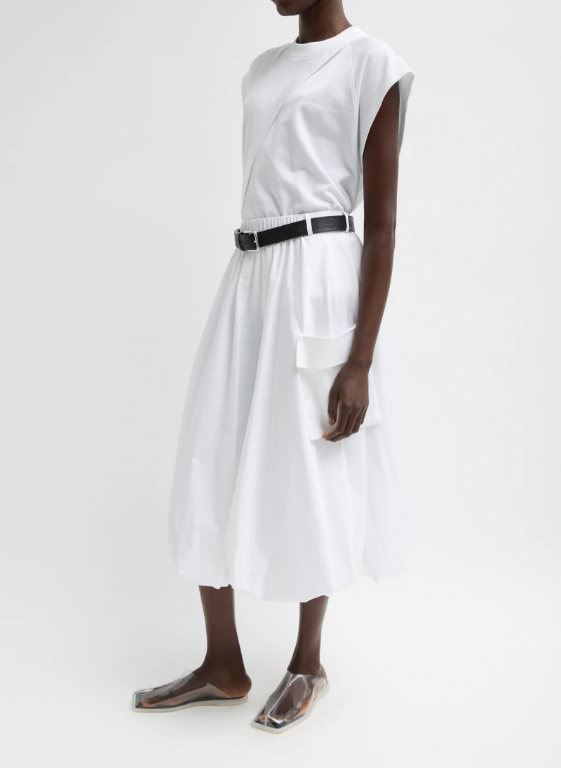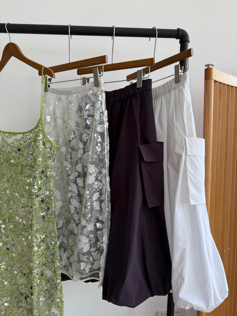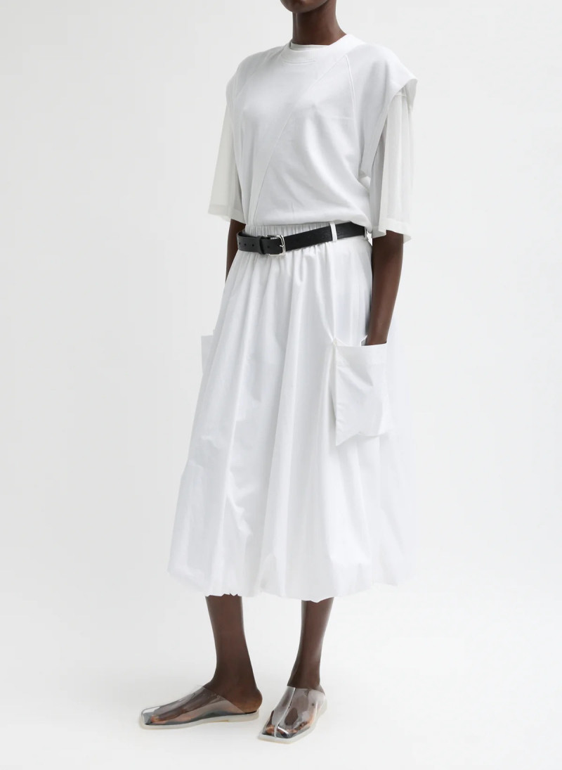 经典A字轮廓流畅自然,松紧腰设计可中腰可高腰,非常好穿,我觉得tib1的下装单品都很厉害,看似挑人,其实怎么搭都时髦洋气,能盘活各种基础款上衣,有着不同气质冲突又和谐的感觉太有趣了,多了一份奢华和丰富性~