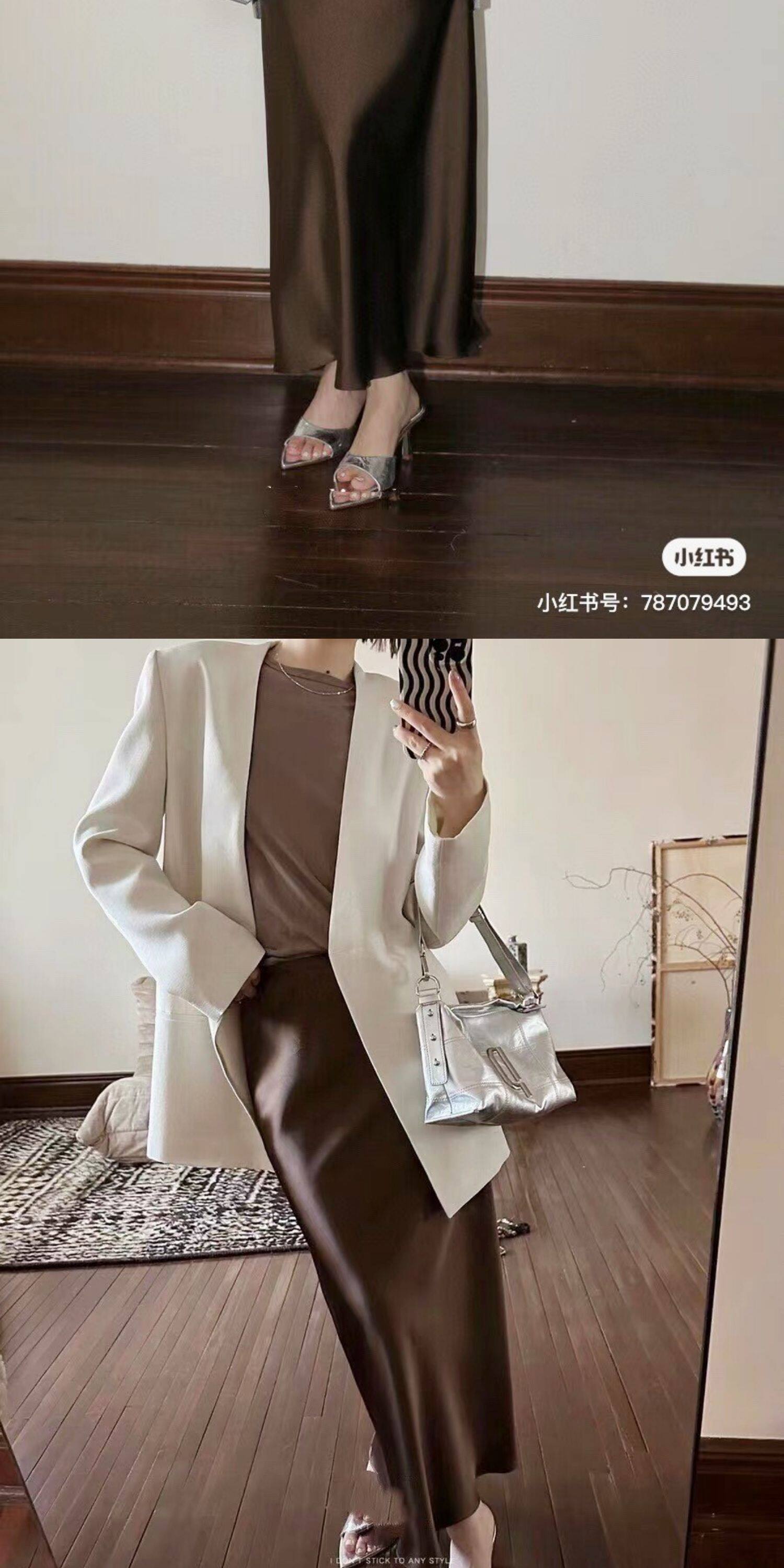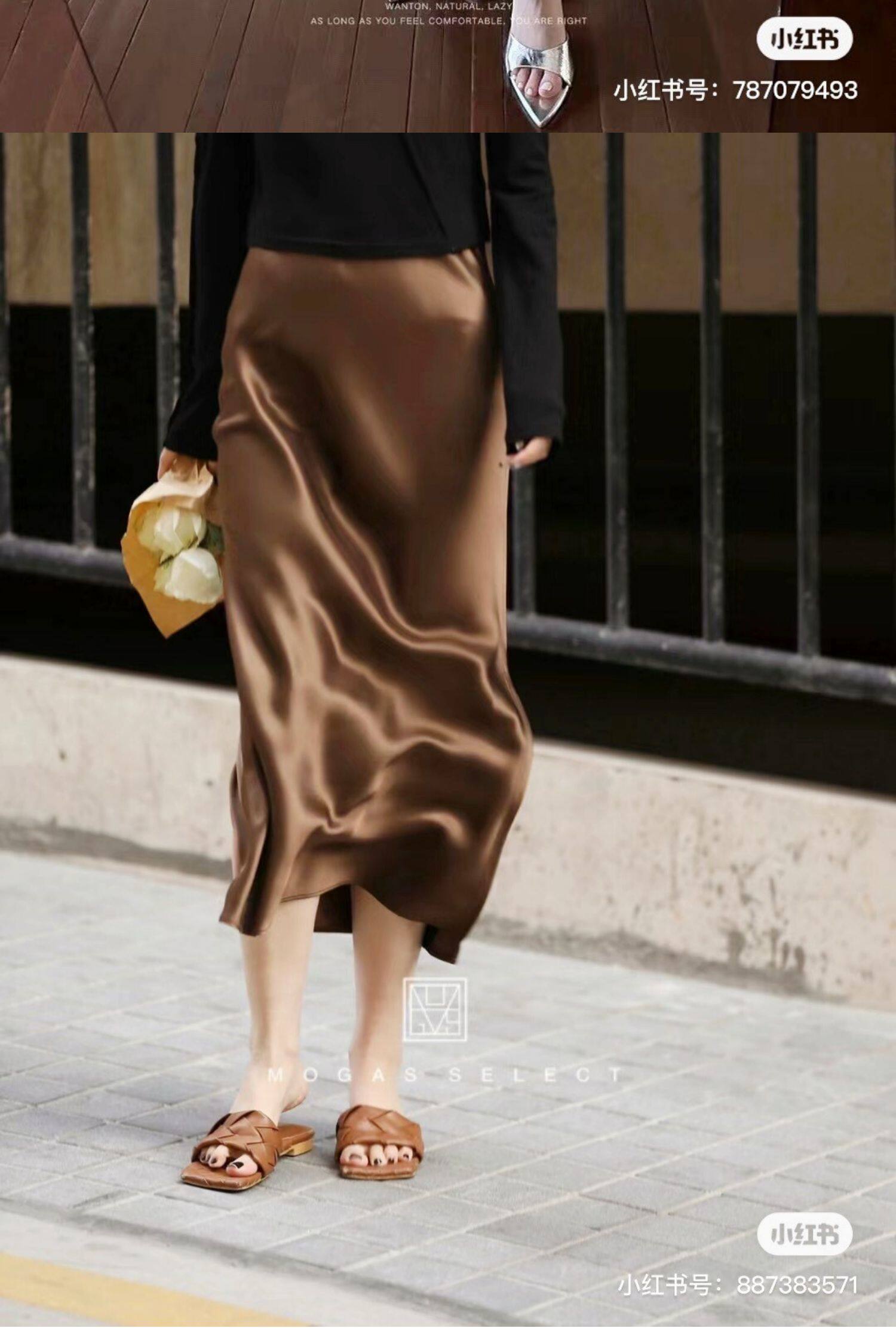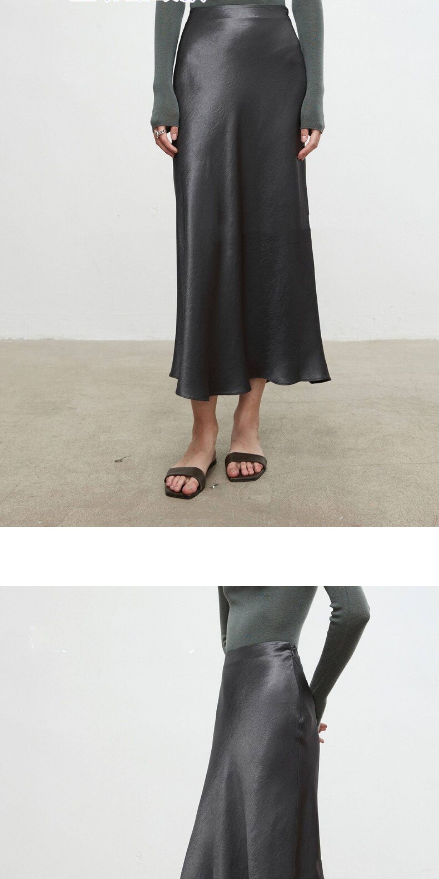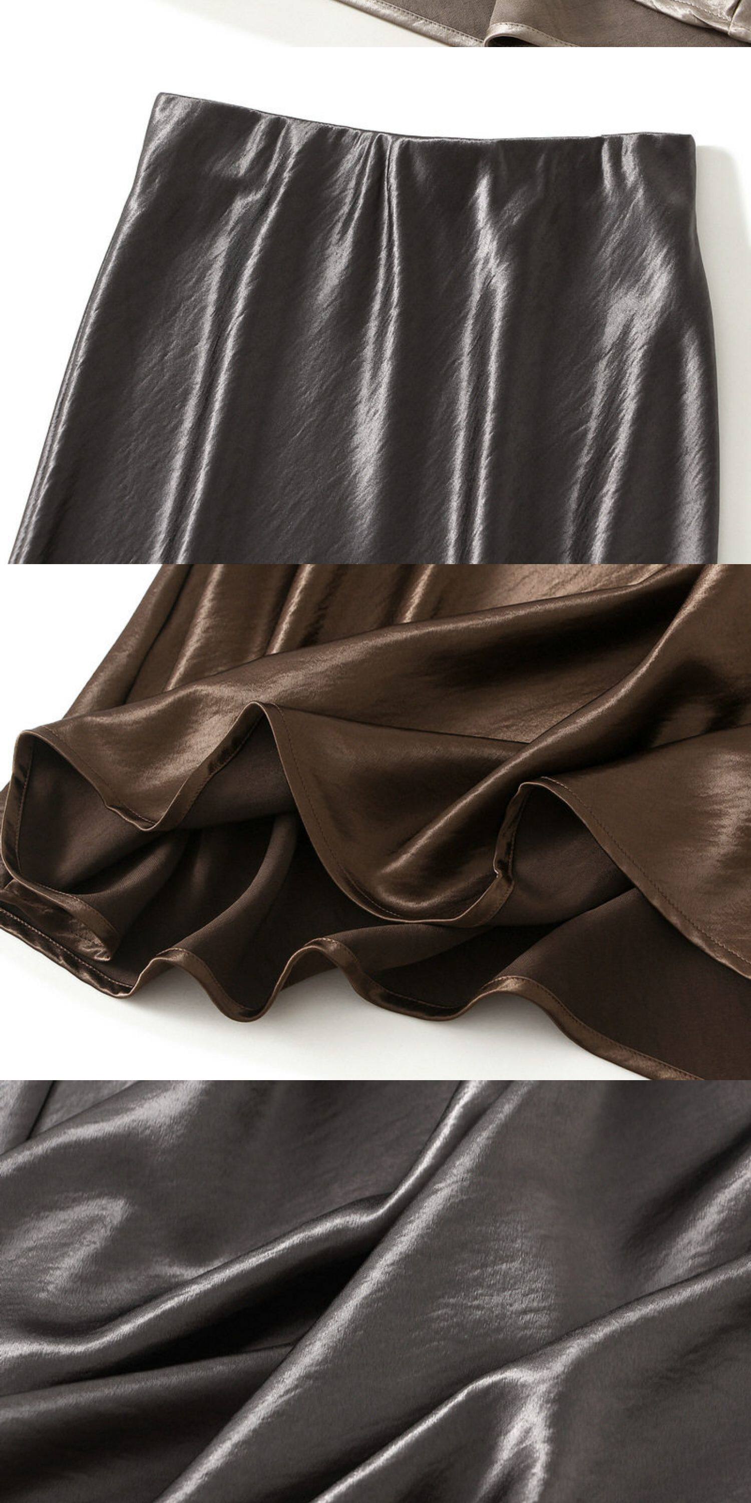Original Japanese Imported Satin Silk with a Silky Drape and Luster, Bias-Cut Slimming Half Skirt, Fishtail Skirt