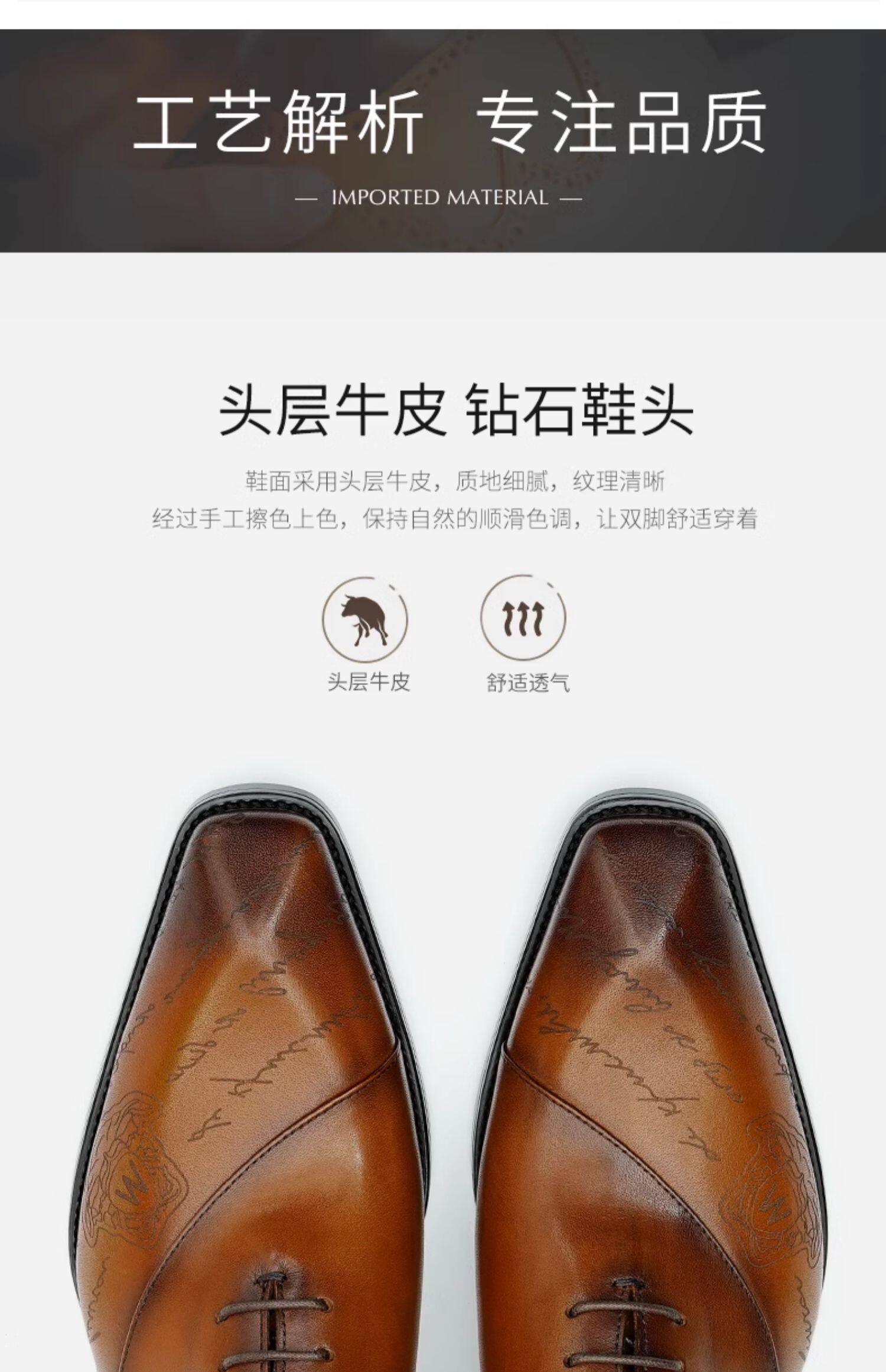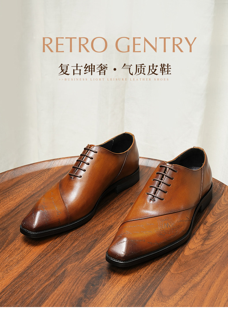 Handmade British Leather Shoes for Men, Genuine Leather Pointed Toe Business Formal Oxford Wedding Groom Shoes, High-End Genuine Leather Men's Shoes