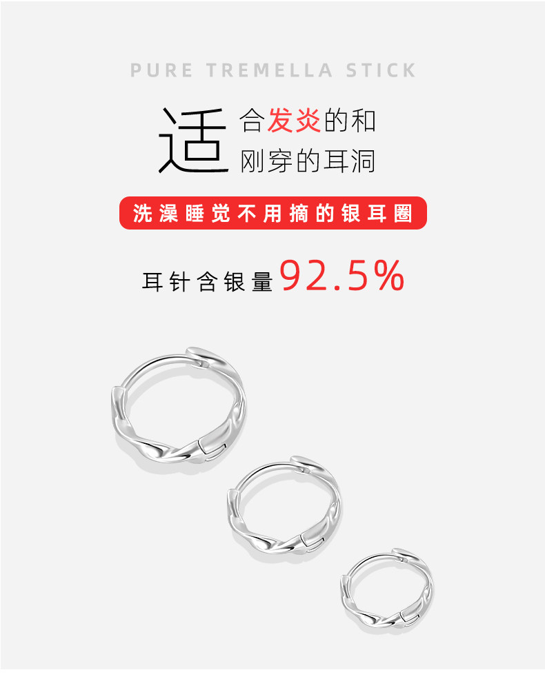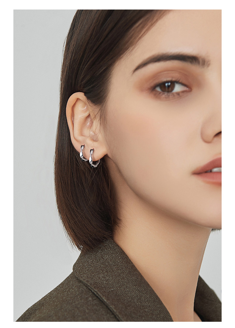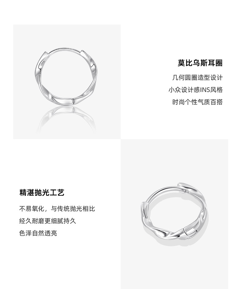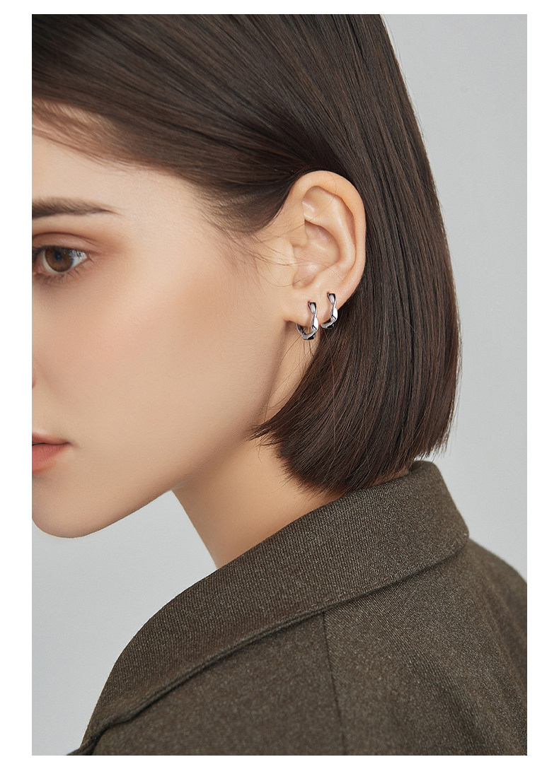 999 Pure Silver Mobius Earrings for Women, Ear Piercing Hoops, Ear Cuffs, Pure Silver Ear Studs, Plain Hoop Earrings