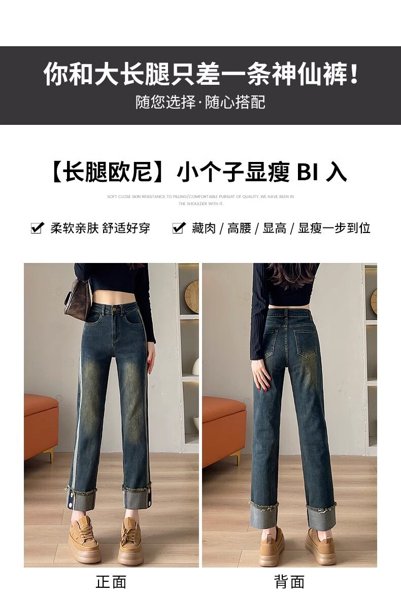 Recommended Popular Brand Items~ Straight-Leg Jeans for Women, High-Waisted, Baguette Style, Petite Size, Cropped, Slim-Fit Cigarette Pants