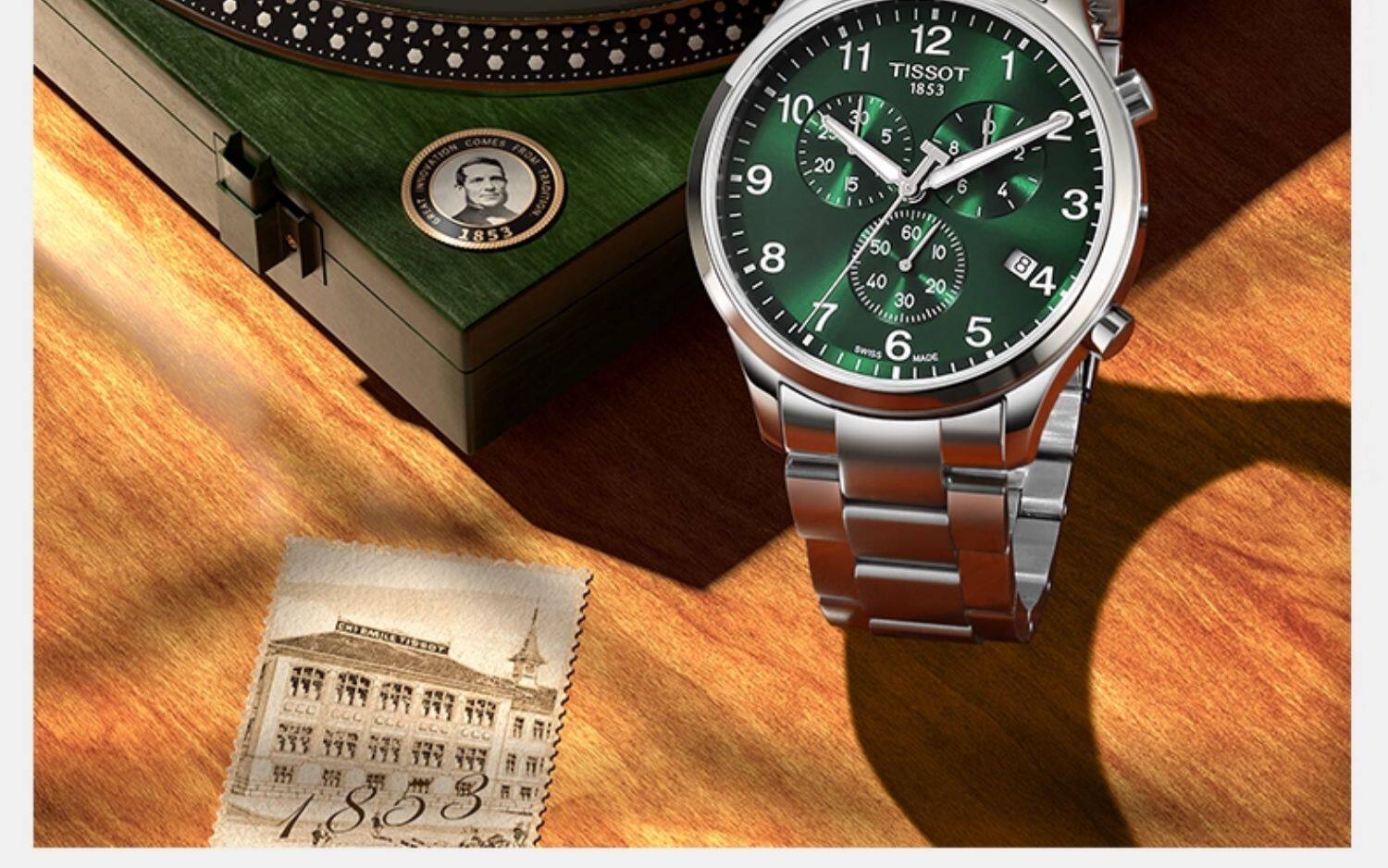 Tissot Official Genuine Speedy Series Green Dial Quartz Steel Band Watch for Men
