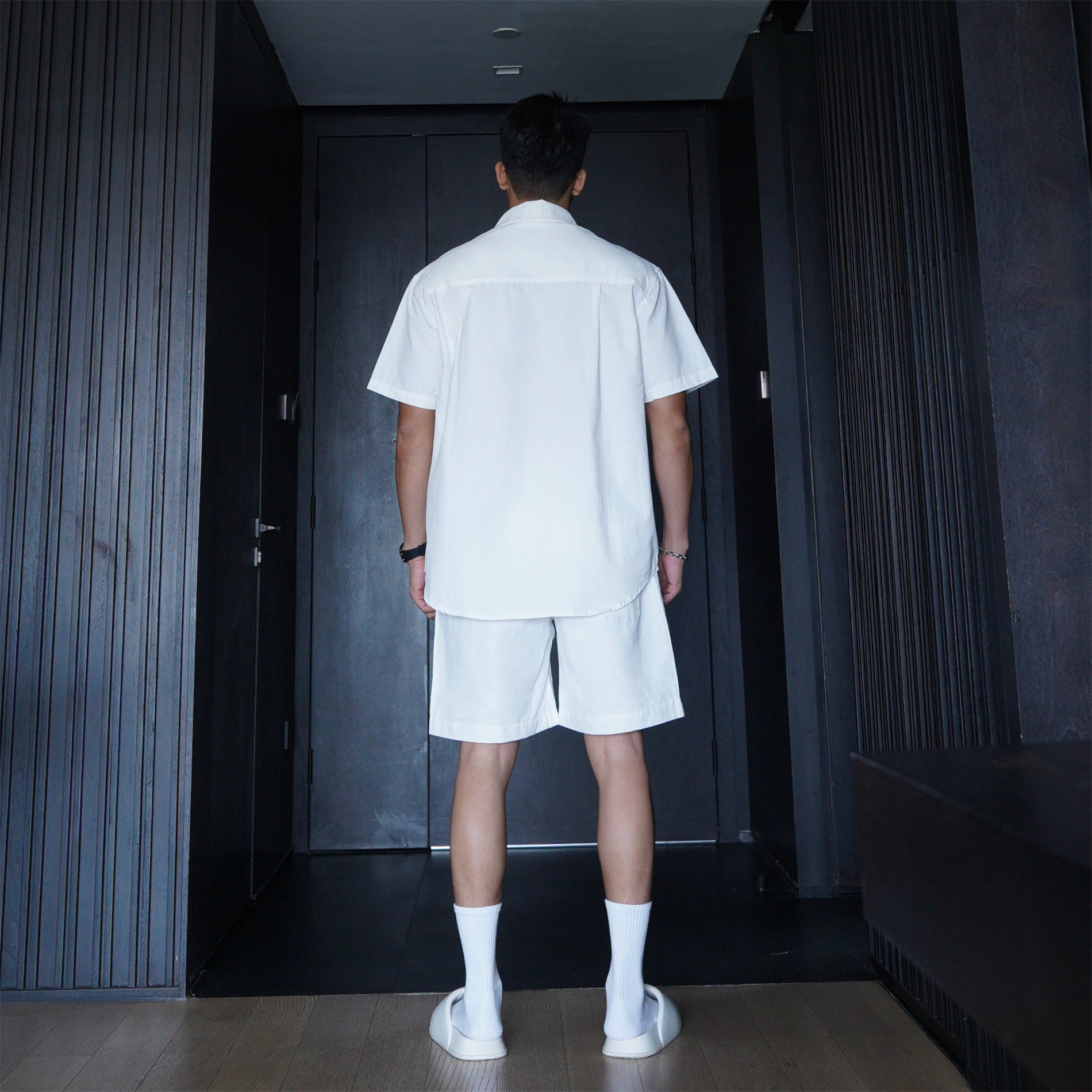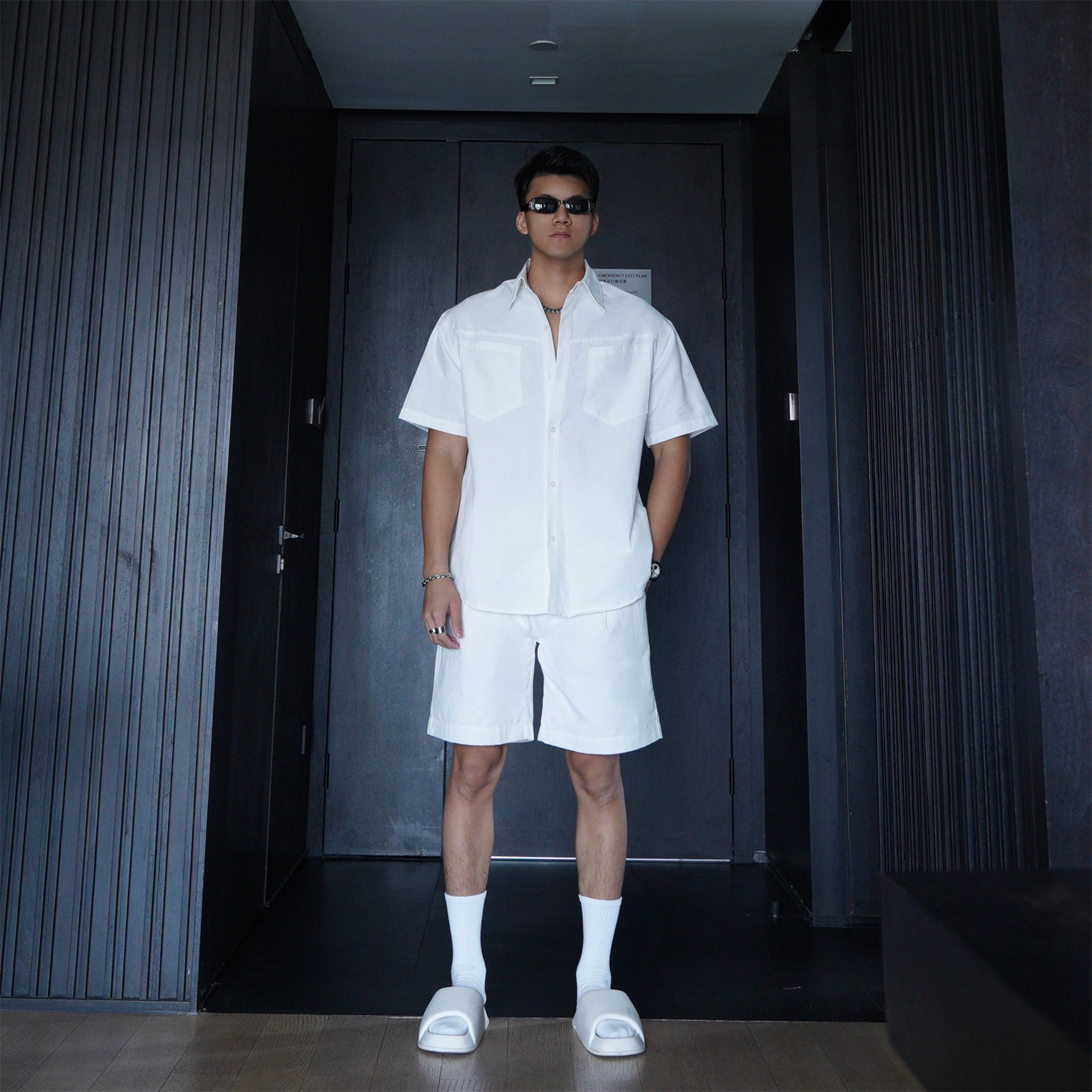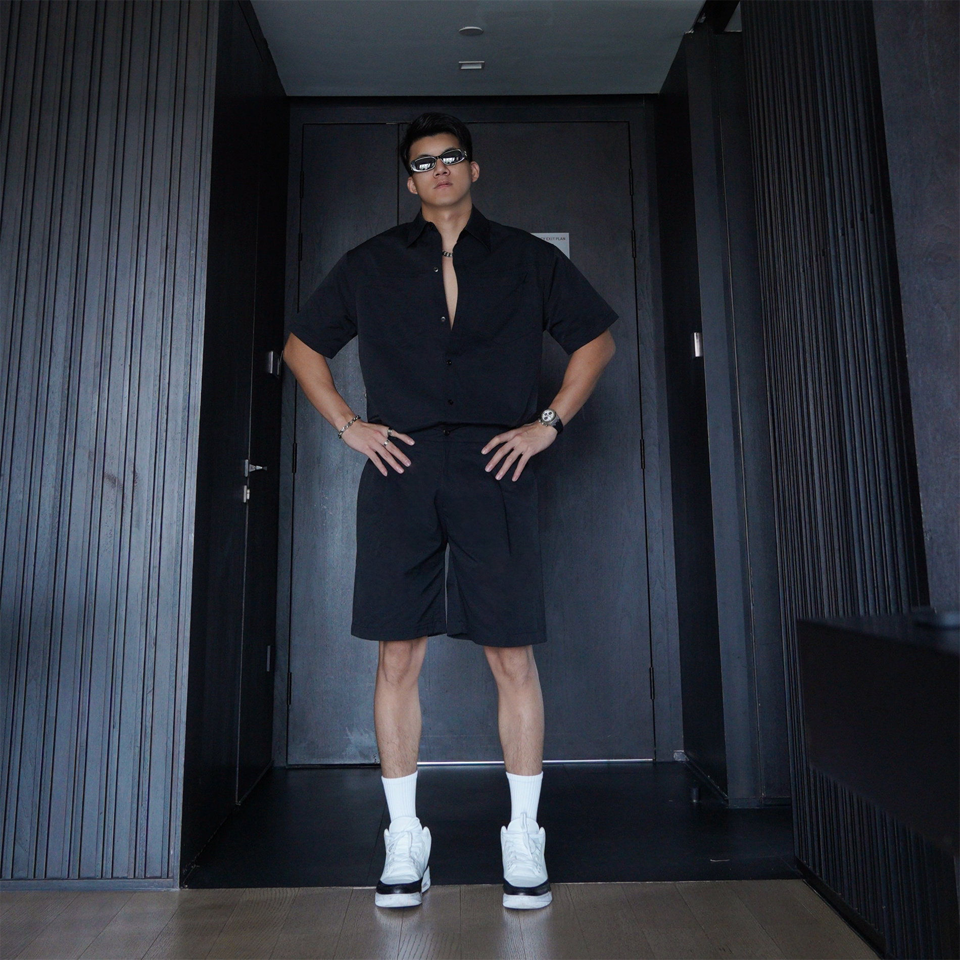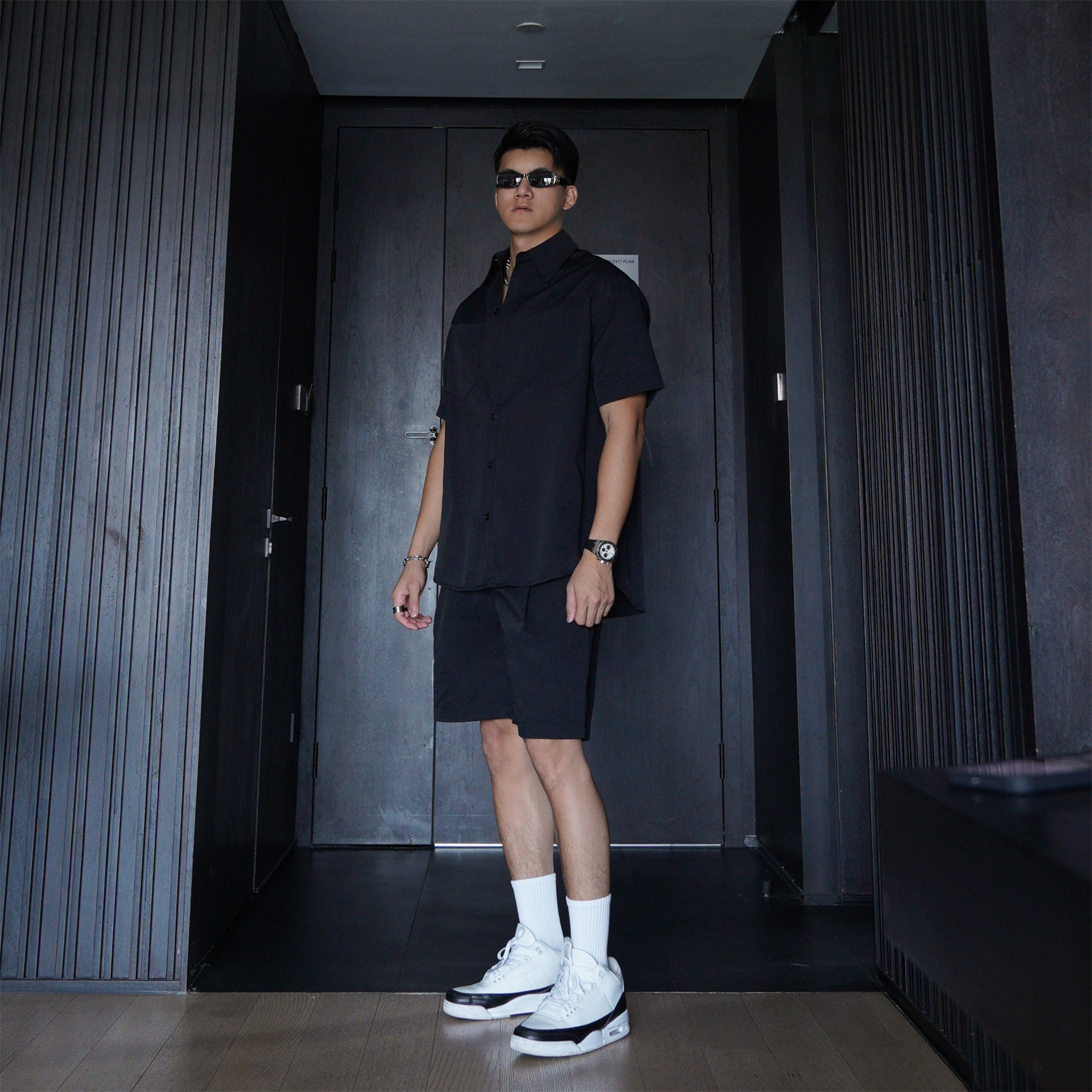 Jzd【Upper Body Looks Strong】American High Street Style Cool Fashion Set, Structured Loose Casual Short-Sleeve Shirt and Shorts