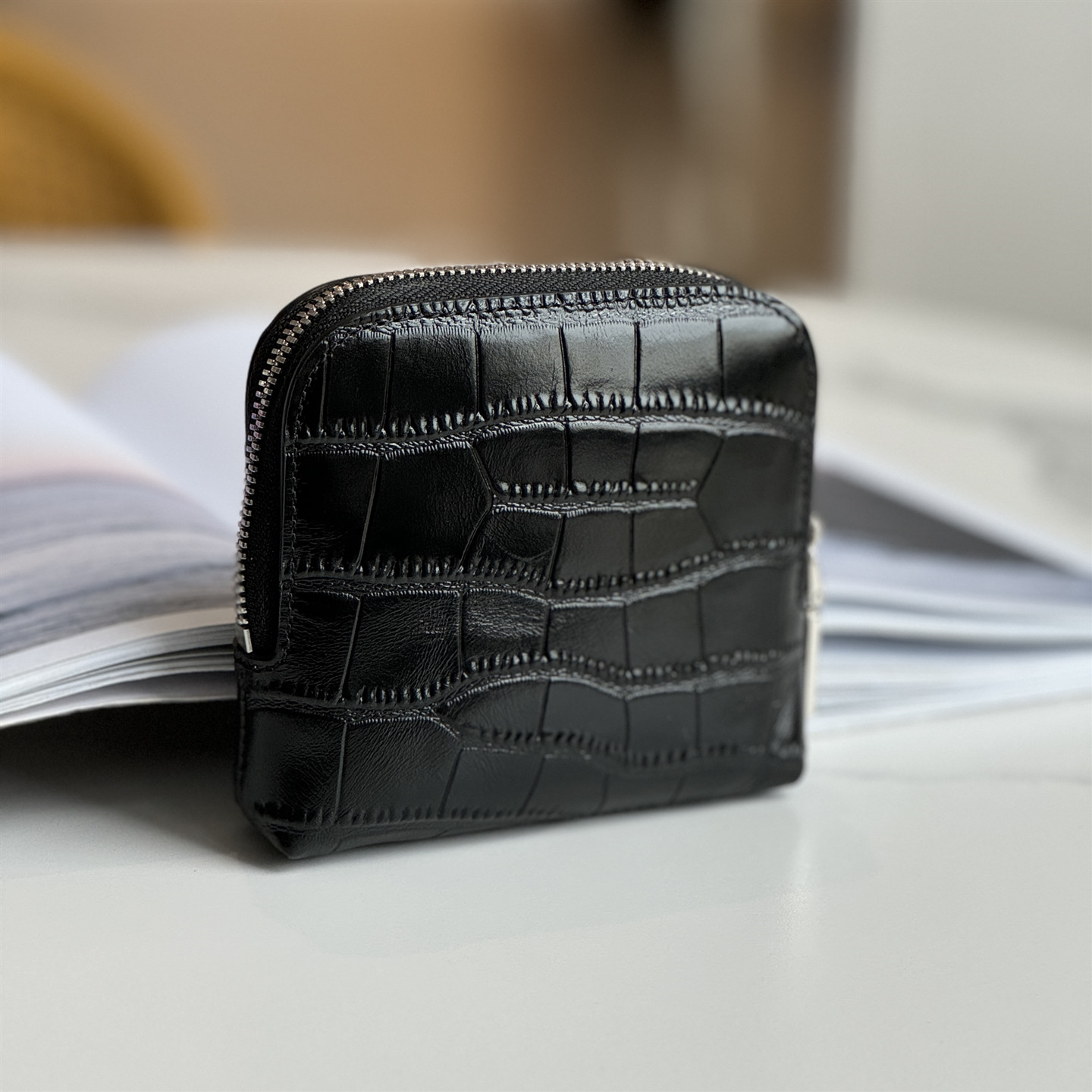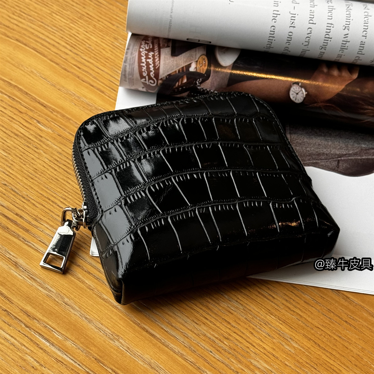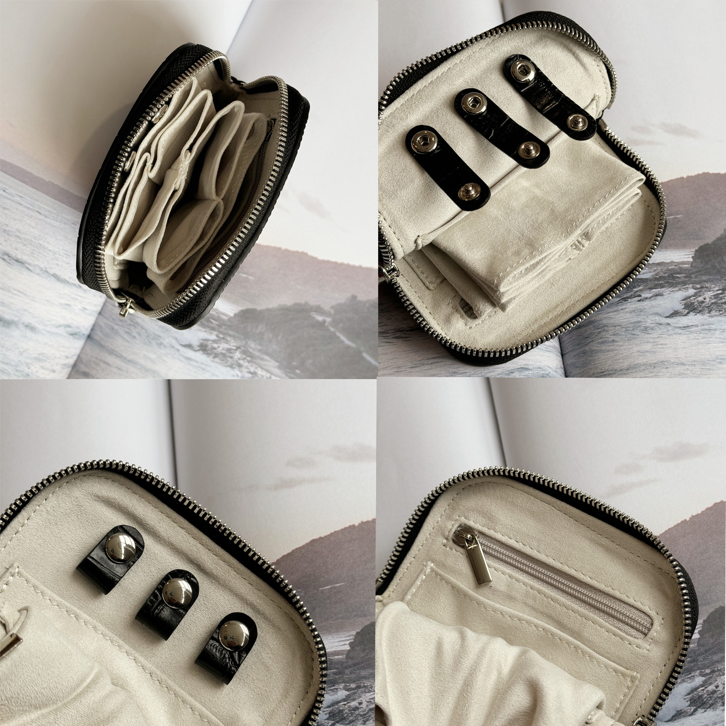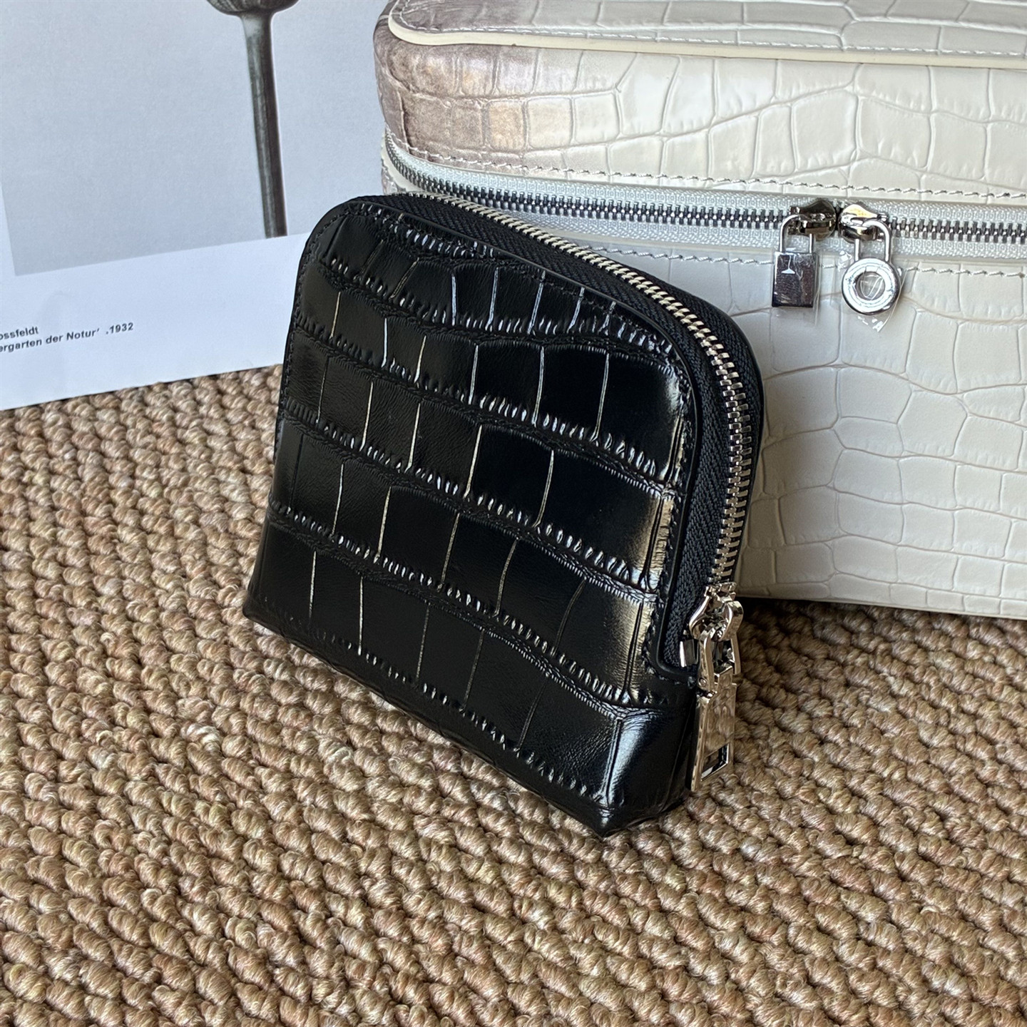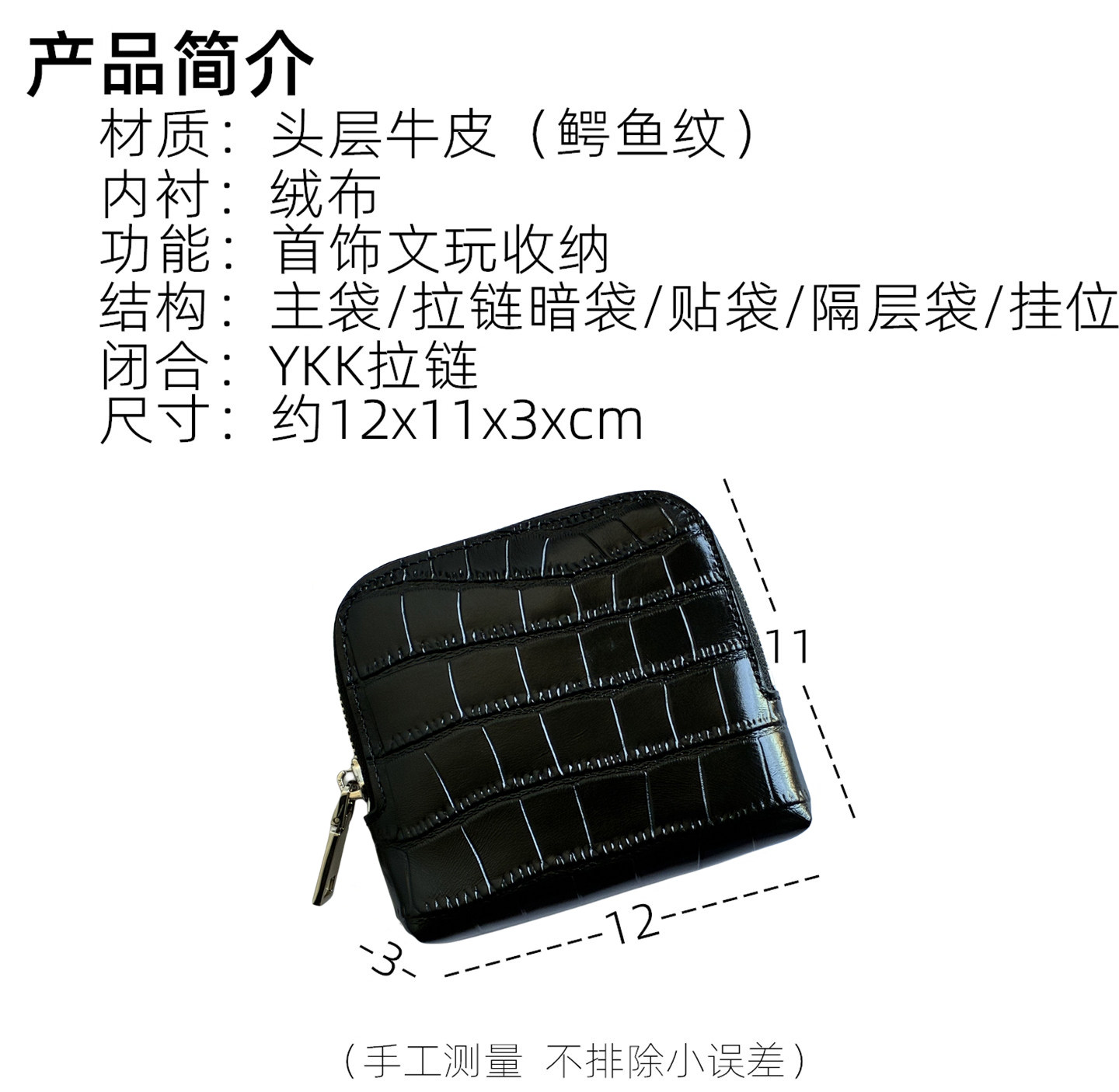 Genuine Leather Crocodile Pattern Jewelry Bag, First-Layer Cowhide Multifunctional Divided Jewelry Storage Bag, Portable Hand-Held Bag for Women