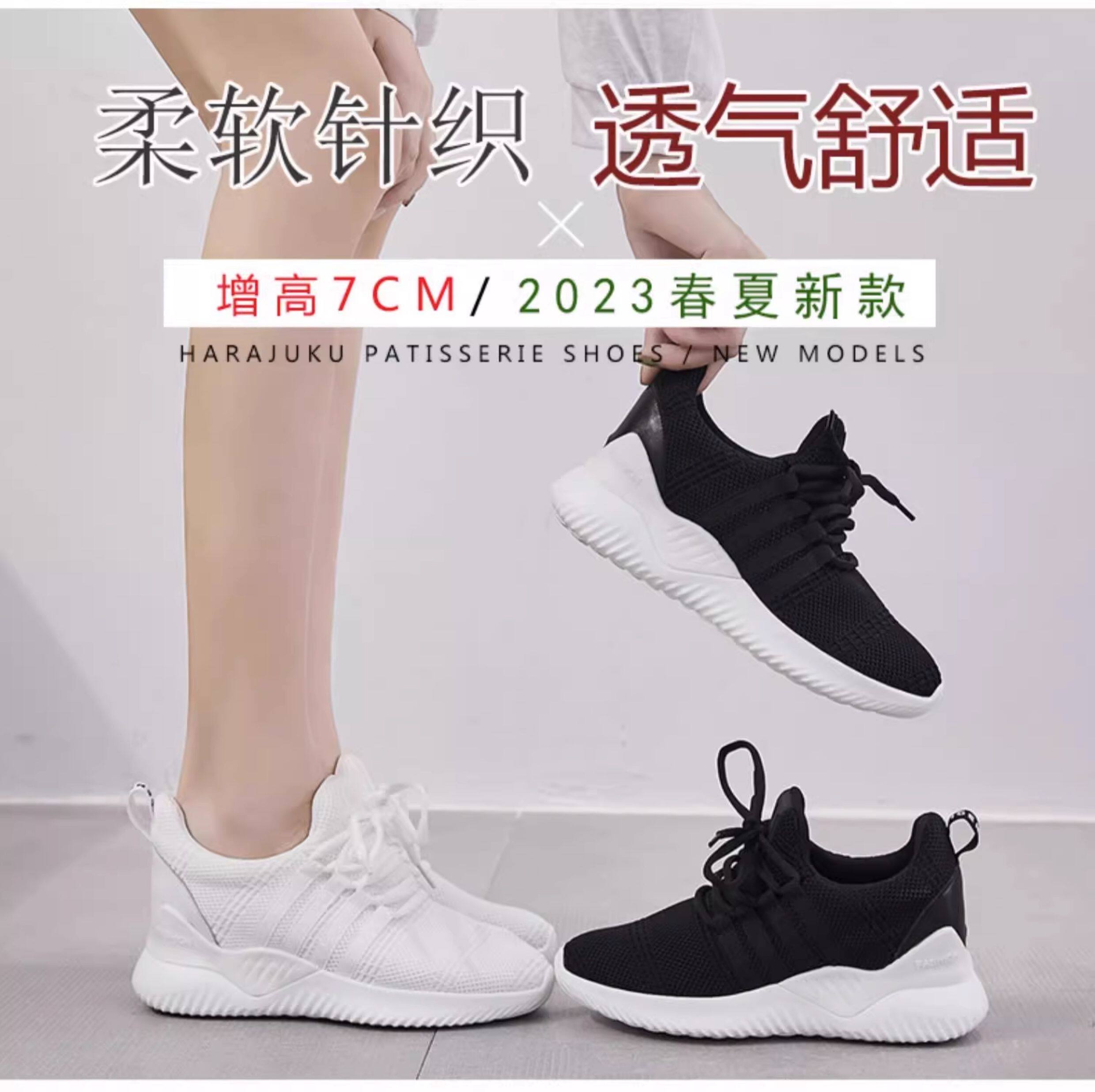Hong Kong Invisible Height-Increasing Women's Shoes, Sports and Leisure 2026 New Spring and Autumn White Shoes, Fly-Knit Breathable Soft-Soled Mesh Shoes