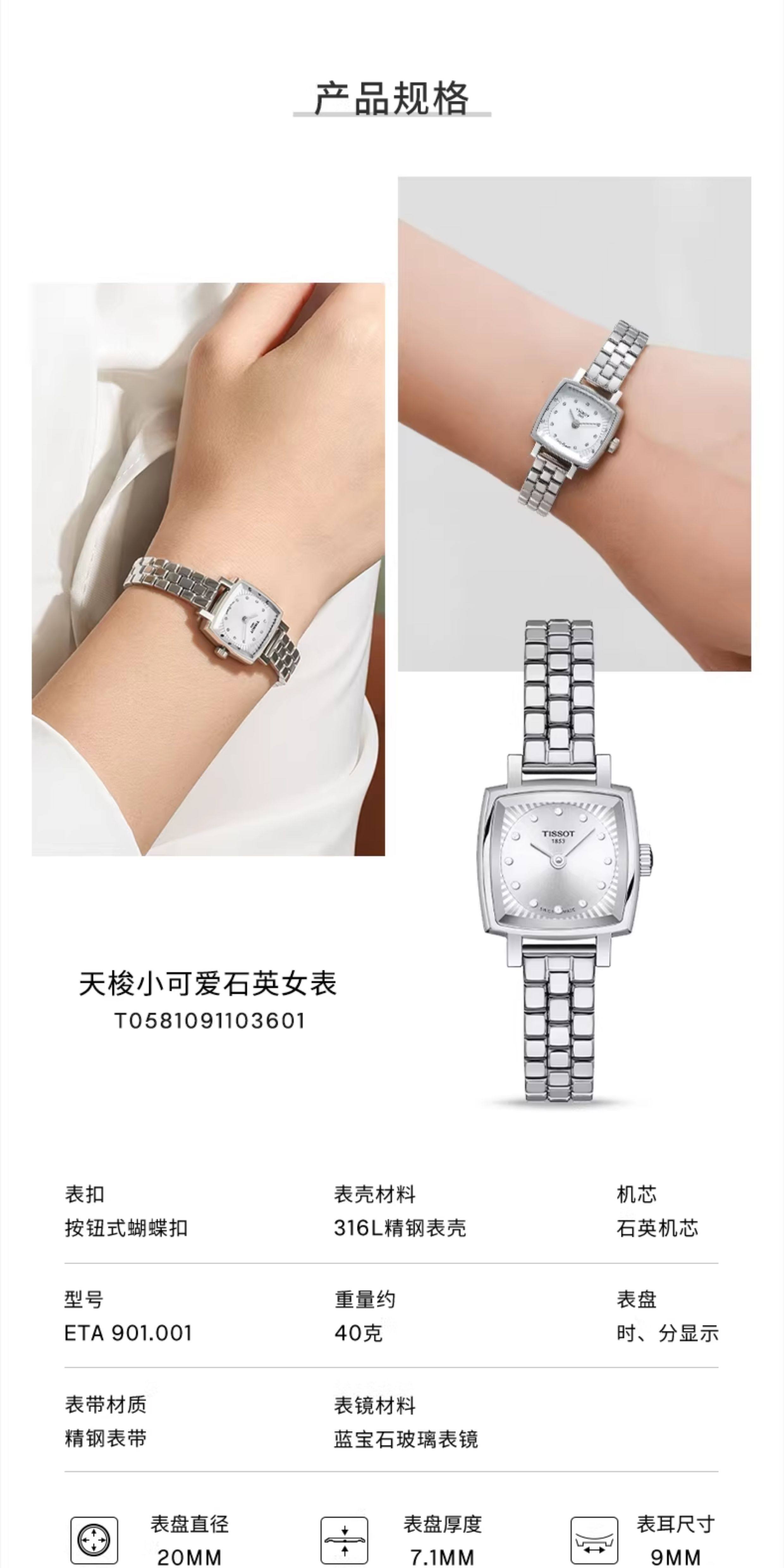 Tissot Official Diamond Time Markers Cute Quartz Small Square Watch for Women