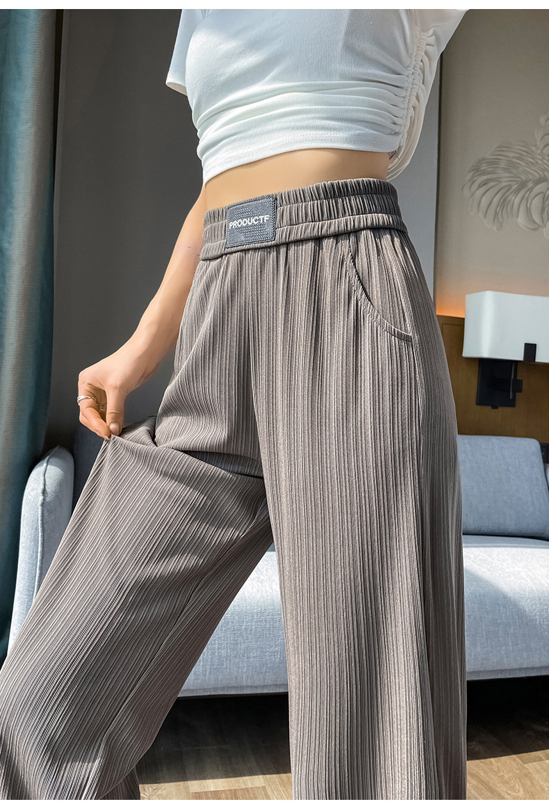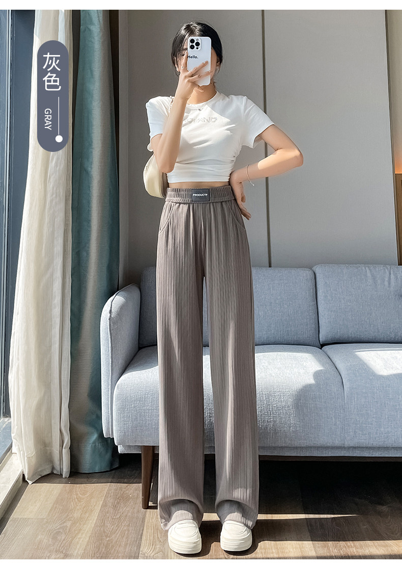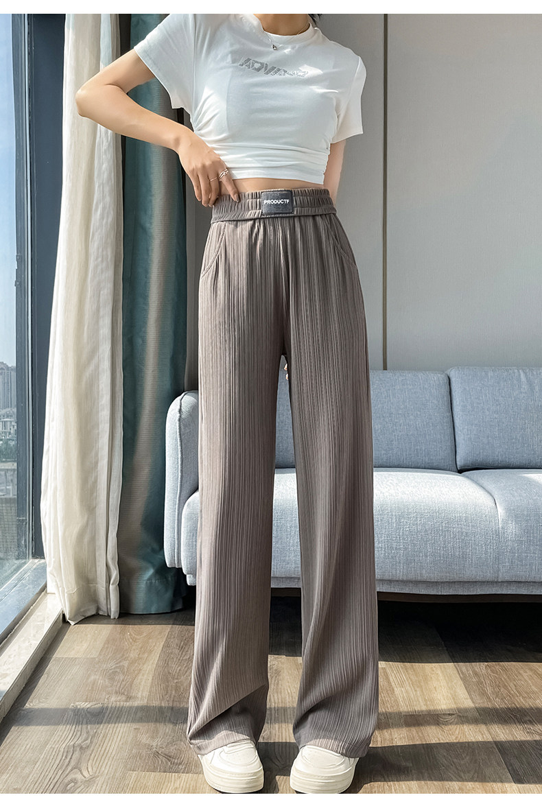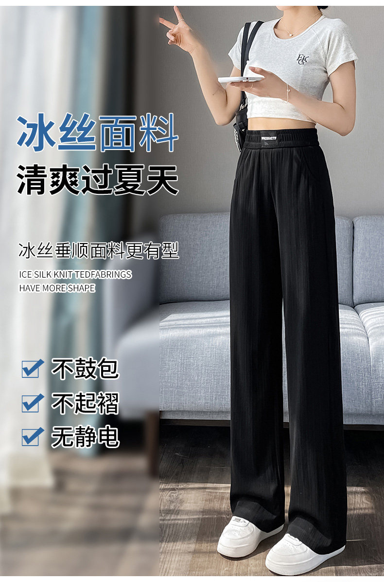 Ice Silk Wide-Leg Pants for Women, Summer Thin Style 2026 New Popular High-Waisted Drapey Women's Slim-Fit Casual Straight Pants