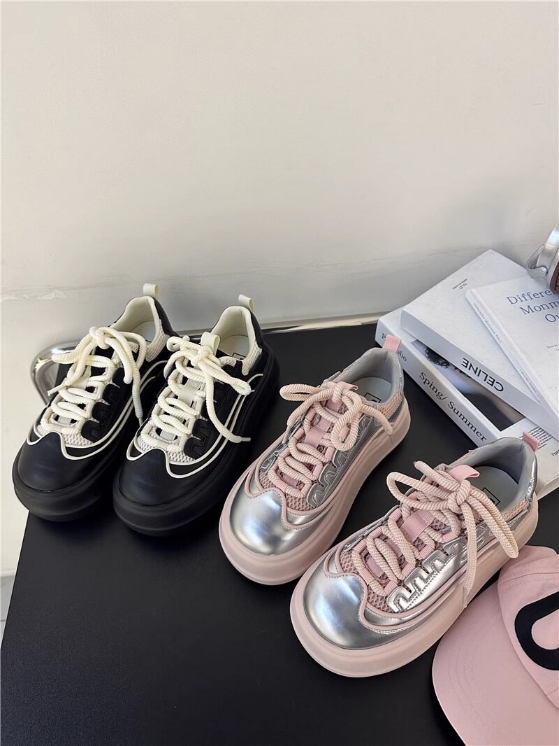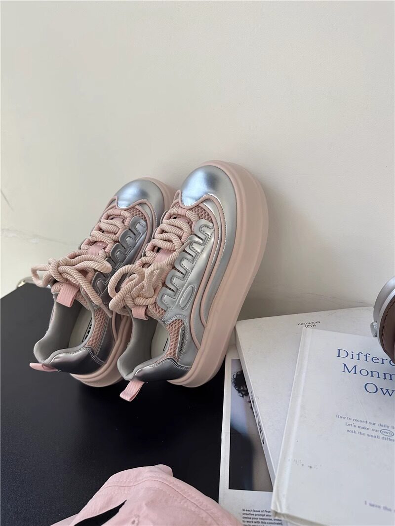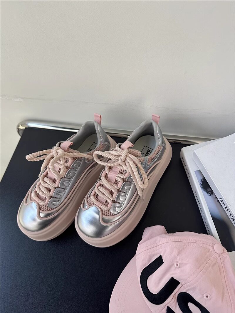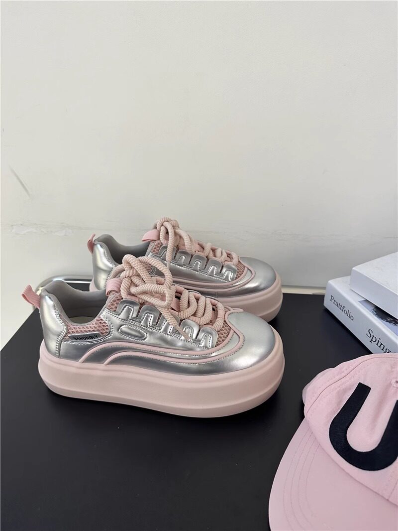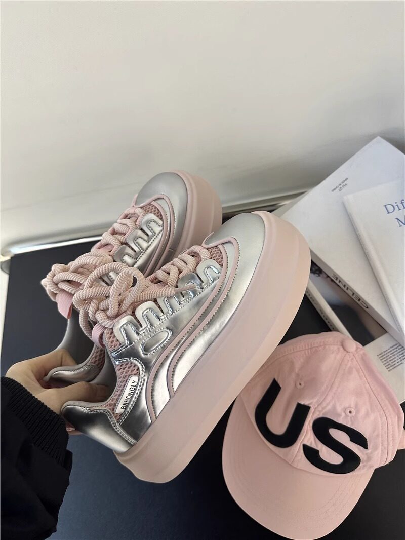 Hong Kong Pink Loafers for Women 2026 Early Spring New Thick-Soled Lightweight Height-Increasing Ugly-Cute Casual Sneakers Sports Shoes