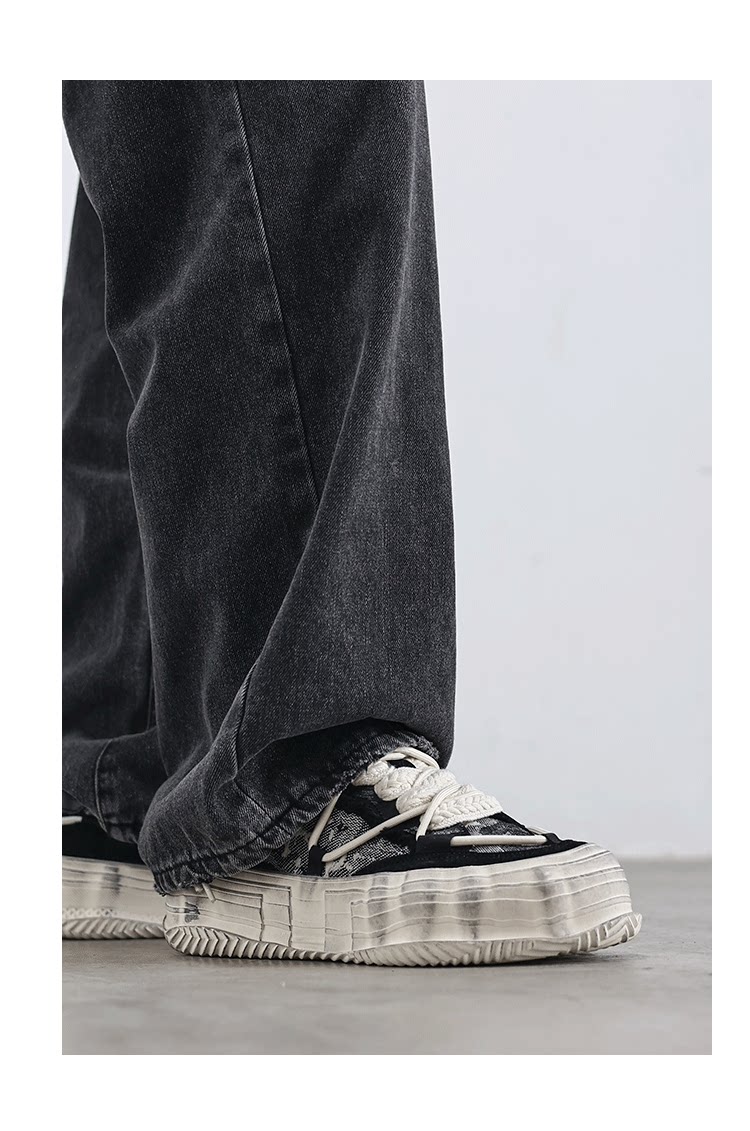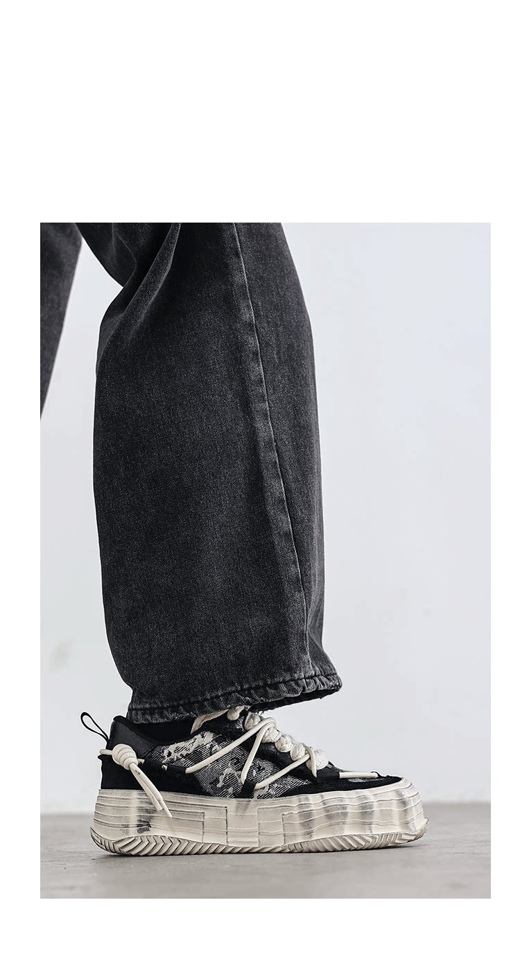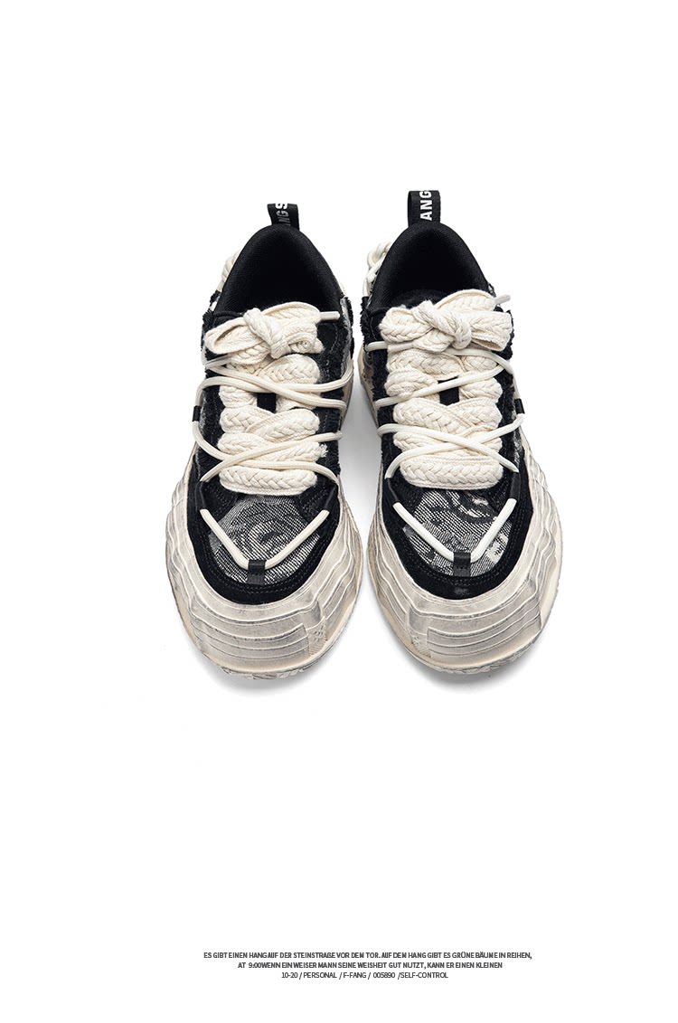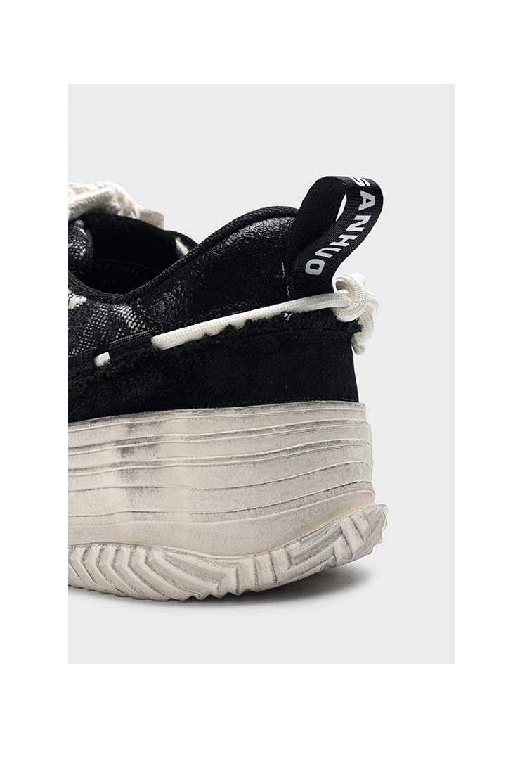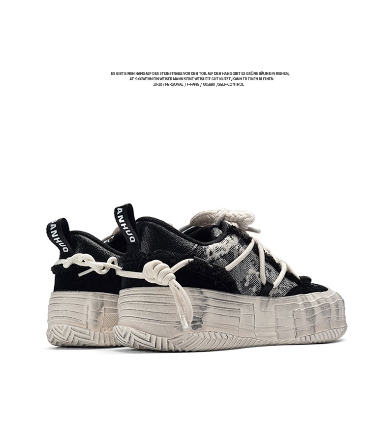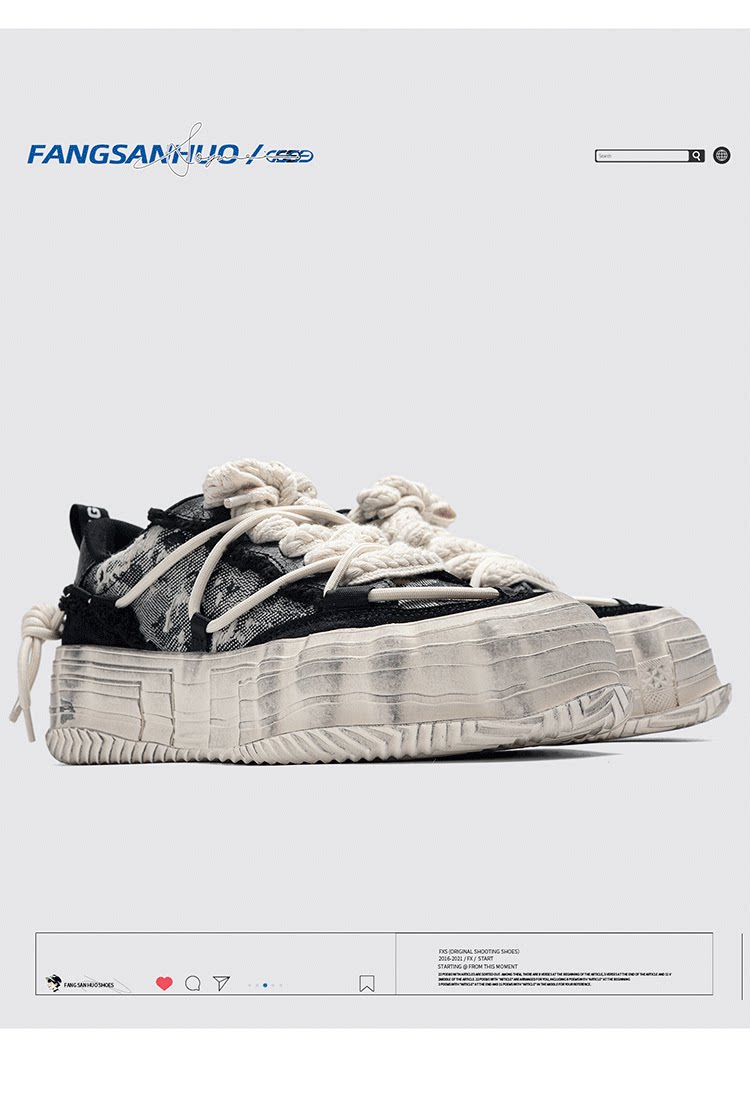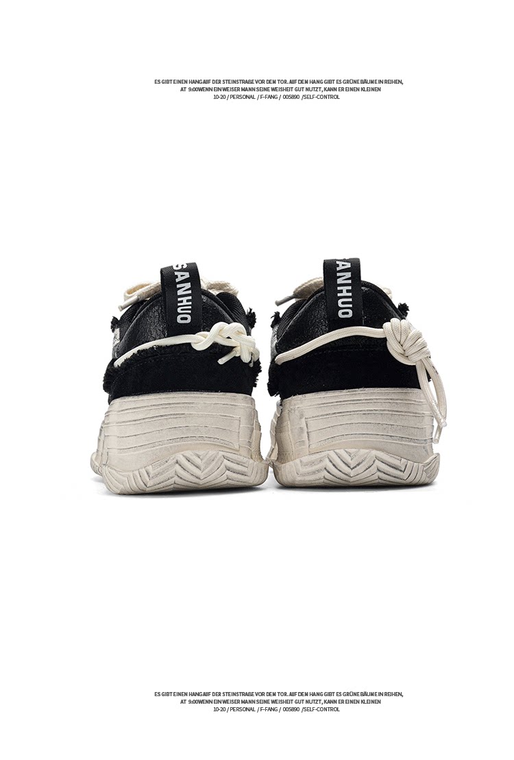 @Fang Sanhuo Black Shoes for Men, Niche Original Design, ins Retro Beggar Shoes, Couple Style, Thick-Soled Height-Increasing Dissolving Sneakers