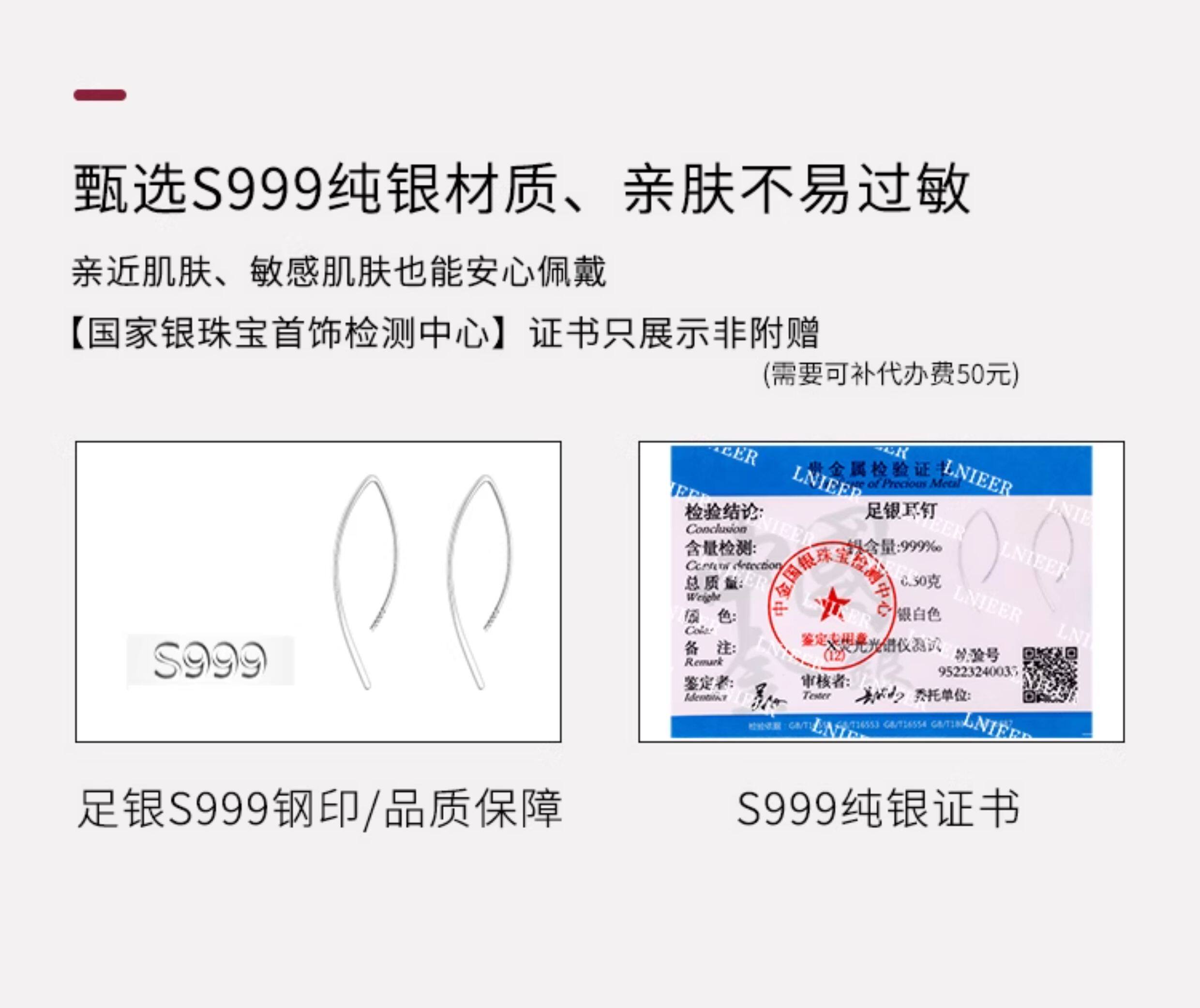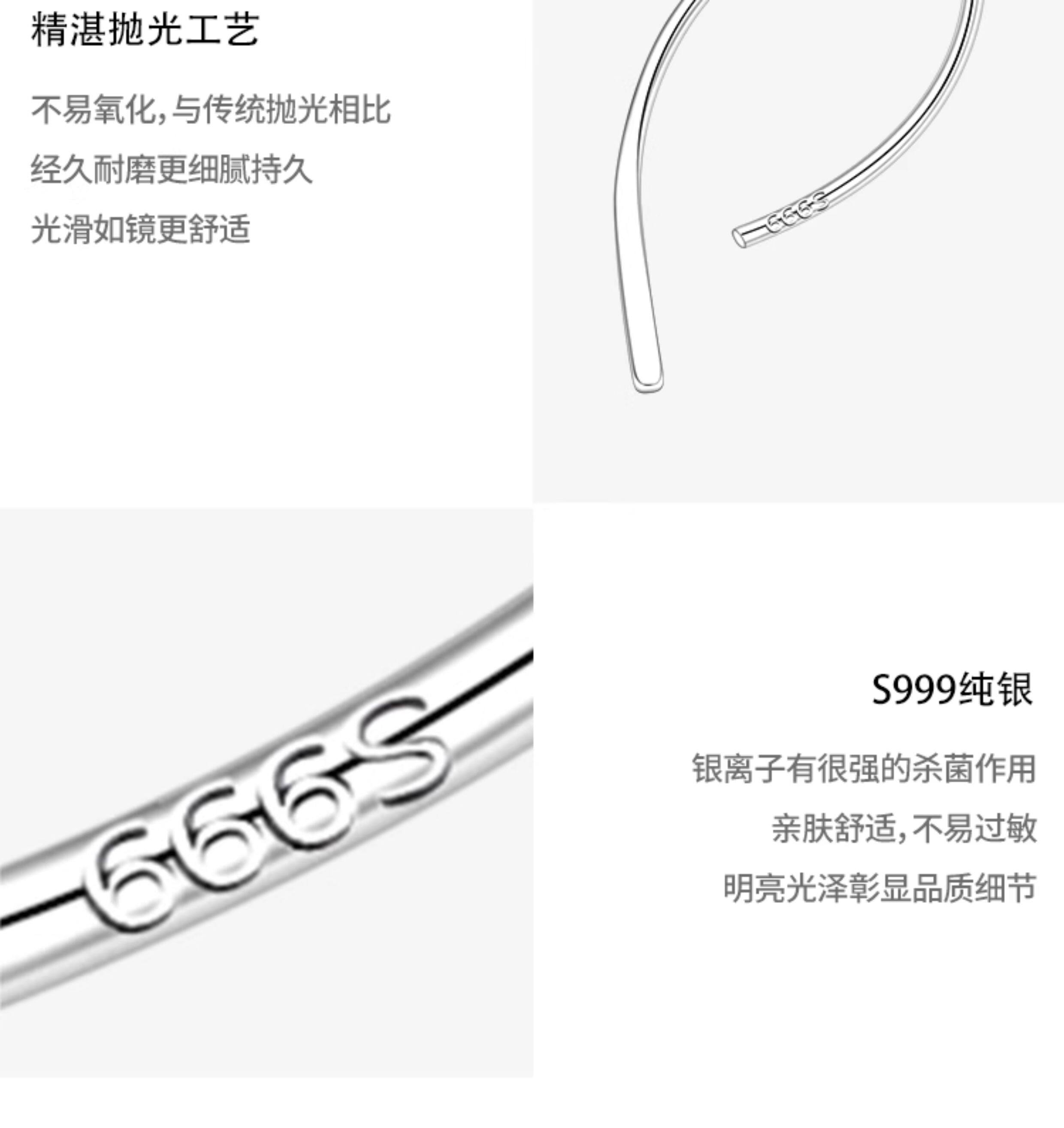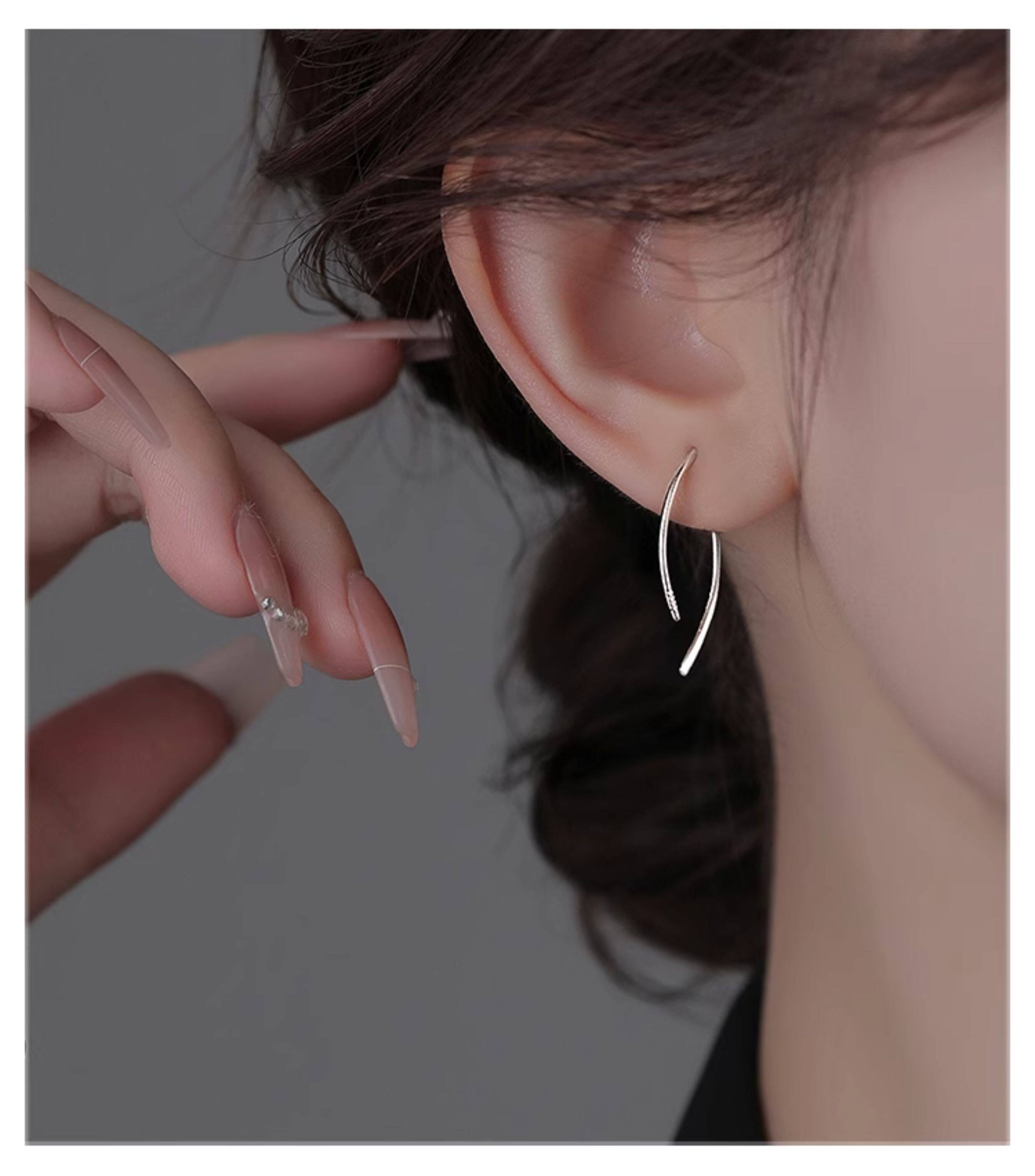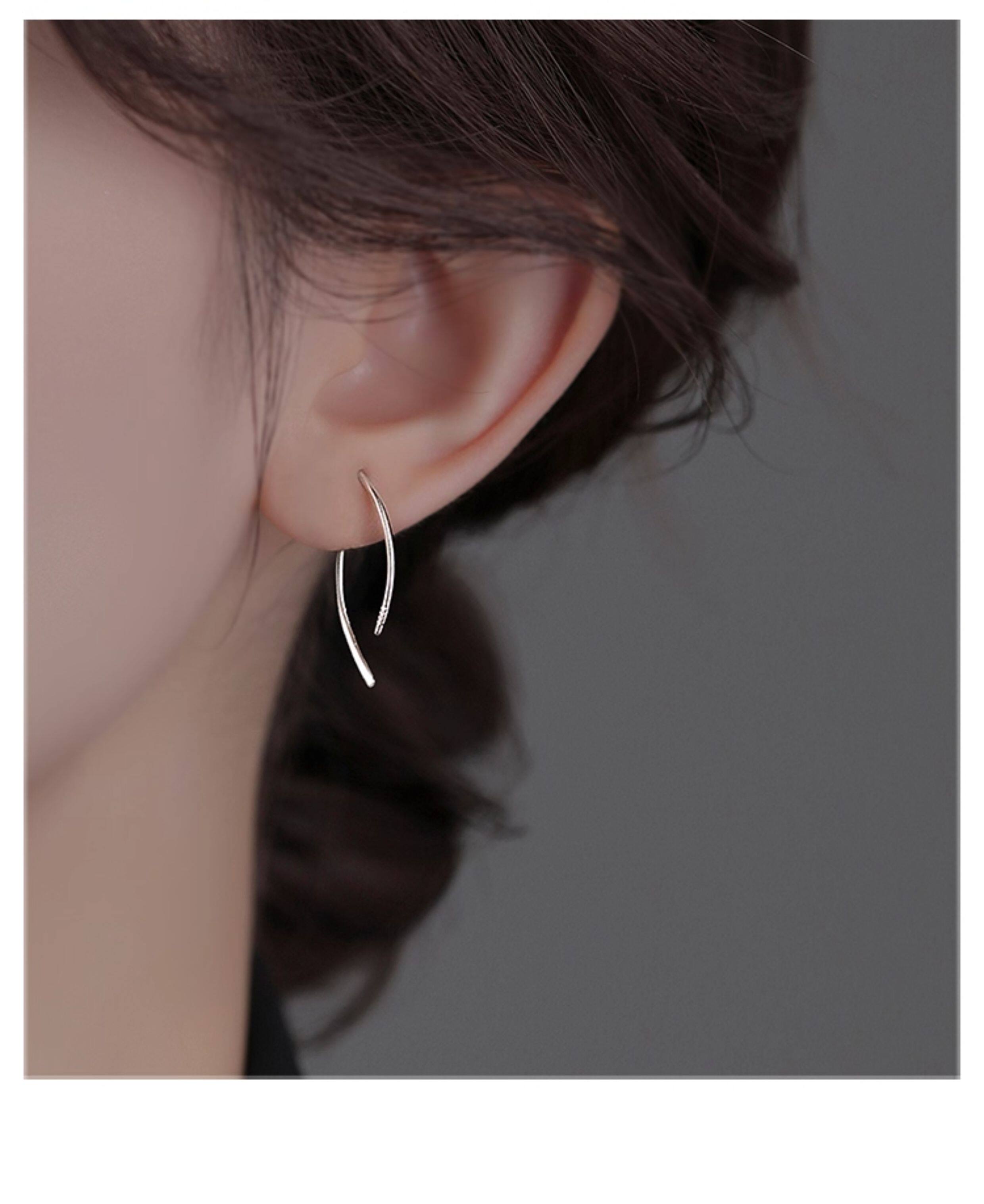999 Pure Silver Simple Line Earrings for Women, Niche Design, Versatile Ear Studs, Ear Hooks for Pierced Ears, 2026 New Style Earrings