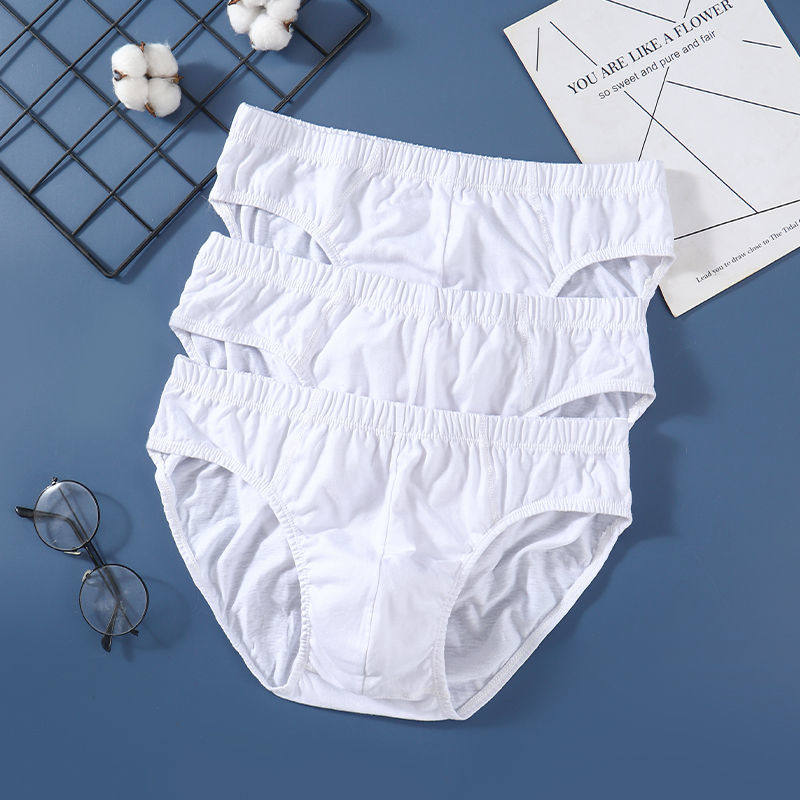 Men's White Cotton Underwear for Young and Middle-Aged Dads, Loose and Breathable, Plus Size Student Briefs