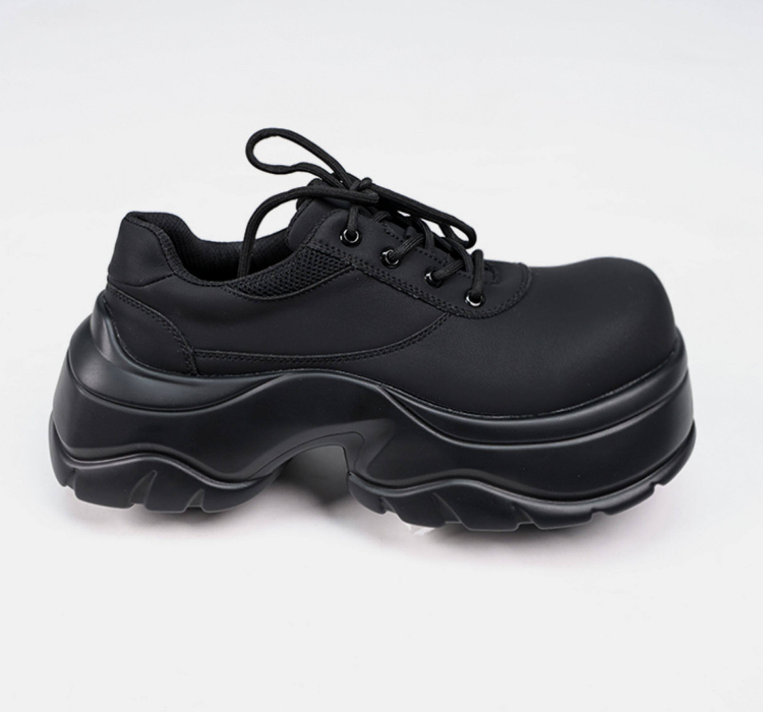 Cleanfit Thick-Soled Derby Shoes for Men and Women, Casual British Black Warrior Platform Dad Shoes, Matte Leather, Height Increase of 7cm
