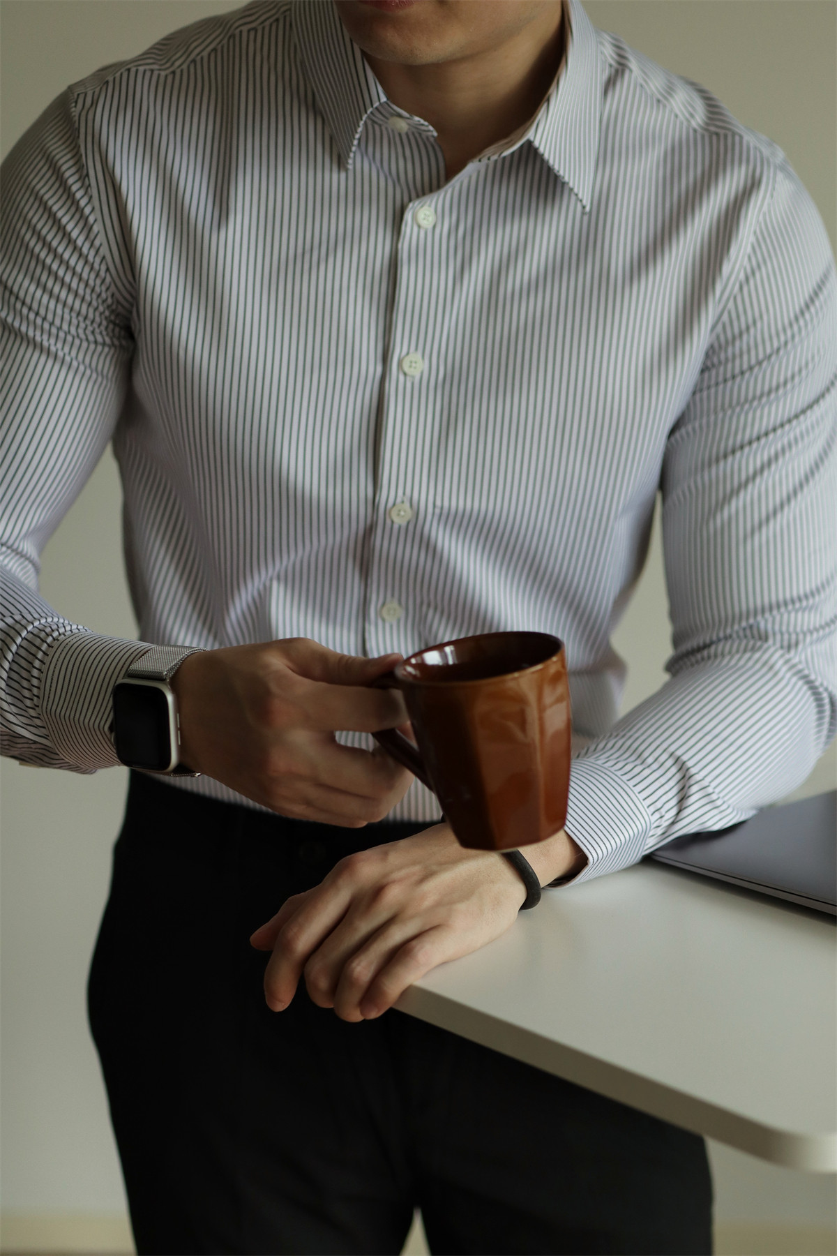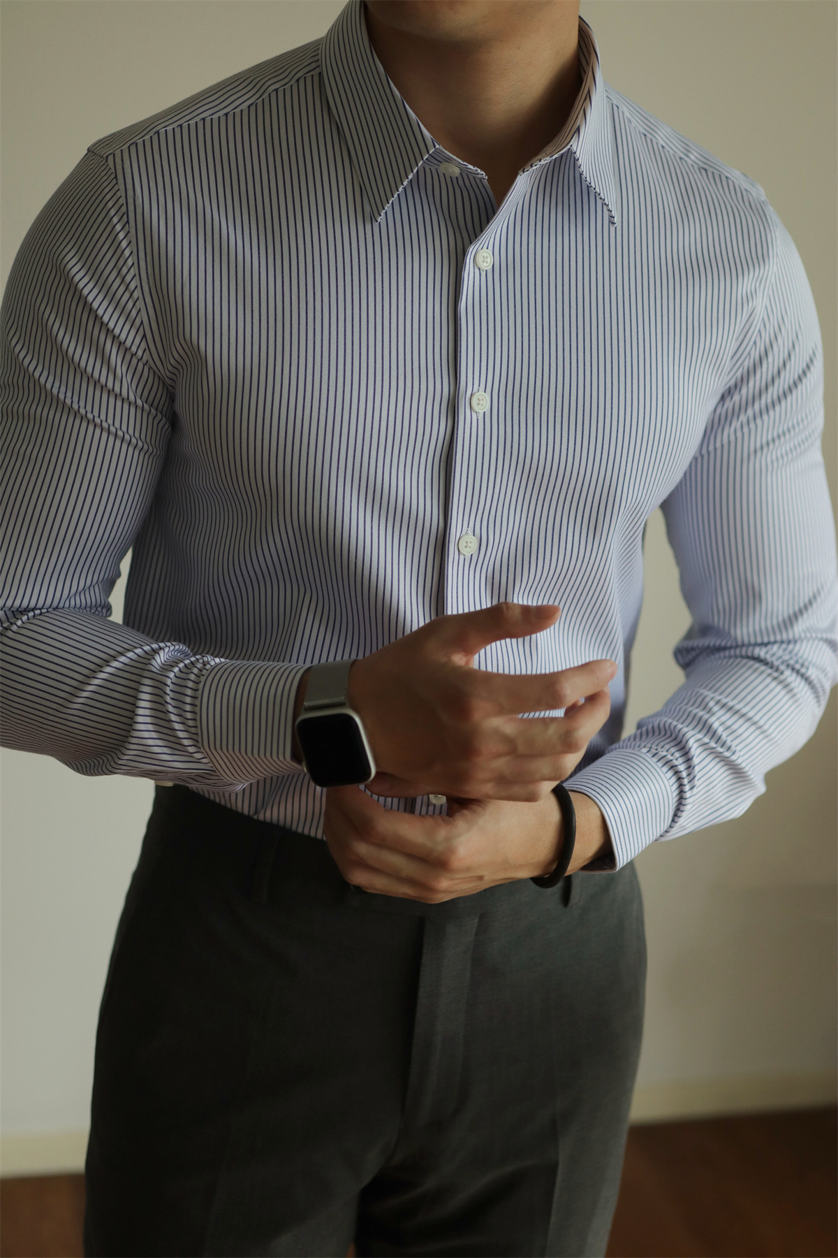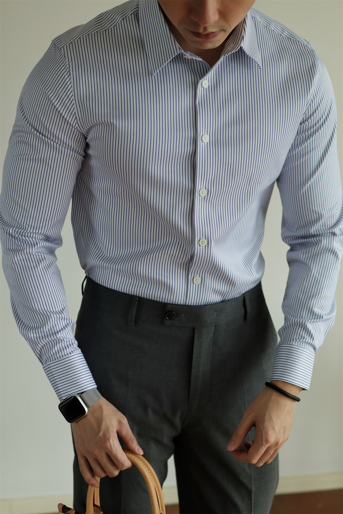 Yuxian【Delicate Tencel】Striped Anti-Wrinkle Long-Sleeve Shirt Casual Business Formal Wear Men's Slim Fit All-Season Style