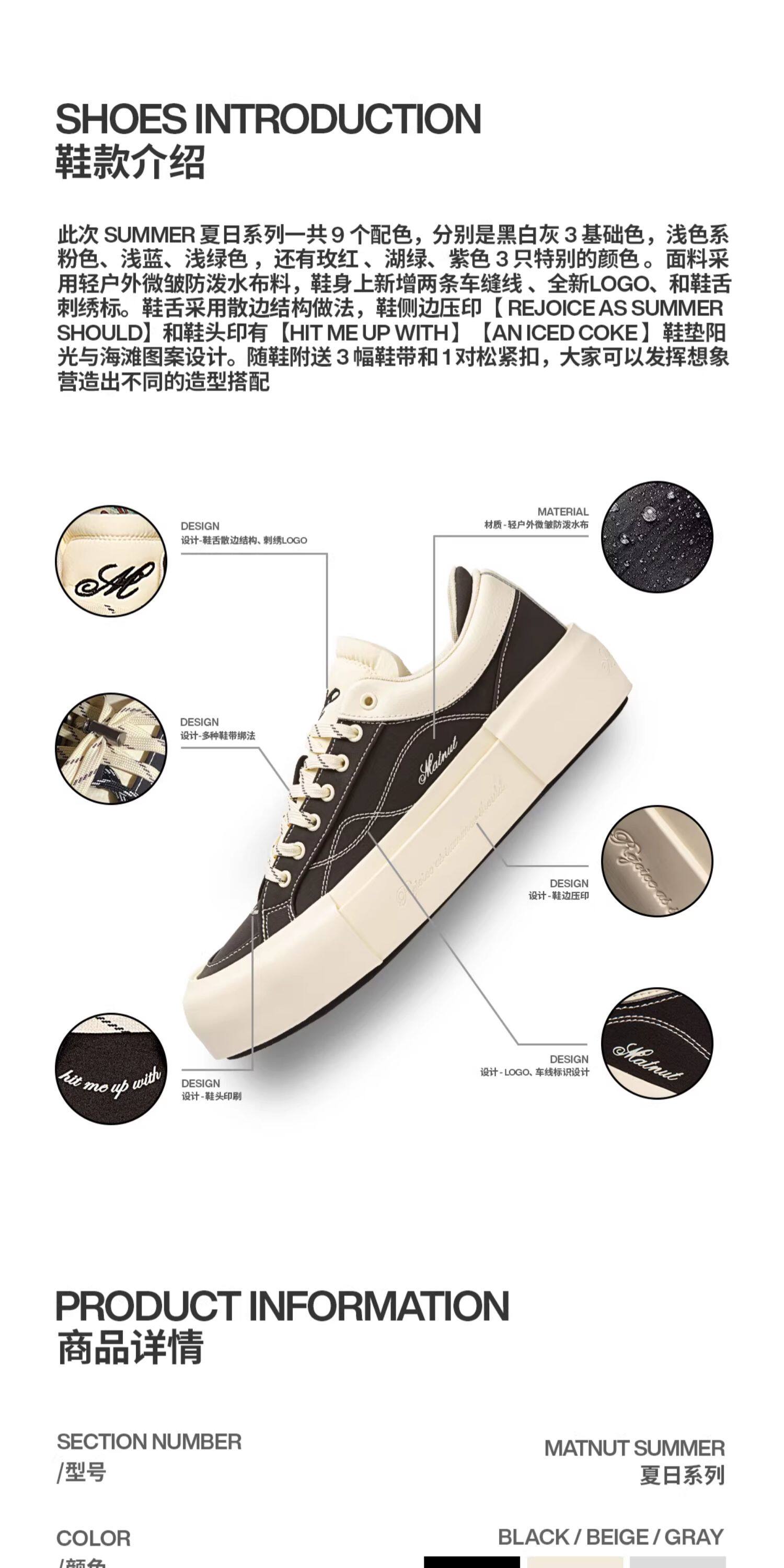 Matnut Type 2.0 Celebrity Style Black Off-White Gray Thick-Soled Height-Increasing Sneakers
