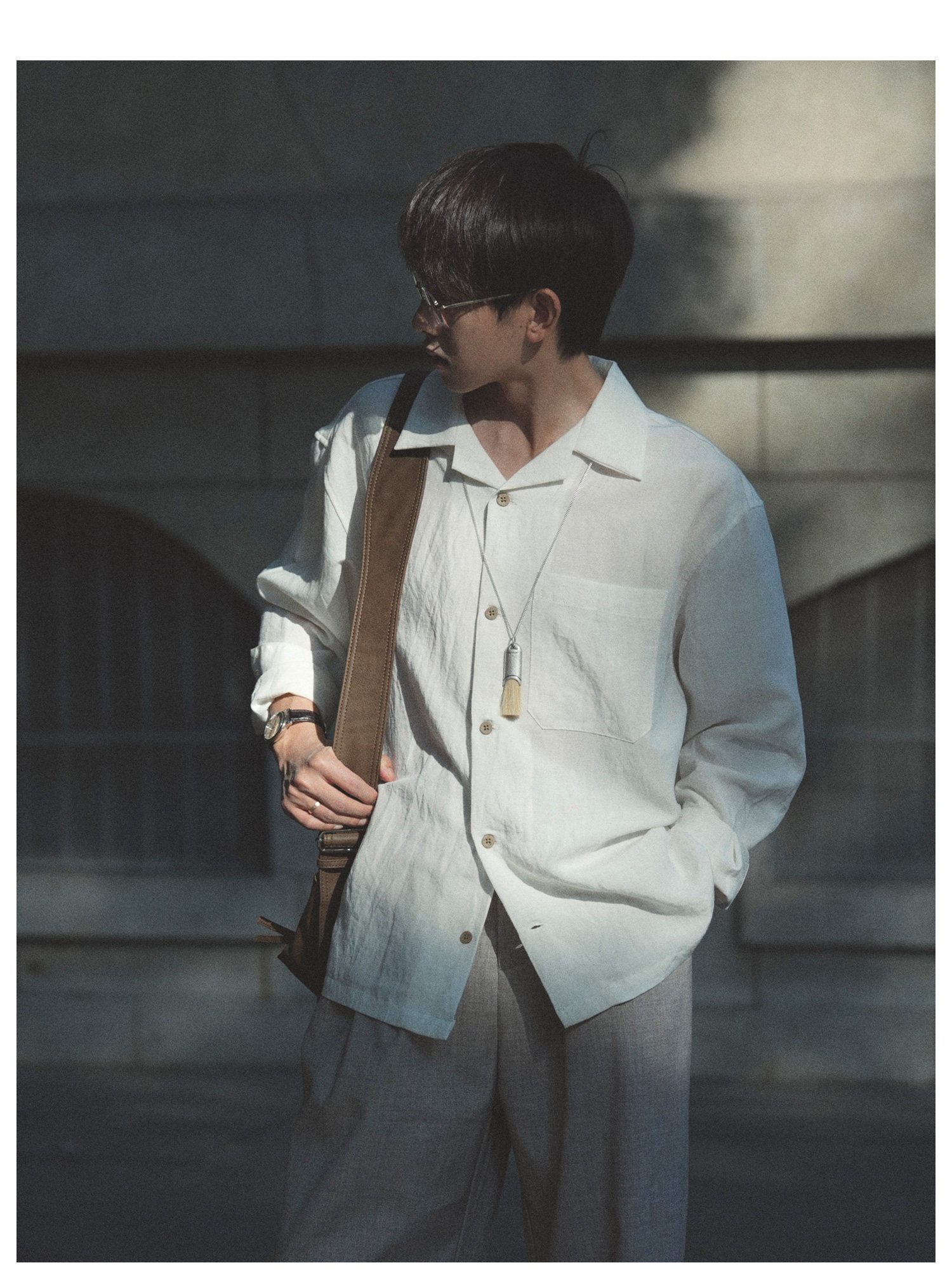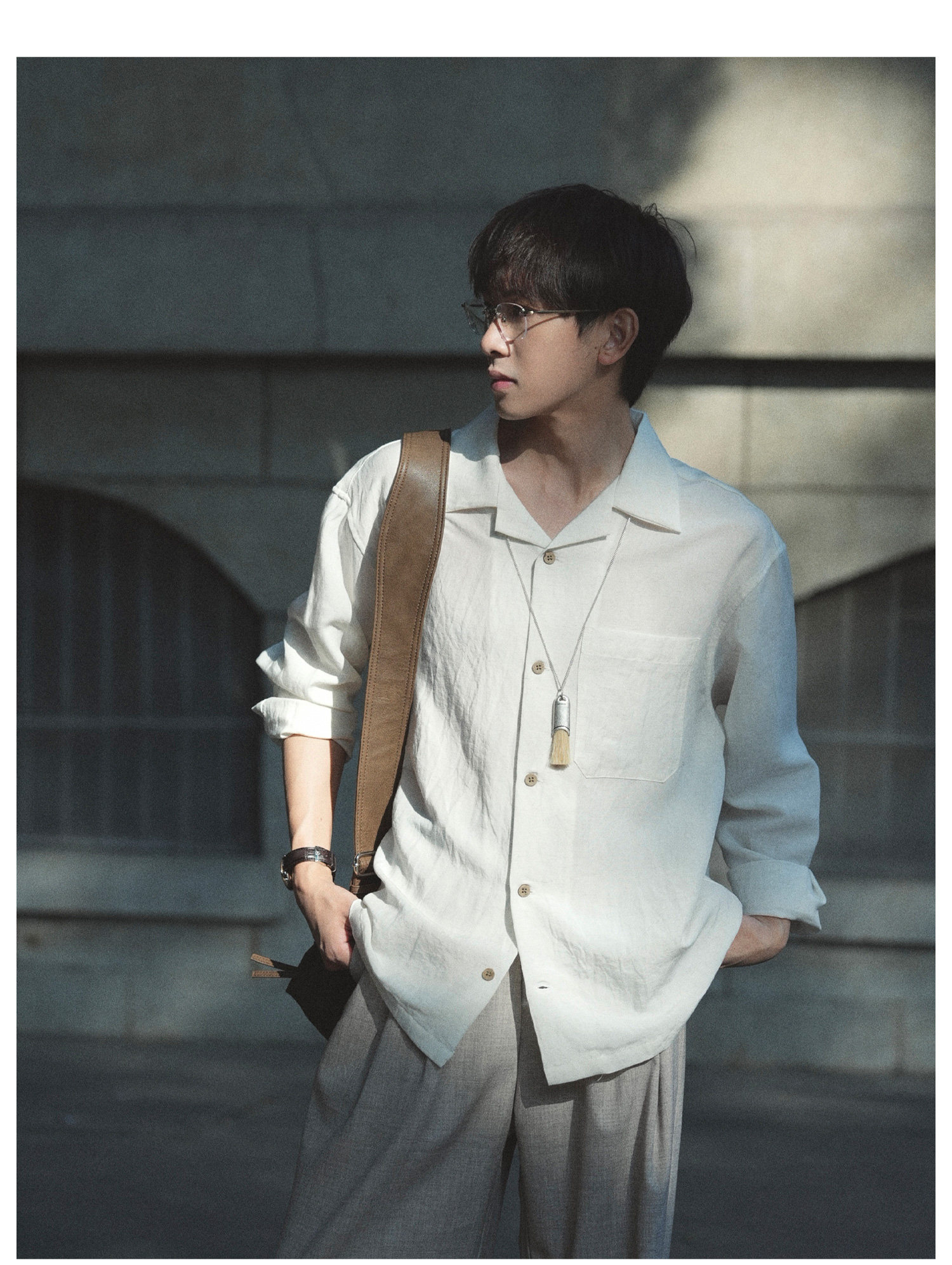 Eli【Australian White】Lyocell Linen Blend Old Money Style Cuban Collar Easy-Care Short-Sleeve Summer Relaxed Shirt